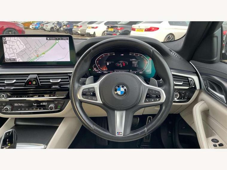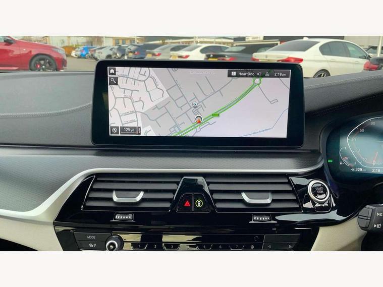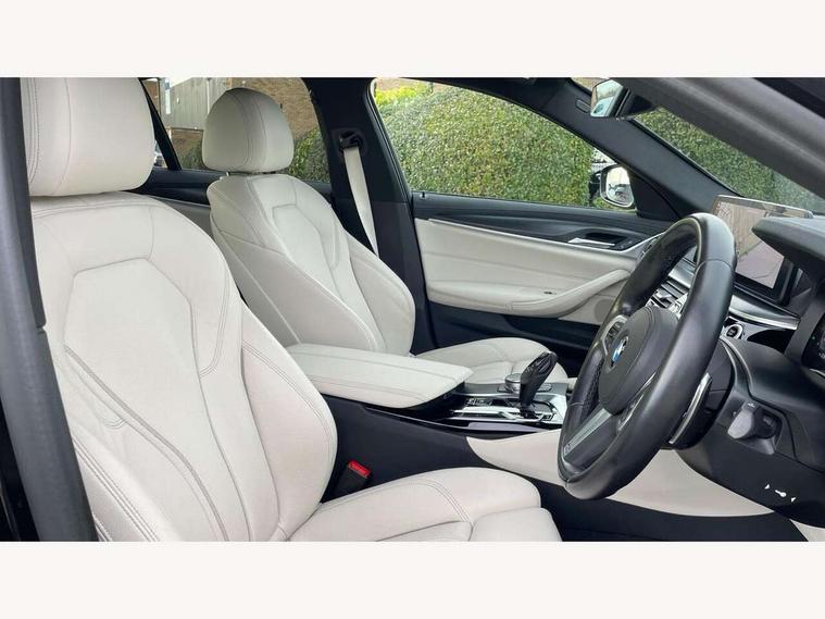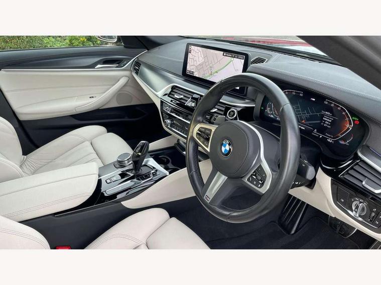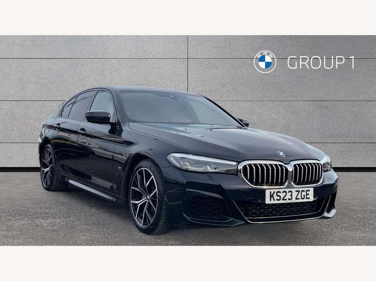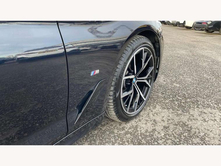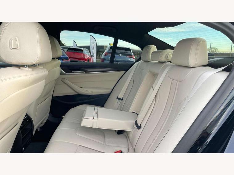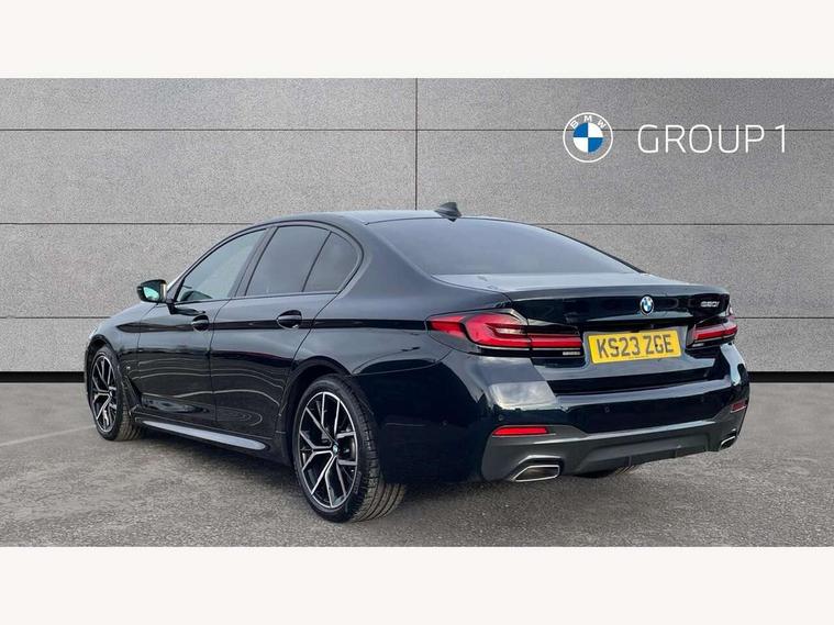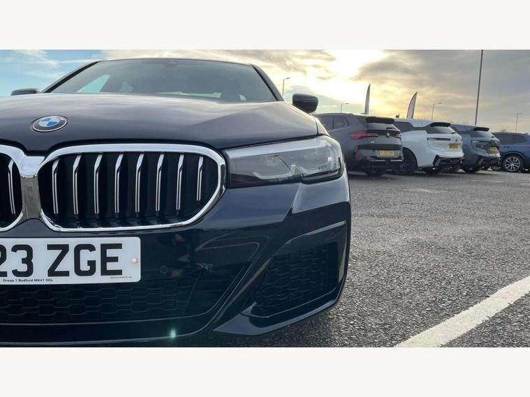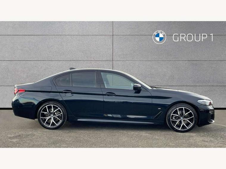 32GB hard disc drive (HDD) memory, Active Guard, Bluetooth connection, BMW ConnectedDrive online services, BMW Live Cockpit Professional sat nav system with 12.3" instrument display and high resolution control display, BMW Teleservices, Brake pad wear indicator, Cruise control with brake assist, Driving experience switch, eCall emergency call system, Electric Power Steering (EPS) with Servotronic, iDrive controller with shortcut buttons, Intelligent emergency call, Multifunctional instrument panel, Oil sensor for level and grade, On board computer inc. average speed, fuel consumption, liquid crystal Info display, journey computer, outside temperature display, personal profile, On-board diagnosis - OBD, Powered by Operating System 7.0, Service interval indicator, Speed limiting function, Stop/start button, 48V Mild hybrid technology, Drive performance control with ECO PRO comfort + sport mode, Engine cover with twin turbo designation, M sport suspension, Petrol Particulate Filter, Steptronic sport transmission with gearshift paddle switches on steering wheel, DAB Digital radio, Favourite buttons, Acoustic glazing, All round anti-corrosion system, Automatic windscreen wipers and automatic headlight, Automatically dimming rear view mirror, BMW Individual high gloss shadow line includes exterior mirror frame, window frame surround, B pillar finish, air breather in high gloss black, Body colour door handles, Body coloured bumpers, Door handle illumination, Dynamic brake lights with LED technology, Electric front and rear windows with fingertip open/close + anti-trap facility and comfort closing function, Electrically adjustable and heated exterior mirrors includes integrated direction indicators and automatic parking function, Folding exterior side mirror with auto- dimming, Follow me home headlight function, Heated windscreen washer jets, High gloss black active air stream kidney grille, LED daytime running lights, LED Headlights, LED third brake light, M designation on front side panels, left and right in chrome, M Sport exterior styling, Preparation for high beam assistant, Rear boot, Rear side wing doors, Trapezoidal visible exhaust tailpipes, 12V power socket in front and rear, 3 seat bench in 2nd row, Armrest - front and rear integrated door trim, centre console includes storage compartment, rear centre includes 2 cupholders, Child seat ISOFIX attachment with rear outer seats includes top tether, Cup holders (2 front and 2 rear), Front and rear footwell lights, Front reading lights, Height and length adjustable steering column and activation via lateral lever on the steering column, Lockable glove compartment with light, M door sill finishers, M specific pedals, M specific velour floor mats, Multifunction controls for leather steering wheel, Rear headrests, Single front passenger seat, Three spoke sport M leather steering wheel, Ambient lighting pack - 5 Series, Connected package professional - 5 Series, M Aerodynamic pack - 5 Series, Airbags - driver/front passenger, rear and side, first and second row seats head airbags, front passenger seat airbag deactivation, Anti-lock braking system (ABS), Automatic Stability Control (ASC), Brake assist function, Brake energy regeneration, Cornering brake control (CBC), Crash sensor activating central locking release, hazard warning lights, fuel cut off and interior lighting, Deformation zones - front and rear with door reinforcements and bumpers up to 2.5 mph, DSC - Dynamic Stability Control, Dynamic brake control, Dynamic Traction Control - DTC, Electromechanical parking brake with automatic drive away release and auto hold function, Electronic brake force distribution, Engine drag torque control, Front and rear brake discs with interior ventilation, Front head restraints with anti-whiplash, Hill start assist, Mechanical child proof lock on rear doors, Passive protection for pedestrians, Rear door child safety locks, Side impact protection, Three point seat belts for all four seats, Two tone horn, Tyre pressure indicator, Warning triangle and first aid kit, Alarm system (Thatcham 1) with remote control and electronic engine immobiliser, Locking wheel bolts,
