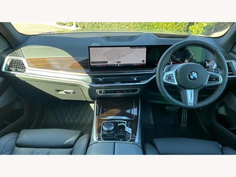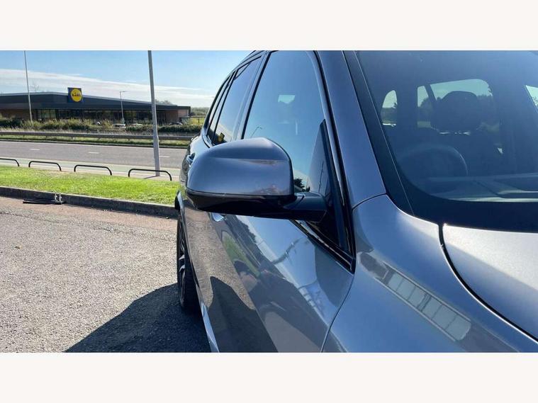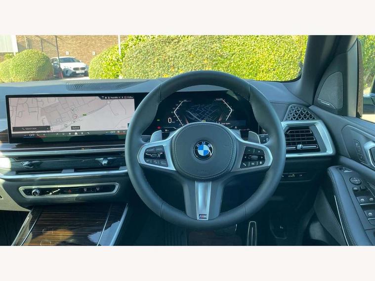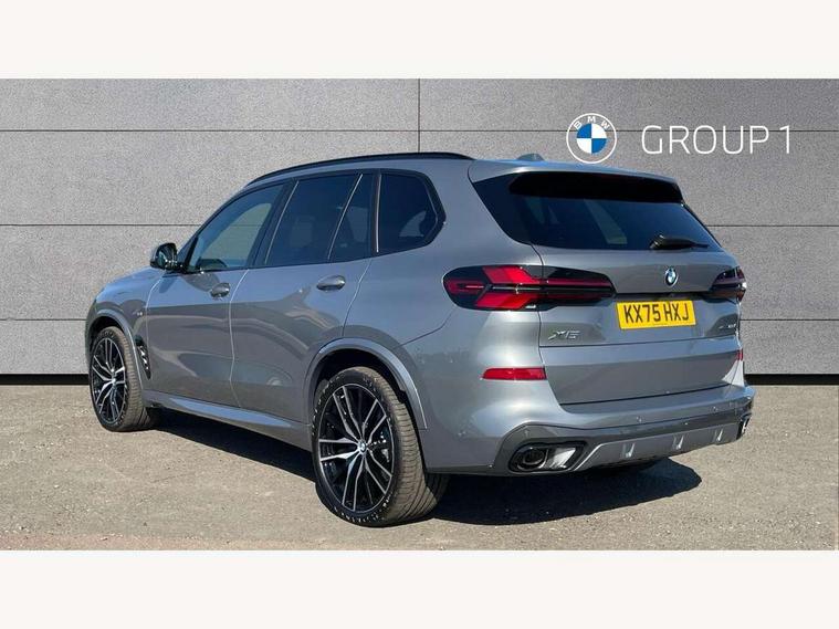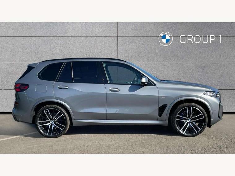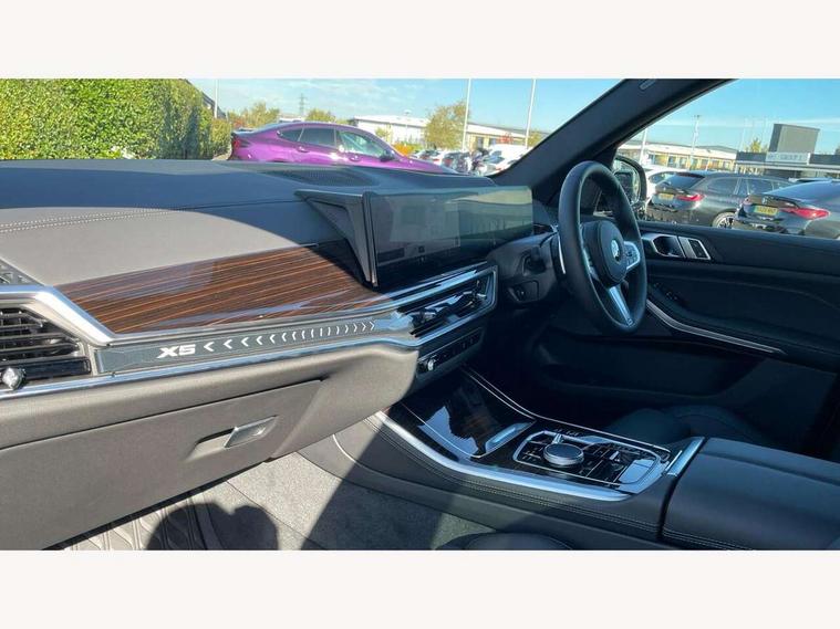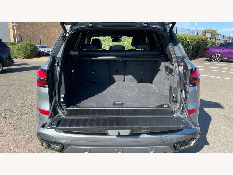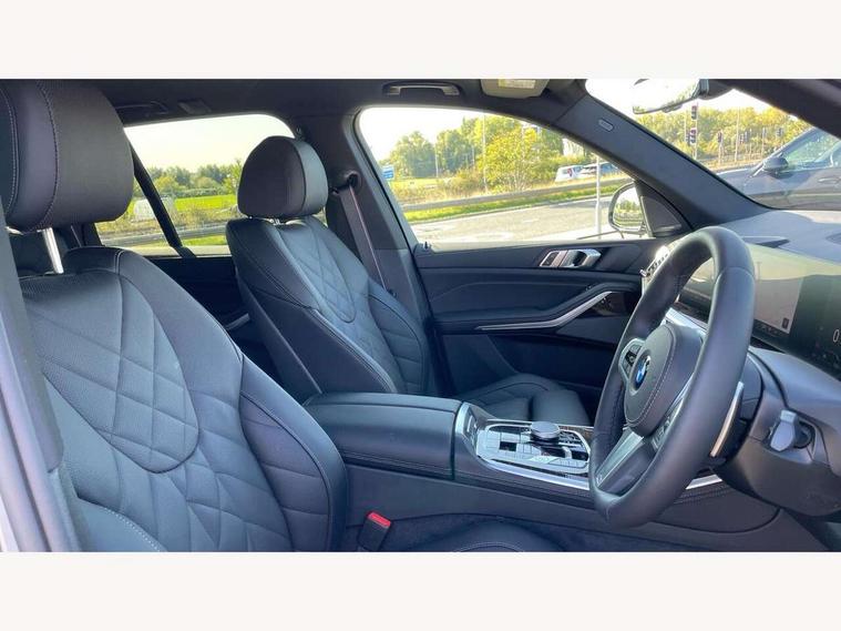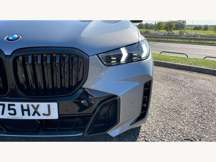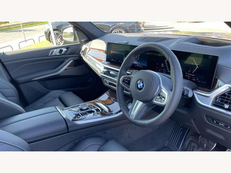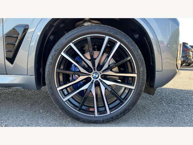 Attentiveness assist, Automatic tailgate operation, BMW ConnectedDrive online services, BMW live cockpit + with curved 12.3 instrument cluster/14.9 central display, nav/Tuner with diversity reception, RDS/4GLTE/remote software upgrade, BMW Recovery system, BMW Teleservices, Condition based service, Cruise control with brake assist, eCall emergency call system, Enhanced bluetooth with wireless charging, Integrated owner's handbook, PAS, Speed limiter, Wi-Fi hotspot, Drive performance control with ECO PRO comfort + sport mode, Eight speed steptronic sport automatic transmission and gearshift paddles on the steering wheel, Adaptive LED Headlights, Front and rear electric windows, High beam assistant, High gloss black shadow line roof rails, LED daytime running lights, Rain sensor, Rear side wing doors, Third brake light in rear spoiler, Variable intermittent rear wash/wipe, 12V - Power sockets with 2x centre console and 1x luggage compartment, 3 seat bench in 2nd row, Entry sills illuminated BMW inscription front and rear, Foldable rear centre armrest with 2 cupholders and storage compartment, Front and rear side armrest integrated into door trim, Grab handles in 1st and 2nd row of seats with Integrated in headliner, at rear with coat hooks, plastic, Headrests for all seats, Luggage compartment separating net, Lumbar support with height and depth adjustment in backrest, Single front passenger seat, Sunvisors with illuminated vanity mirrors and ticket pocket, Three spoke sport M leather steering wheel, Velour floormats, Ambient light interior pack - X5, Driving assistant pack with radar based driver assistance system - X5, Expanded exterior mirror pack - X5/X5 M, M aerodynamics pack - X5, Parking assistant pack - X5, 3 rear seatbelts, Active protection, Airbags - driver/front passenger, rear and side, first and second row seats head airbags, front passenger seat airbag deactivation + knee airbag, Anti-lock braking system (ABS), Automatic Stability Control (ASC), Brake energy regeneration, Cornering brake control (CBC), Crash sensor activating central locking release, hazard warning lights, fuel cut off, interior lighting + activation of safety battery terminal clamp, DSC - Dynamic Stability Control, Dynamic Traction Control - DTC, Electromechanical parking brake with automatic drive away release and auto hold function, Electronic brake force distribution, Hill start assistant, M Sport blue painted brake calipers with 'M' designation, Mechanical child proof lock on rear doors, Tyre pressure monitoring system, Tyre pressure sensors, Ventilated front and rear disc brakes, Warning triangle and first aid kit, Alarm system, Closing system with central locking, Comfort access system, Locking wheel bolts,