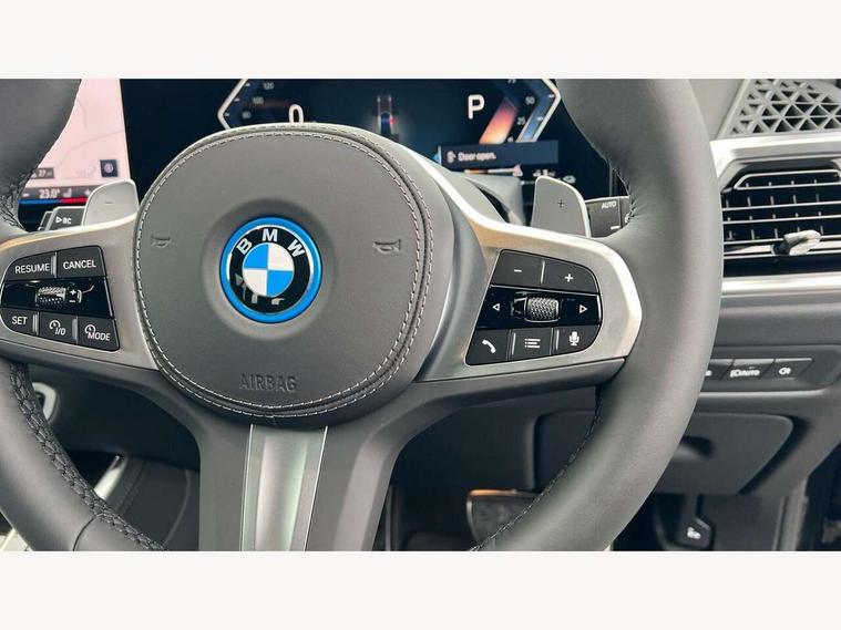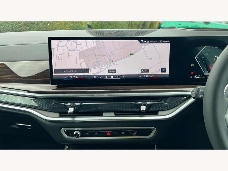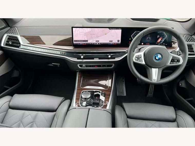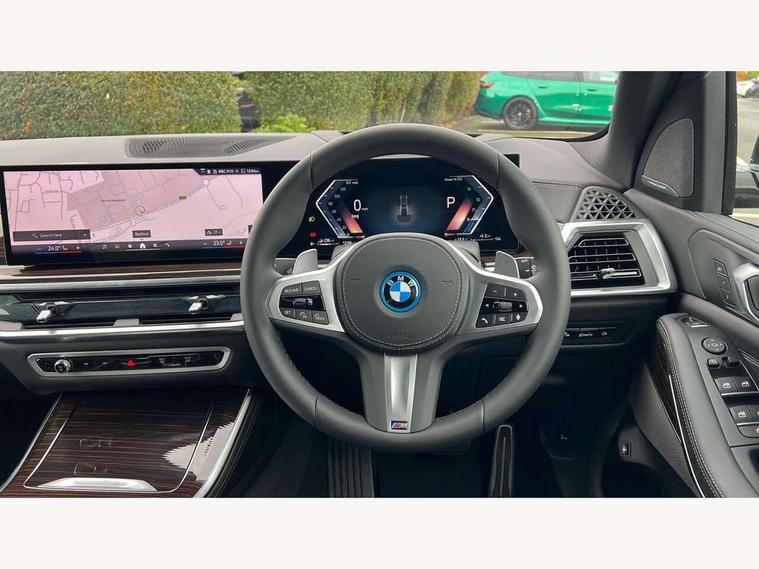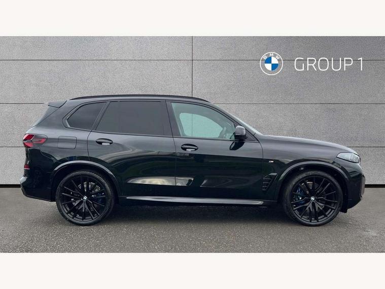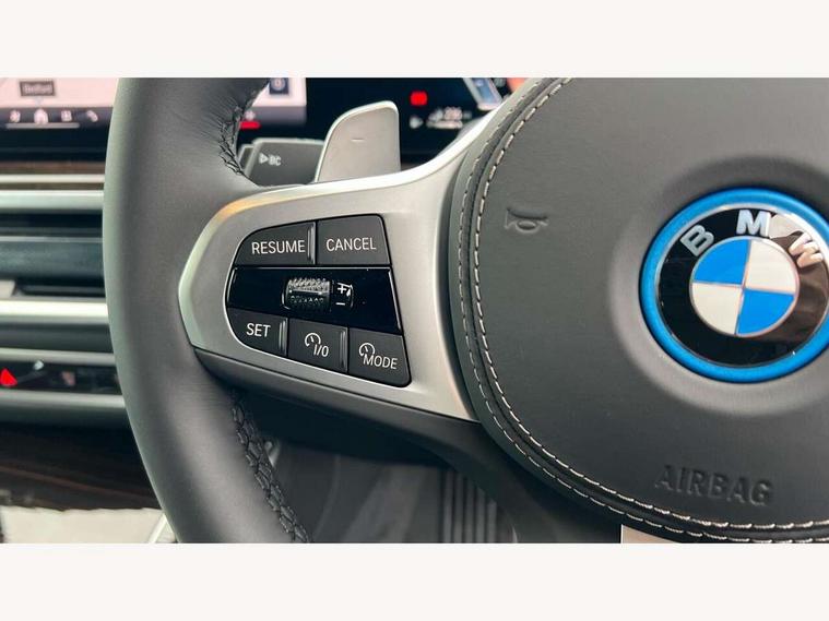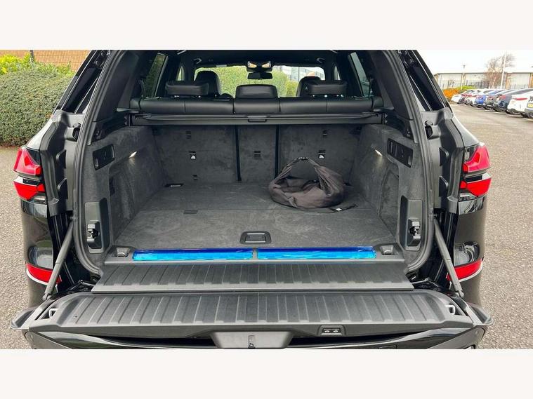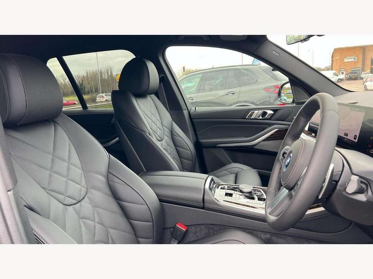 Attentiveness assist, Automatic tailgate operation, BMW ConnectedDrive online services, BMW live cockpit + with curved 12.3 instrument cluster/14.9 central display, nav/Tuner with diversity reception, RDS/4GLTE/remote software upgrade, BMW Teleservices, Condition based service, Cruise control with brake assist, eCall emergency call system, Enhanced bluetooth with wireless charging, Integrated owner's handbook, PAS, Speed limiter, Wi-Fi hotspot, AC Fast charging preparation (Maximum charging power 11kW), Adaptive 2-axle Front and rear air suspension, Drive performance control with ECO PRO comfort + sport mode, Eight speed steptronic sport automatic transmission and gearshift paddles on the steering wheel, Adaptive LED Headlights, Front and rear electric windows, High beam assistant, High gloss black shadow line roof rails, LED daytime running lights, Rain sensor, Rear side wing doors, Third brake light in rear spoiler, Variable intermittent rear wash/wipe, 12V - Power sockets with 2x centre console and 1x luggage compartment, 3 seat bench in 2nd row, Entry sills illuminated BMW inscription front and rear, Foldable rear centre armrest with 2 cupholders and storage compartment, Front and rear side armrest integrated into door trim, Grab handles in 1st and 2nd row of seats with Integrated in headliner, at rear with coat hooks, plastic, Headrests for all seats, Luggage compartment separating net, Lumbar support with height and depth adjustment in backrest, Single front passenger seat, Sunvisors with illuminated vanity mirrors and ticket pocket, Three spoke sport M leather steering wheel, Velour floormats, Ambient light interior pack - X5, Driving assistant pack with radar based driver assistance system - X5, Expanded exterior mirror pack - X5/X5 M, M aerodynamics pack - X5, Parking assistant pack - X5, 3 rear seatbelts, Acoustic protection for pedestrians, Active protection, Airbags - driver/front passenger, rear and side, first and second row seats head airbags, front passenger seat airbag deactivation + knee airbag, Anti-lock braking system (ABS), Automatic Stability Control (ASC), Brake energy regeneration, Cornering brake control (CBC), Crash sensor activating central locking release, hazard warning lights, fuel cut off, interior lighting + activation of safety battery terminal clamp, DSC - Dynamic Stability Control, Dynamic Traction Control - DTC, Electromechanical parking brake with automatic drive away release and auto hold function, Electronic brake force distribution, Hill start assistant, M Sport blue painted brake calipers with 'M' designation, Mechanical child proof lock on rear doors, Tyre pressure monitoring system, Tyre pressure sensors, Ventilated front and rear disc brakes, Warning triangle and first aid kit, Alarm system, Closing system with central locking, Comfort access system, Locking wheel bolts,