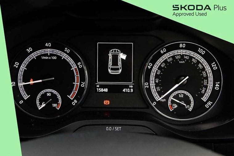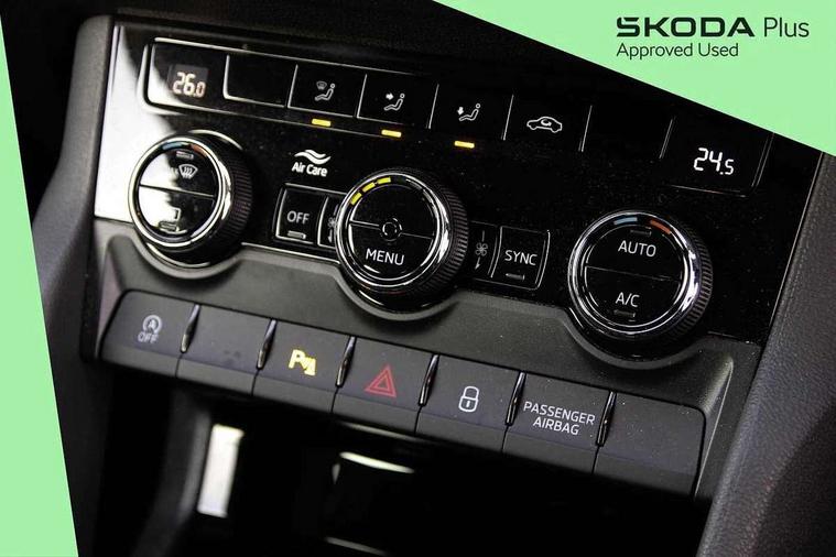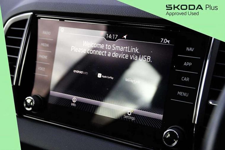 Chrome framed air vents, 17" Triton alloy wheels with anti theft wheel bolts, Storage on wheel cover, Alarm with interior monitoring, back up horn and tilt sensor with safe function, Electronic engine immobiliser, Remote central locking with 2 remote folding keys, DAB radio with Bluetooth, SD card slot, USB connection, Airbags - Front side, head, knee and curtain, Automatic door unlocking in case of crash, Automatic fuel cut off in case of crash, Driver airbag, Electronic parking brake with auto hold function, Emergency rear braking signal, ESC including ABS, MSR, ASR, EDS, HBA, DSR, RBS, MKB and traction control, Front assist radar scanning of the space in front of the car with automatic braking, Hill hold control, Passenger airbag with switch-off function, Pedestrian monitor, Three point seatbelts rear, Two tone horn, Tyre pressure display, Tyre pressure monitor, Acoustic glass, Aero front windscreen wipers with intermittent function, Automatic headlight control system, Black electric window control buttons, Body colour door mirrors and handles, Body coloured bumpers, Electric front and rear windows with child proof lock, Electrically adjustable heated folding and auto dimming door mirrors, Heated rear windscreen, LED rear lights with high functionality, Light assistant (coming/leaving home/tunnel light), Privacy glass, Safety reflectors on front doors, Third brake light, 1.5 litre bottle holders in driver and front passenger door panels, 12V socket in boot, 12v socket in front centre armrest with storage compartment and rear air vents, 2 Folding hooks and nets in boot, 2 Front readings lights for driver and passenger, 3 rear height adjustable headrests, 4 foldable roof handles with rear coat hooks, 4 lashing points on luggage floor, Backrest release, Cargo elements in boot, Chrome inner door handles, Driver and passenger seats height adjust, Folding tables on the front seat backrests, Front head restraints, Front seat and rear pockets, Height adjustable front three point seats belts with tensioners, Height/reach adjust steering wheel, Ice scraper, Illuminated and cooled glovebox, Illuminated luggage compartment, Isofix child seat preparation outer rear, Manual lumbar support for front seats, Net programme in boot, Pen holder, Pollen filter, Rear boot cover, Rear reading lights, Rear seats fixed folding and divided 60:40, Safety vest holder, Seatbelt reminder signalisation and pretensioner for all seats, Storage box in upper central dashboard closed, Sunvisors with illuminated vanity mirrors, Umbrella under passenger seat, Amundsen satellite navigation with 8" touchscreen display with maps Europe, WLAN and web radio, Care connect, Driver alert system, Driver fatigue sensor, Driver profile selection, Electro-mechanical PAS, Outside temperature gauge, Service interval indicator, SmartLink + wireless for Apple and wired for Android, Start/stop system with regenerative braking, USB C Port x 2 in front centre console,