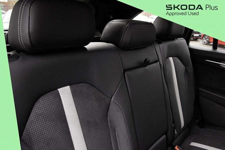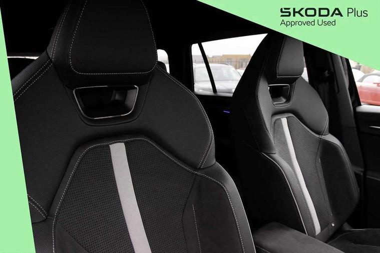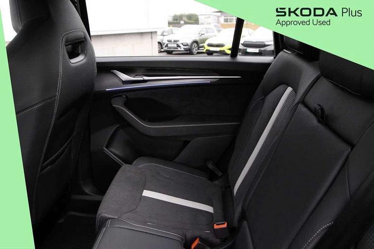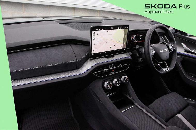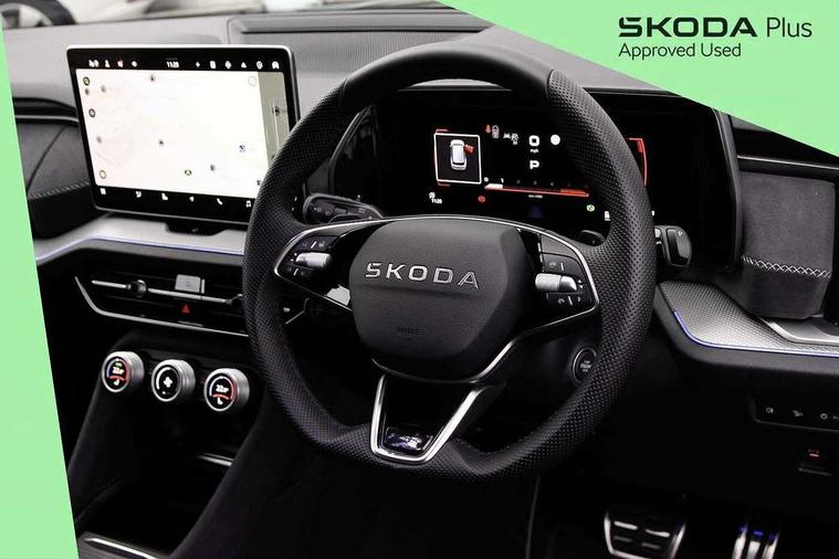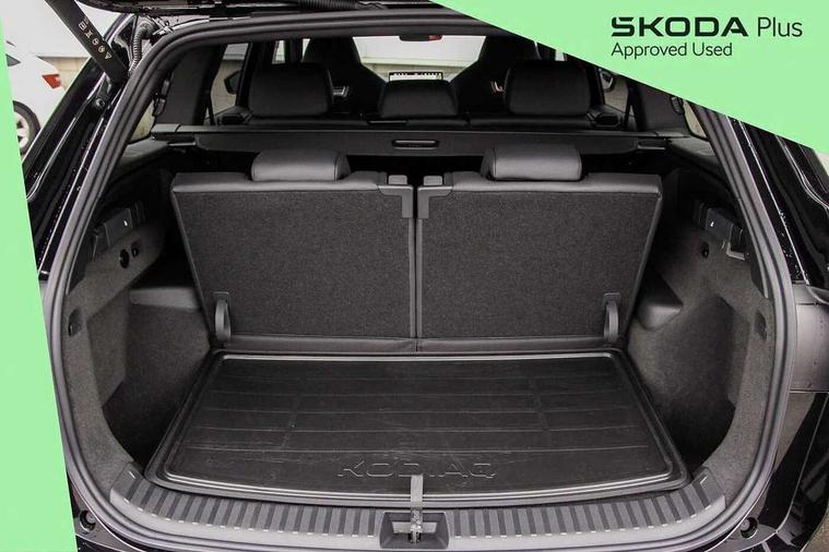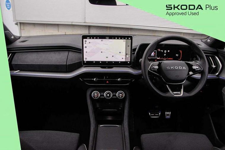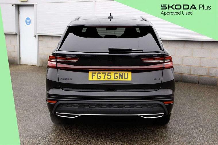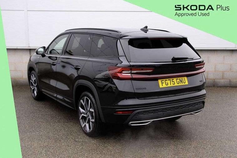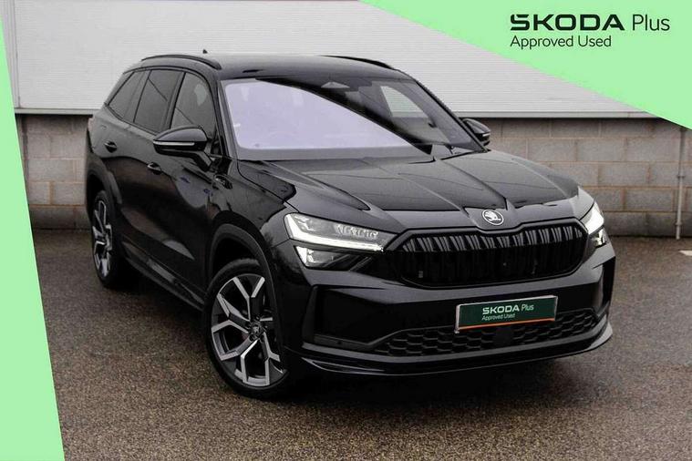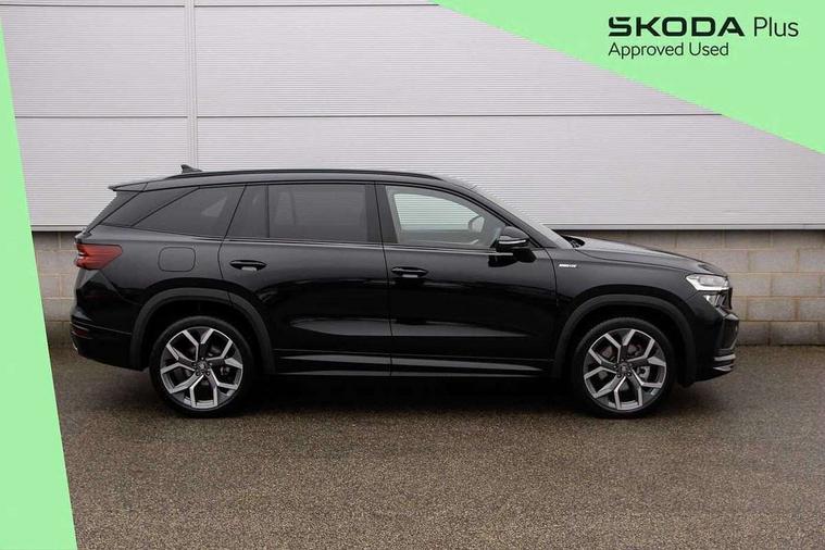 13" satellite navigation touchscreen display, Blind spot detection with door exit warning, Bluetooth system, ChatGPT functionality, Driver alert - Fatigue and drowsiness monitor, Dry display cleaner, Emergency call, Front and rear parking sensors, Front cross traffic assist, Lane assist, Off road modes, PAS, Rear traffic assist, Tailgate unlocking from outside, Traffic sign recognition, USB C Port x 2 in front centre console, Virtual Cockpit - 10.25" digital display, Voice control system, Wireless charging for two smartphones (15W) with cooling function, Wireless SmartLink for Apple CarPlay and Android Auto, Stop/start function, 2x USB-C in the rear, DAB Digital radio, Aero front windscreen wipers with intermittent function, Auto dimming rear view mirror, AWL (all weather lighting) and all weather light with cornering function, Black diffuser and decorative tailpipe with a unique dark chrome finish, Black roof rails, Black sports styling including front grille and window surrounds, Black wheel arch surrounds, Body colour door handles, Cornering light and poor weather light, Electric folding /adjustable/separted heated/folding door mirrors, auto dimming with boarding sports and memory function, Electric front and rear windows, Exterior black decorative trims, Front and rear sports bumpers including lower rear chrome strip, Front grille with horizontal light strip, Gloss black door mirrors, Gloss black window frame and D pillar, Heat insulating glass in windshield, Heated rear window, Ice scraper in fuel tank cap, LED daytime running lights, LED matrix headlights with AFS and LED fog lights, LED rear light with welcome effect and dynamic turn signals, LED third brake light in rear spoiler, Light assistant with automatic headlight control and coming home feature, Logo projection in door mirrors, Multiple matrix beam, Privacy glass, Rear roof spoiler, Rear side wing doors, Rear window wiper, Red decorative strip between rear LED lights, Safety reflectors on front and rear doors, Sportline badge on front fenders, Tailgate lettering in Black, Unique dark chrome design logo on alloy wheels, Window control switches with black trim, Windscreen wipers with rain sensor, Without engine designation, 1.5l bottle holder points in all door, 1x centre rear reading light, 2 seat bench in 3rd row, 3 configurable smart dials with 32mm coloured display, 3 seat bench in 2nd row, 3 spoke multi-function heated leather sports steering wheel with paddle shift, 4 foldable roof handles with rear coat hooks, Aluminium pedals, Ambient interior lighting - Dashboard, front-door stowage compartments, front and rear door panels and footwell lighting, Automatic gear selector on steering column, Chrome interior door handles, Driver/front passenger reading lights, Fabric headlining, Fixed bench 40:60:40 split folding backrests, Front and rear floor mats, Front centre armrest with jumbo box storage compartment, cup holder and 12V socket, Front sport seats, Height adjustable front headrests, Interior black decorative trims, Isofix child seat fittings in outer middle row rear seats and front passenger with top tether, Manually adjustable steering column, Pollen filter, Rear centre armrest with cupholders, Rear seat boot backrest release, Single front passenger seat, Skoda lettering on steering wheel, Storage pocket including mobile phone pockets on the backs of the front seats, Sunvisors with illuminated vanity mirrors, Three rear height adjustable headrests, Ticket holder on A Pillar, Tri zone climate control, Umbrella in door panel x1 made from sustainable materials, Upper and lower glovebox with card holder and coin compartment, USB C port by rear view mirror for charging only (15W), Acoustic package - Kodiaq, Performance package - Kodiaq, Sportline design selection pack - Kodiaq, Auto door release and activation of warning lights in the event of an accident, Driver and front passenger airbag with knee airbag and front passenger airbag deactivation, Electric child locks, Electronic parking brake, ESC (incl. ABS+EMD+MSR+ASR+EDL+HBA+DSR+RBS+ESBS+MCB+TSA+XDS), Front assist with braking reaction to vehicles, pedestrians and cyclists, Front disc brakes, Fuel cut off safety device, Height adjustable front 3 point seatbelts + pretensioners, Hill hold assist, Junction assist with automatic emergency braking, Rear disc brakes, Safety vest holder in door, Seat belt reminder for all seats, Three point rear seat belts, Two tone horn, Tyre pressure monitor, Alarm with interior monitoring and tilt sensor with safe function, Anti-theft wheel bolts, Immobiliser, Remote central locking with 2 keys, 20" Rila anthacite polished alloy wheel with black matte aero covers,