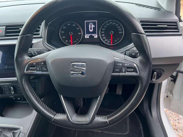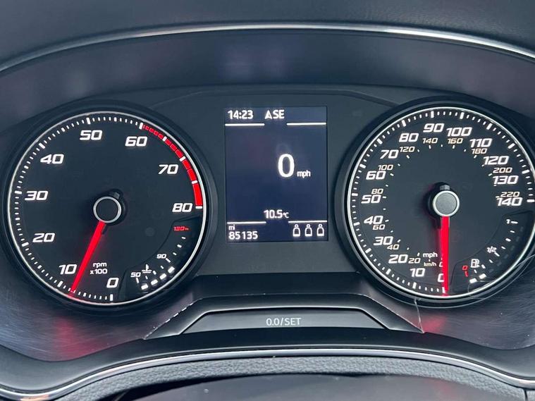 'Lights On' Reminder warning buzzer, Bluetooth Handsfree Phone Connection, Digital clock, Low fuel warning light, Outside temperature gauge, Satellite navigation system with 3D mapping, 8" touch screen, voice control and additional USB port, SEAT logo boot release, Speed sensitive power steering, Trip computer, Comfort suspension, Auxiliary input socket, Radio/MP3 player, SD card slot, Steering wheel mounted controls, USB port, Automatic headlights, Body colour bumpers, Body colour door handles, Body colour door mirrors, Chrome grille, Cornering front fog lights, Electric front windows + one touch + anti-pinch, Electric headlight adjustment, Electrically adjustable door mirrors, LED daytime running lights, LED tail lights, 3 rear headrests, 60/40 split folding rear seat, Cloth upholstery, Driver's sunvisor with ticket holder/vanity mirror, Dust/pollen filter, Front courtesy lights, Front cupholders x 2, Front reading lights, Glovebox, Height adjustable driver's seat, Height adjustable front/rear head restraints, Height/reach adjust steering wheel, Illuminated boot, Instrument lighting with brightness control, Leather handbrake, Leather steering wheel and gear knob, Rear top tether child seat ISOFIX attachment, 3 point seatbelts on all 3 rear seats, ABS, Active front headrests, Child locks on rear doors, Curtain airbags, Driver/Front Passenger airbags, ESP+EBA, Front side airbags, Hill hold control, Manual passenger airbag deactivation function, Multi-Collision braking, Seatbelt warning, Tyre pressure monitoring system, 2 folding remote keys with window open/close function, Electronic engine immobiliser, Locking wheel bolts, Remote central locking + deadlocks,