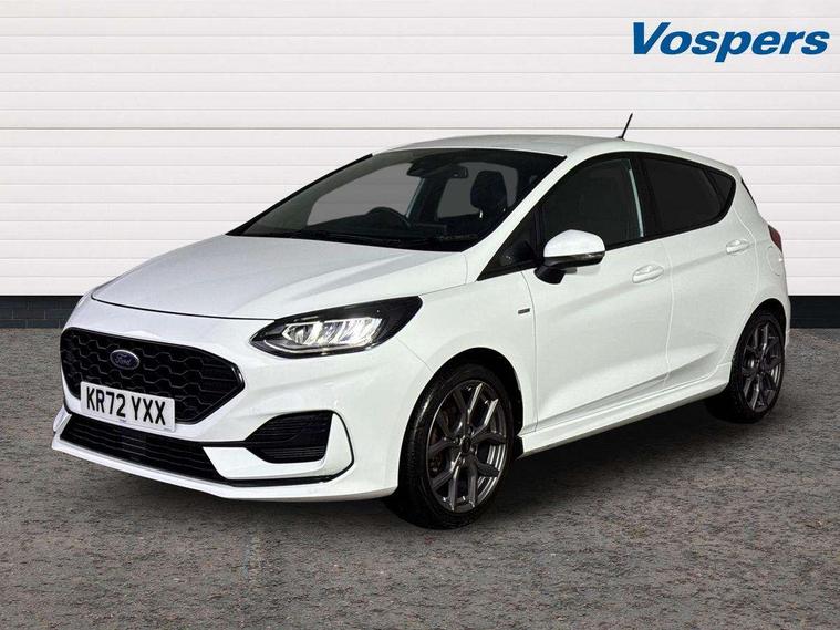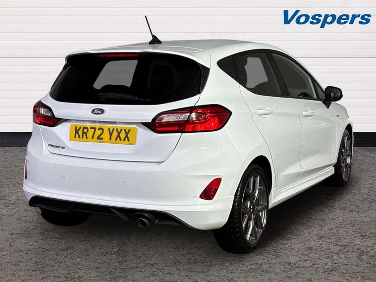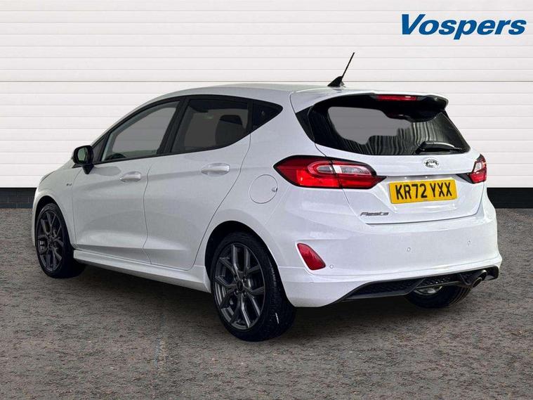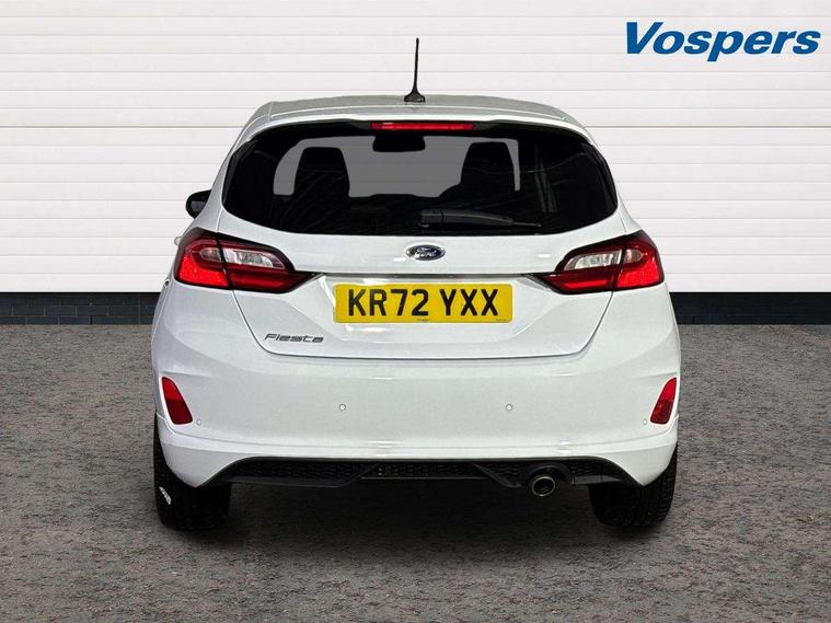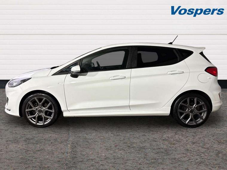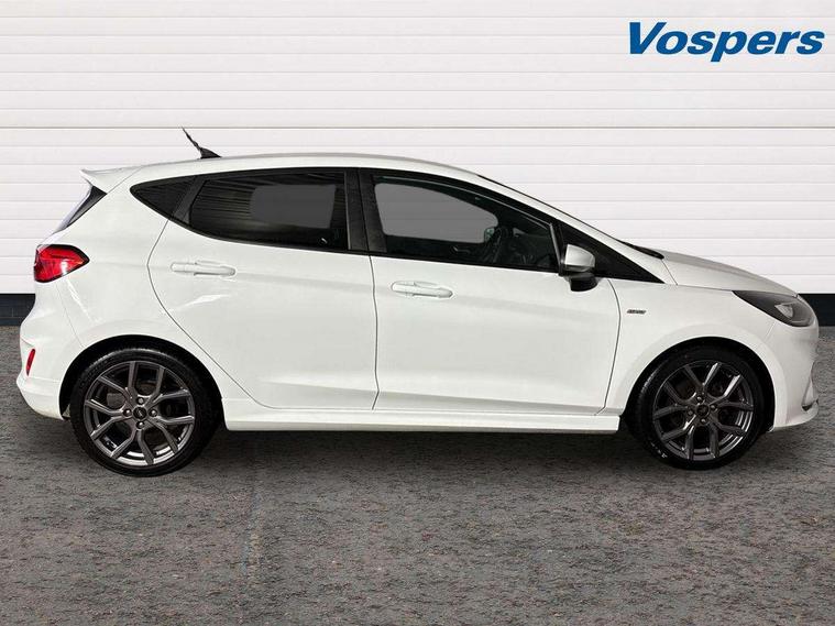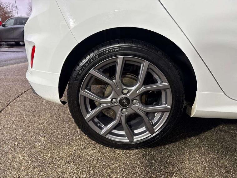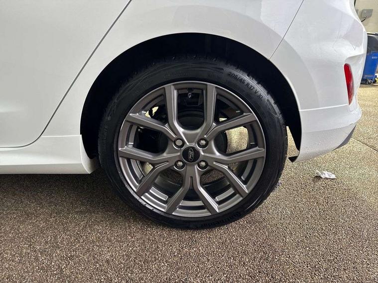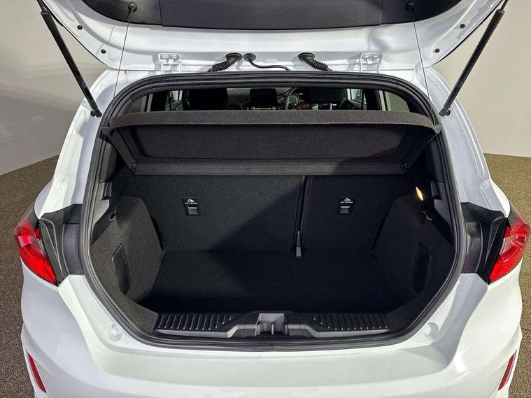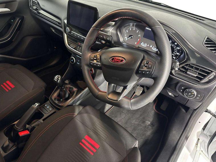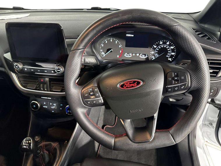 4.2" Colour TFT Ice blue illumination analogue cluster, Driver alert system, Electric power steering, Ford easy fuel, Lane keep assist, Lane keeping aid, Rear parking distance sensors, Selectable drive modes (Normal, Sport, Track), Trip computer, Sports suspension, 3rd brake light, Auto high beam, Automatic headlights, Body colour bumpers, Body colour large rear spoiler, Body coloured electrically operated with side indicators, Electric front windows/one touch facility, Electric rear windows, Quickclear heated windscreen, Rain sensing wipers and auto dimming rear view mirror, Rear privacy glass, Rear side wing doors, Rear wiper, Unique ST-Line grille, full bodystyling kit and large body coloured rear spoiler, 3 rear headrests, 3 seat bench in 2nd row, Adjustable head restraints, Black headlining, Centre console with opening armrest, 2x cupholders, 12v and USB, Cloth upholstery with red stitching, Leather gear knob, Manual 2 way passenger seat adjust, Manual 4-way driver seat adjust, Manual air conditioning, Premium floor mats, Sensico wrapped steering wheel, Single front passenger seat, 3 point seatbelts on all rear seats, Electronic stability control with hill start assist, Front and rear seat belt warning, Manual child lock in rear doors, Tyre pressure monitoring system, Keyless start with 'Ford Power' starter button, MyKey system, Remote central locking, Thatcham alarm with power door dead locks, 17" 5x2 spoke alloy wheels with rock metallic finish,