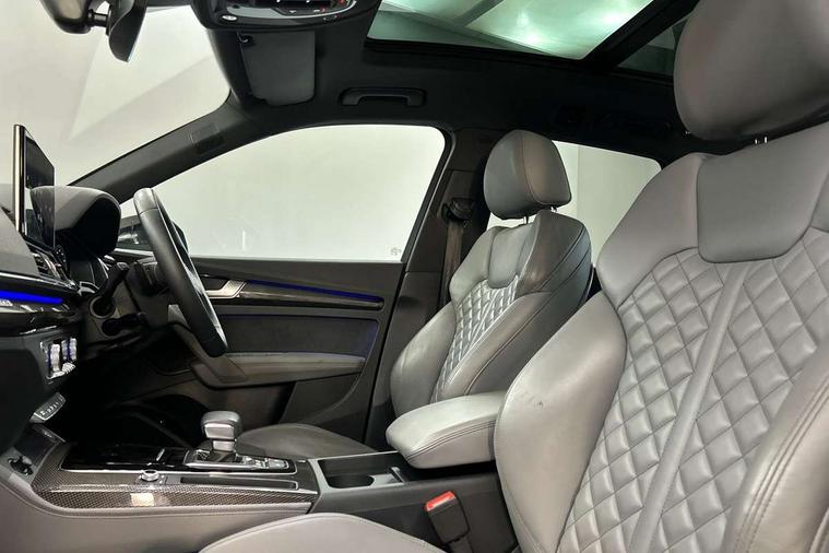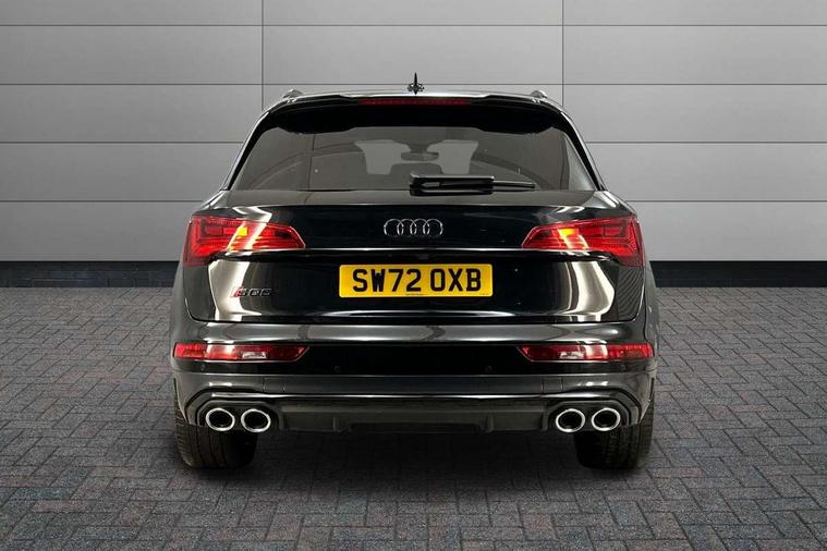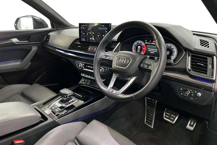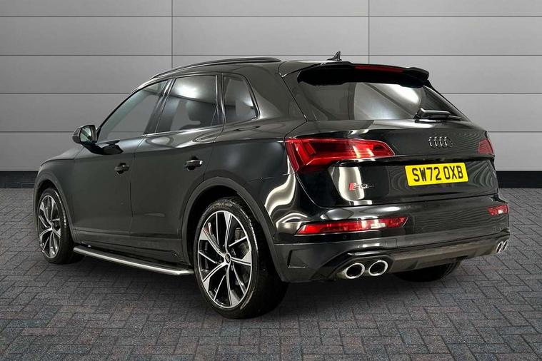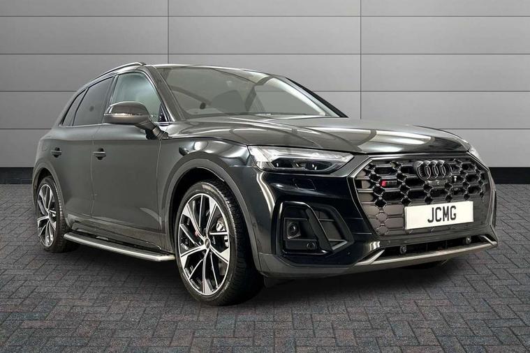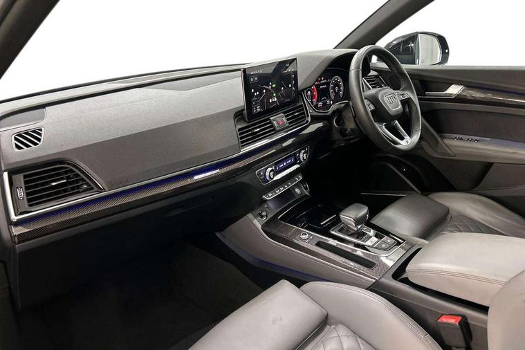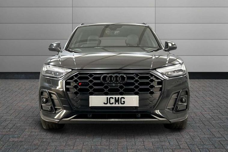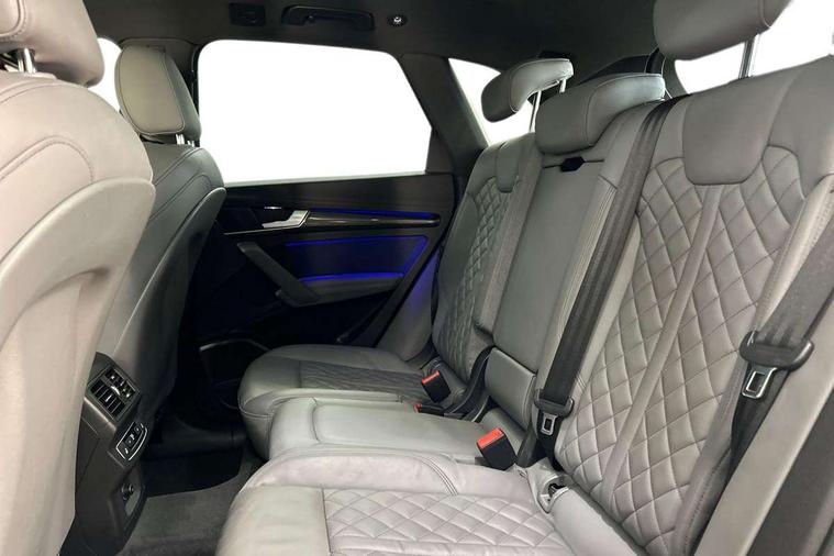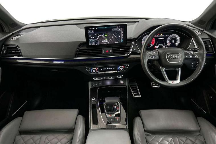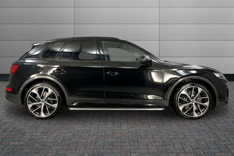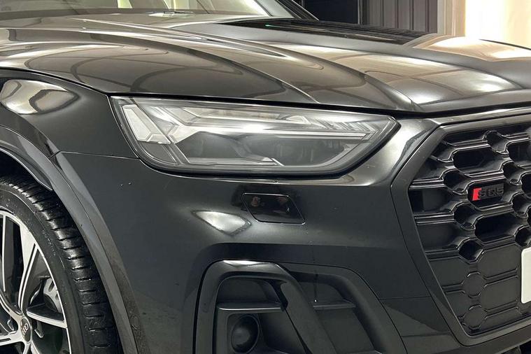 360 degree camera with top view, Advanced key with electric hands free boot opening system, Audi connect safety and service (e-call), Audi connect with Amazon Alexa Integration, Audi drive select, Audi virtual cockpit plus with 12.3" screen and three different layout designs, Audi wireless smartphone interface, Automatic start-stop system with coasting functionality and efficiency programme, Bluetooth interface, Electro - mechanical power assisted steering, Head up Display, MMI navigation plus with 10.1" touch screen, Park assist with parking aid plus, Power tailgate, Service interval indicator, Voice control system with Audi hotword activation "Hey Audi", 70 litre fuel tank and 24 litre AdBlue tank, Diesel particulate filter, Quattro with sport differential, S adaptive air suspension, 2 x USB charging port with aux input socket, Bang + Olufsen sound system, DAB Digital radio, Acoustic windscreen, Audi beam with 'Vorsprung' logo, Auto dimming door mirrors, Auto dimming rear view mirror, Automatic headlights and windscreen wipers, Black roof rails, Body colour bumpers, Body colour underbody protection, Chrome plated exhaust trims, Contrast bumpers in Manhattan grey, Daytime running lights, Door sills in Selenite silver, Electric adjustable/heated/folding door mirrors, Front air inlet surrounds in titanium black, Front and rear electric windows, Gloss black finish for Audi rings and SQ5 logos, Headlight washers, High gloss black B pillar trims and triangular rear door trim, High level LED brake light, Matrix LED headlights with dynamic front and rear indicators, Rear chrome trim strip below lights, Rear privacy glass and rear side windows, Rear side wing doors, Rear wiper, Roof bars, Running boards, S front and rear bumpers, S Line rear spoiler, S Line side skirts, S specific rear diffuser, 3 rear headrests, 3 spoke flat bottomed multi-function leather steering wheel, 4 way electric lumbar support for driver and front passenger, 40:20:40 split folding 3 rear bench seat in 2nd row with rear centre armrest, Black cloth headlining, Comfort front centre armrest, Contrast stitching on seats, steering wheel and gear lever gaiter, Deluxe 3 zone electronic climate control, Fine Nappa leather upholstery with diamond pattern contrast stitching + front sport seats with S embossed logo, Front/rear floor mats, Fully electrically adjustable seats, Gear lever in black leather, Heated front and outer rear seats, Height adjustable front head restraints, Illuminated door sill trims with S logo, ISOFIX child seat mounting and top tether, Massage function for front seats, Rear seat bench plus, Removable luggage compartment floor, Single front passenger seat, Stainless steel pedals, Sunvisors with vanity mirrors, Black styling package - Q5, City Assist pack - Q5, Extended interior upholstery pack - Q5, Extended LED Interior multi coloured Lighting Pack - Q5, Tour pack - Q5, 3 point seatbelts on all seats, 6 airbags - Driver, front passenger, curtain and side airbags, Electrically operated child locks on rear doors, Electromechanical parking brake, Electronic stabilisation control including ABS, ASR and EDL, Front passenger airbag deactivation, Hill descent control, Hill hold assist, Multi collision brake assist, Pop-up bonnet for pedestrian protection, Pre sense city, Seat belt force limiter, Seatbelt monitoring, Tyre pressure warning, Warning triangle and first aid kit, Anti theft alarm, Anti-theft wheel bolts, Keyless Go access/ignition system, Remote central locking, Carbon atlas inlays, Tool kit, Tyre repair kit,