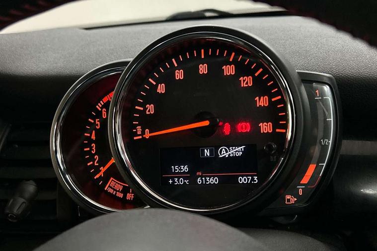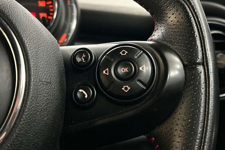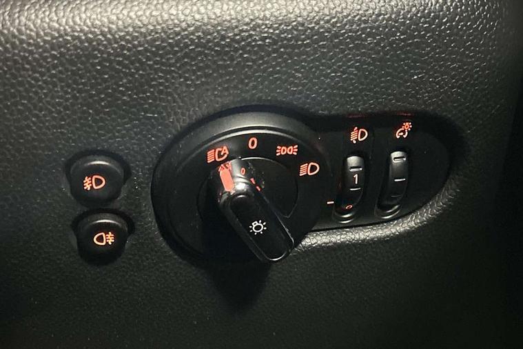 Acoustic seat-belt warning, Basic bluetooth function with USB audio, Brake fluid level warning light, Brake pad wear indicator warning light, DTC - Dynamic traction control, Exterior temperature gauge, Intelligent emergency call, MINI TeleServices, Oil level indicator, On board computer, Push button starter, Service interval indicator, Servotronic PAS, Electronic differential lock, Auxiliary input socket, DAB digital radio module, 2 speed wipers+intermittent wipe, Anti dazzle mirror, Anti trapping/one touch open close front windows, Body coloured bumpers, Chrome bezels around rear lights and headlights, Chrome door handles, Chrome exhaust tailpipe, Chrome grille surround, Chrome plated trim on bottom edge of window, Chrome strip on lower grille, Electric front windows, Electric rear windows, Electrically adjustable door mirrors, Flared wheel arches, Follow me home headlights, Green tinted heat insulating glass, Heated door mirrors/heated windscreen washers, Heated rear window with auto timer, High gloss black tailgate, LED fog lights, LED rear lights, Rear wiper, Roof spoiler in roof colour, Side scuttles, White indicator lights, 2 rear head restraints, 4 boot load lashing points, 4 way manually adjustable passenger seat with height, reach, tilt, backrest and headrest, 6-way manually adjustable driver's seat, Active carbon filter, Adjustable front seats backrest, Air recirculation system, Auxiliary socket in centre console storage compartment, Centre console storage, Driver's seat height adjuster, Driver/passenger sunvisors, Easy entry seats, Front and rear cupholders, Front head restraints, Front passenger grab handle, Gear/selector and handbrake in artificial leather, Internal chrome door handles, Isofix child seat preparation, Luggage compartment lighting, Multifunction steering wheel, Reach + rake adjustable steering column, Rear grab handles, Rear storage trays, Split folding rear seats, Storage compartments in doors, Toolkit in luggage compartment, 3 point seatbelts, 3x3 point rear seatbelts, ABS/EBD, ASC+T, Cornering brake control (CBC), Crash Sensor - activates hazard/interior lighting + unlocks doors, Driver and passenger airbags, Driver/front passenger side airbags, DSC - Dynamic Stability Control, Fuel cut off safety device, Head airbags, Hill start assist, Manual passenger airbag deactivation function, Seatbelt pretensioners, Tyre pressure warning, Ventilated front disc brakes, Drive away door locking, Locking wheel bolts, Remote central locking/doors+fuel cap+tailgate, Second remote key, Thatcham category 1 alarm + immobiliser,