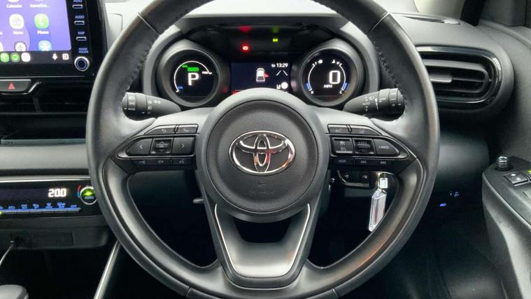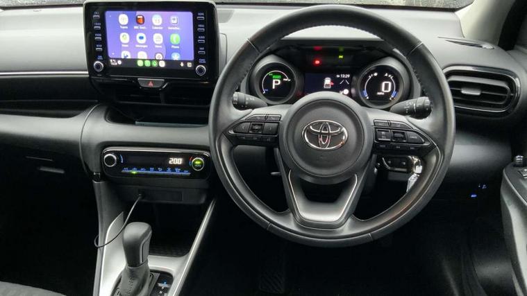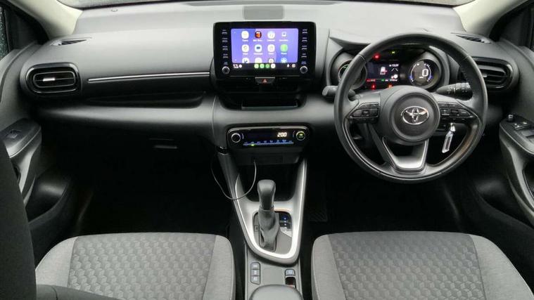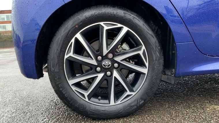 Adaptive cruise control, Adjustable speed limit with speed warning, Bluetooth connectivity, Colour binocular inspired displays with digital speedometer, E-call, Electric power steering, Hybrid energy display, Multi information display switches on steering wheel, Reversing camera, Smartphone integration with Apple CarPlay and Android auto, Tailgate, Voice recognition, Vehicle Stability Control (VSC), 4 speakers, 8" Multimedia display touch screen, USB connection, Acoustic windscreen glass, Auto windscreen wipers, Automatic headlights, Body coloured door mirrors, Electric adjustable heated door mirrors, Follow me home headlights, Front auto power windows with anti jam protection, Full LED rear lights, LED daytime running lights, LED front fog lights, LED front light guide, LED Headlights, LED High mounted stop lamp, LED Indicators, LED rear light guide, Manual headlight levelling, Painted chequered front grille, Rain sensor, Rear auto power windows with anti jam protection, Rear privacy glass, Rear side wing doors, Rear spoiler, Rear wiper, Shark fin antenna, Turning signal integrated indicators in door mirrors, Variable front intermittent wipers, 3 adjustable rear headrests, 3 spoke leather steering wheel, 60/40 split folding rear seat, Active headrests, Adjustable boot height, Auto air conditioning, Coat hooks in rear grab handles, Cup holders (2 front & door), Data Communication Module (DCM) connected services, Fabric upholstery, Front armrest, Glovebox, Grey roof lining, Height adjustable driver's seat, Isofix seat fixing, Leather gearshift, Pollen filter, Shopping bag hooks, Single front passenger seat, Tilt/telescopic steering column, 3 point seatbelts on all rear seats, ABS+EBD+Brake assist, Electronic parking brake, Emergency brake light system (EBS), Front passenger airbag on/off switch, Front seatbelt reminder, Hill start assist control (HAC), Rear child proof door locks, Rear seat belt reminder, Supplemental Restraint System (SRS) 8 airbags: Driver & passenger's airbags, dual side curtain airbags, side impact airbags, front centre airbag, Toyota Safety Sense 2, Precollison + Night time Pedestrian & Cyclist Detection, Lane Trace Assist, Auto High Beam, Intelligent ACC & Road Sign Assist, Tyre pressure warning system, 2x Master key, Alarm/immobiliser, Remote powered central double locking doors, Soft touch instrument panel, Space saver spare wheel,