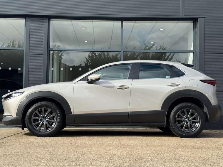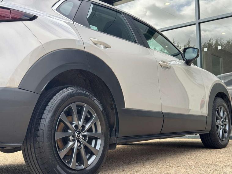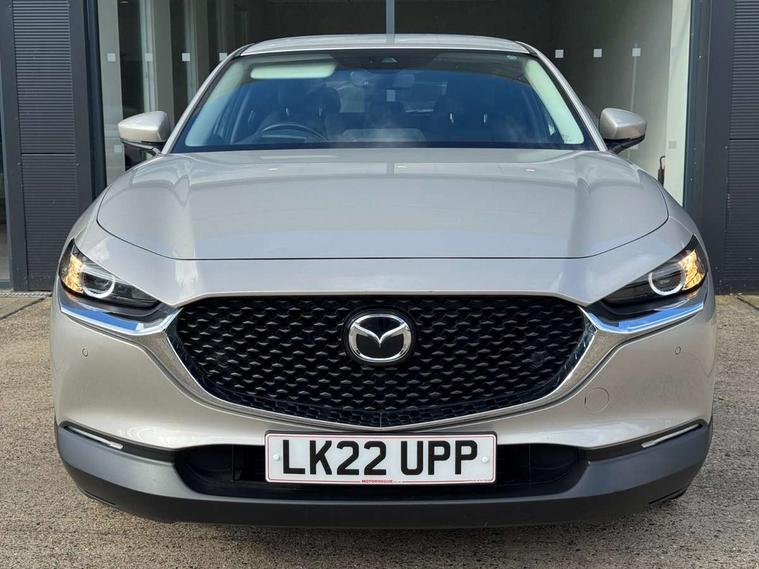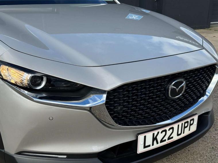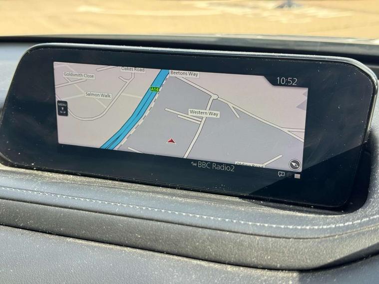 7" TFT Colour driver instrument panel display, 8.8" Colour centre touch screen display with Mazda Connect infotainment, Adaptive cruise control (Mazda radar cruise control), Apple car play/Android Auto, Blind spot monitoring with rear cross traffic alert, Driver attention alert system, E-call with GPS, Emergency stop signalling system, Engine start/stop button, Front and rear parking sensors, Integrated bluetooth, Integrated Mazda navigation system, Intelligent speed assist, Lane keep assist system (LAS) with Lane departure warning system (LDWS), Mazda connected services, PAS, Reversing camera, Service indicator, Tailgate, Traffic sign recognition, Trip computer, Windscreen projected colour active driving display (HUD), Cylinder Deactivation, i-stop, 2 USB charging ports in front inner central armrest, AM / FM / DAB radio with 8 speakers, Multimedia Commander including separate volume dial, Steering wheel mounted audio/bluetooth controls, B-pillar and C-pillar garnishes in satin black finish, Auto dimming driver's door mirror, Auto dimming rear view mirror, Auto headlight levelling, Body coloured, electrically adjustable, heated auto power folding door mirrors with integrated indicators, Chrome finish signature wing in front grille, Coming/leaving home lighting function, Dual chrome exhaust, Dusk sensing headlights, Electric front/rear windows with one touch auto up/down, Front kodo turn signal, Gloss black rear roof spoiler, LED headlights with halogen daytime running lights and high beam control, LED rear combination lights, Rain sensing front wipers with adjustable speed and intermittent wipe, Rear fog lights, Rear side wing doors, Rear wiper, Satin black front grille, Third brake light, 12V power outlet in centre console, 3 seat bench in 2nd row, 60/40 split fold down rear seats, Cloth upholstery with interior accents, Dark cloth door panel inserts, Dashboard, door cards and front centre armrest in black cloth, Driver and front passenger visors with covered vanity mirror and driver ticket holder, Driver seat manual slide, recline, height and seat tilt adjust, Driver, front passenger and two rear door storage, Driver, Front passenger and two rear grab handles with coathooks, Dual zone climate control air conditioning with rear air vents, Folding rear centre armrest with two cup holders, Front and rear (x3) head restraints, Front and rear LED lighting, Front armrest, Front centre storage with two cupholders, Front passenger seatback pockets, Front passengers seat manual slide, recline and height adjustment, Gear shift indicator, Glovebox illumination, Heated front seats with 3 stage setting, ISOFIX child seat anchorage points attached on outer rear seats, Leather wrapped gear shift knob, Leather wrapped steering wheel with telescopic and tilt adjustment, LED luggage compartment lighting, Light roof headlining and pillars, Roof mounted sunglasses holder, Single front passenger seat, 3 point ELR front seat belts x2 with pretensioners, 3 point ELR rear seat belts, Anti-lock braking system (ABS), Drivers knee airbag, DSC - Dynamic Stability Control, Electronic parking brake with auto disengage function and auto hold function, Front and rear curtain airbags, Front dual stage driver and single stage front passenger airbags, Front passenger airbag cut-off switch, Front side airbags, Front smart city brake support, G-Vectoring control plus, Hill launch assist, Manual child lock in rear doors, Mild Hybrid system with regenerative braking, Seatbelt reminder for driver/front passenger and rear seats, Traction control system (TCS), Tyre pressure monitoring system (TPMS), Remote central locking with deadlocking and automatic door lock when driving, Smart keyless entry, Thatcham accredited alarm and immobiliser, 16" Grey alloy wheels, Emergency tyre repair kit,