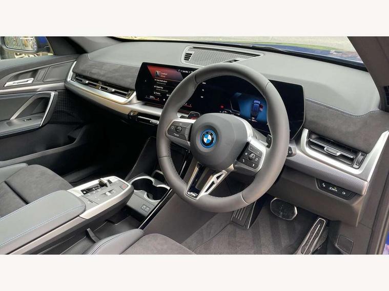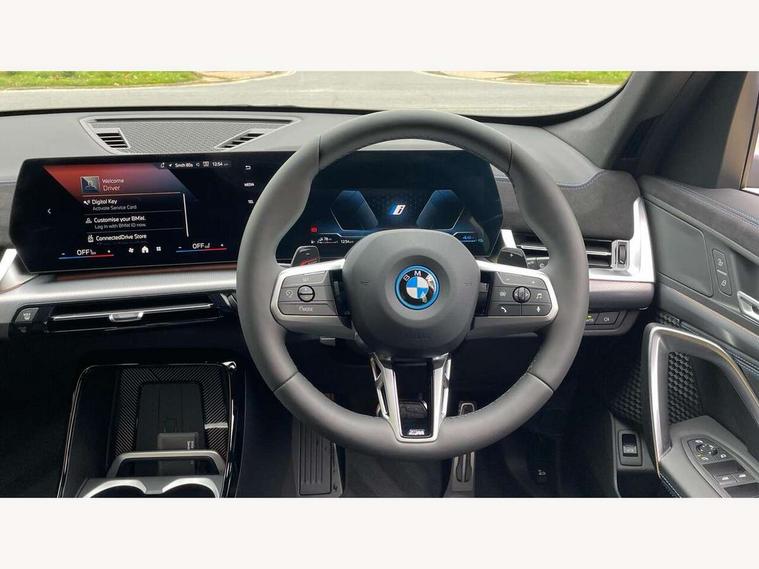 Attentiveness assist, Automatic start/stop function, BMW Live Cockpit Plus with 10.25" instrument cluster and 10.7" display, BMW Operating system 9 with BMW Maps, real-time traffic information, in-car experiences, remote services and smartphone integration, BMW Teleservices, Brake pad wear indicator, Condition based service, Connected eDrive Services, Drive off assistant, Electrically opening/closing tailgate with opening/closing with remote control and contactless opening and closing, iDrive controller, Language version English, My Modes, Parking Assistant with Reversing Assistant, active PDC, Lateral Parking Aid, Rear View Camera and Park Distance Control, Personal Profile - automatic lock when driving away selectable, Servotronic PAS, Tyre puncture warning system, Widescreen display, 11 kW AC charging power, eDrive exterior sound, EU6 emissions management, Fast charging cable professional mode 3 for public charging, M Adaptive suspension, Performance Control, Petrol Particulate Filter, Steptronic transmission with double clutch and gear shift paddles, xDrive intelligent four wheel drive system, BMW Personal eSim, DAB Digital radio, Badge on engine compartment lid and tailgate, Body colour door mirrors, Dynamic brake lights, Electric adjustable heated door mirrors, Electric windows - front and rear, with open/close fingertip control, anti-trap facility and comfort closing, Folding door handles integrated flush with surface, Follow me home headlights, Front and rear bumper panel with M specific design, in body colour with inserts in black high gloss, Front door exit lights, Heated rear window, High gloss shadowline, Invisible exhaust tailpipe, Key with M identification, LED 3rd brake light integrated in rear spoiler, LED daytime running lights, LED number plate light, M identification on the sides, M roof rails high gloss shadow line, M specific radiator grille in satinated aluminium, Matt black roof strips, Model inscription on right tailgate, Rain sensor including auto headlights activation, Rear side wing doors, Rear wiper, Sill cover in body colour, Trailer stabilisation logic, Windscreen washer nozzle for rear view camera, Windscreen wipers front with heated washer nozzles, 12V - Power sockets with front centre console and luggage compartment, 2 bag hooks in luggage compartment, 2 cup holders in front, 2 x USB Type C ports for charging in front centre console + 1 x USB Type C ports for charging in rear centre console, 3 rear headrests, 3 seat bench in 2nd row, 3 upper retaining strap clips integrated into rear panels of seat backrests, 4 grab handles, 40:20:40 split folding rear seats, Ambient interior lighting, Anthracite headlining, Anthracite Velour front and rear floormats, Bottle trays in all doors, Child seat ISOFIX attachment for two outer rear seats and front passenger seat with anchorage points, Clothes hook rear, Driver and front passenger heated seats, Dual zone automatic air conditioning, Front and rear door pockets, Front and rear footwell lighting, Front centre console storage compartment, Front/rear adjustable head restraints, Glove compartment, Interior door handle recess light on all doors, Light on right in luggage compartment, M sport leather steering wheel, Manual steering column height and depth adjustment, Middle centre console storage compartment, One piece parcel shelf opens together with tailgate and removable, Rear armrest in door trim panel, Single front passenger seat, Sport leather multifunction steering wheel with thumbrests and operation of instrument display, audio, telephone and driver assistance, Storage compartment net in left side trim panel, Storage compartment with folding cover under centre console armrest cushion, Storage tray in right side trim panel, Tilt adjustment incl. cargo function of 2nd row of seats, Vanity mirror lights, ABS/EBD, Automatic hold function, Automatic Stability Control (ASC), BMW emergency call, Braking readiness, Cornering brake control (CBC), Crash Sensor - activates hazard/interior lighting + unlocks doors, Driver/Front Passenger airbags, Driver/front passenger side airbags, Dry braking, Dynamic brake control, Dynamic stability control + (DSC+), Electromechanical parking brake, Energy recovery system, First aid kit, Front and rear brake discs, Front and rear head airbags, Front passenger airbag deactivation, Integrated brake system, PC iBrake PostCrash approach control warning with light braking function, Rear door child safety locks, Three point seat belts in all seats, Tyre pressure monitor, Warning triangle, Alarm system with tilt sensor, monitoring doors, bonnet interior and tailgate, Closing system with central locking, Locking wheel bolts, Luxury instrument panel, Tyre repair kit plus,
