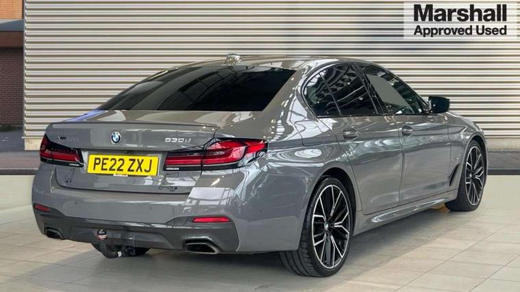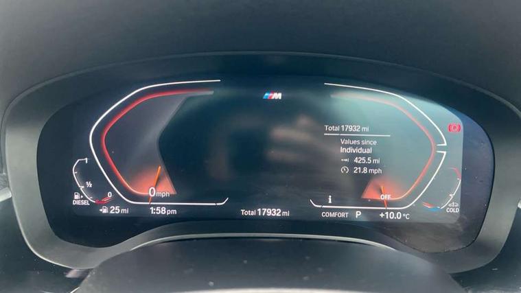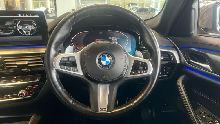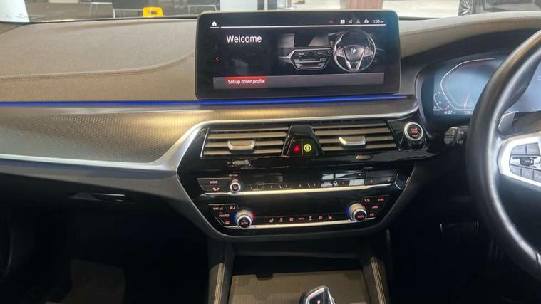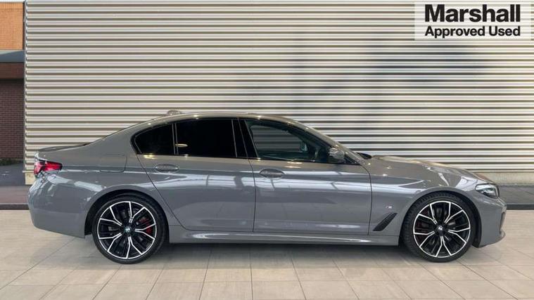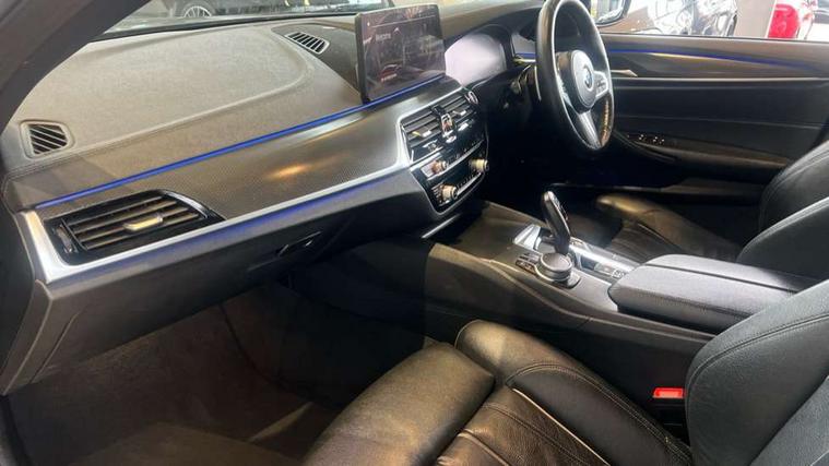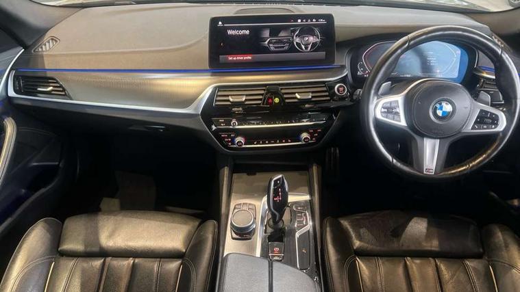32GB hard disc drive (HDD) memory, Active Guard, BMW Live Cockpit Professional sat nav system with 12.3" instrument display and high resolution control display, BMW Teleservices, Brake pad wear indicator, Cruise control with brake assist, Driving experience switch, eCall emergency call system, Electric Power Steering (EPS) with Servotronic, iDrive controller with shortcut buttons, Intelligent emergency call, Multifunctional instrument panel, Oil sensor for level and grade, On board computer inc. average speed, fuel consumption, liquid crystal Info display, journey computer, outside temperature display, personal profile, On-board diagnosis - OBD, Powered by Operating System 7.0, Service interval indicator, Speed limiting function, Stop/start button, 48V Mild hybrid technology, Diesel particulate filter, Drive performance control with ECO PRO comfort + sport mode, Engine cover with twin turbo designation, M sport suspension, Steptronic transmission with gearshift paddles on steering wheel, DAB Digital radio, Favourite buttons, Acoustic glazing, All round anti-corrosion system, Automatic windscreen wipers and automatic headlight, Automatically dimming rear view mirror, BMW Individual high gloss shadow line includes exterior mirror frame, window frame surround, B pillar finish, air breather in high gloss black, Body colour door handles, Body coloured bumpers, Door handle illumination, Dynamic brake lights with LED technology, Electric front and rear windows with fingertip open/close + anti-trap facility and comfort closing function, Electrically adjustable and heated exterior mirrors includes integrated direction indicators and automatic parking function, Folding exterior side mirror with auto- dimming, Follow me home headlight function, Heated windscreen washer jets, High gloss black active air stream kidney grille, LED daytime running lights, LED third brake light, M designation on front side panels, left and right in chrome, Rear boot, Rear side wing doors, Trapezoidal visible exhaust tailpipes, xDrive designation on tailgate, 12V power socket in front and rear, 2 cup holders in front, 3 seat bench in 2nd row, Armrest - front and rear integrated door trim, centre console includes storage compartment, rear centre includes 2 cupholders, Child seat ISOFIX attachment with rear outer seats includes top tether, Front and rear footwell lights, Front reading lights, Height and length adjustable steering column and activation via lateral lever on the steering column, Lockable glove compartment with light, M door sill finishers, M specific pedals, M specific velour floor mats, Multifunction controls for leather steering wheel, Rear headrests, Single front passenger seat, Three spoke sport M leather steering wheel, Ambient lighting pack - 5 Series, Connected package professional - 5 Series, M Aerodynamic pack - 5 Series, Parking assistant pack - 5 Series, Airbags - driver/front passenger, rear and side, first and second row seats head airbags, front passenger seat airbag deactivation, Anti-lock braking system (ABS), Automatic Stability Control (ASC), Brake assist function, Brake energy regeneration, Cornering brake control (CBC), Crash sensor activating central locking release, hazard warning lights, fuel cut off and interior lighting, Deformation zones - front and rear with door reinforcements and bumpers up to 2.5 mph, DSC - Dynamic Stability Control, Dynamic brake control, Dynamic Traction Control - DTC, Electromechanical parking brake with automatic drive away release and auto hold function, Electronic brake force distribution, Engine drag torque control, Front and rear brake discs with interior ventilation, Front head restraints with anti-whiplash, Hill start assist, M Sport brakes in high gloss blue painted brake callipers with M designation, Mechanical child proof lock on rear doors, Passive protection for pedestrians, Rear door child safety locks, Side impact protection, Three point seat belts for all four seats, Two tone horn, Tyre pressure indicator, Warning triangle and first aid kit, Alarm system (Thatcham 1) with remote control and electronic engine immobiliser, Locking wheel bolts,