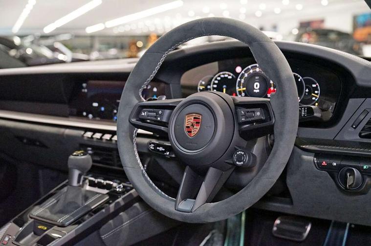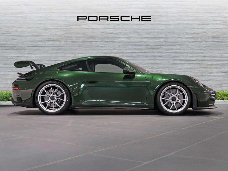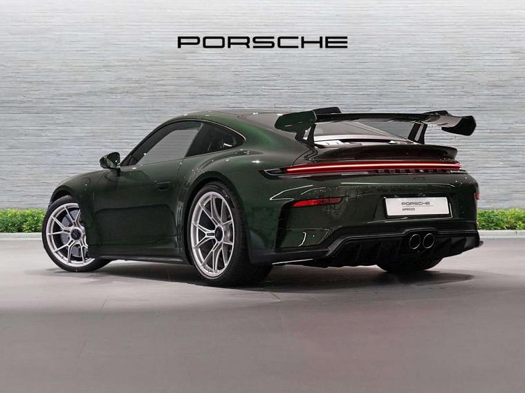 Apple CarPlay, Cruise control, Driver awareness detection, Driving modes, Emergency call systems eCall and bCall, Lane keep assist, Navigation High, Power steering plus, Rear axle steering with sport setup, Reversing camera system, Smartphone compartment with wireless charging up to 15 W, Traffic sign recognition, Voice control, Warn and brake assist including pedestrian protection, 4.0 litres 6-cylinder horizontally opposed and naturally aspirated engine, 63 litre fuel tank, 7 Speed Porsche Doppelkupplung (PDK) with short transmission ratios and sports set up, Lithium-ion lightweight starter battery Track LiFePO4 (40Ah), PASM Sports suspension, Porsche Torque Vectoring Plus (PTV Plus) inc electronically regulated rear differential lock and fully variable torque distribution, Rear wheel drive, DAB Digital radio, Automatic headlight activation including welcome home lighting, Automatically dimming interior and exterior mirrors with integrated rain sensor, Bonnet and roof in exterior colour, Electrically adjustable heated exterior mirrors on door waist rails, aspherical on driver's side, Fuel/charging cover, GT3 Specific rear lid, LED 3rd brake light, LED daytime running lights, Lightweight and noise insulated glass, Lightweight stainless steel sports exhaust system with 2 central tailpipes in black, Lower valance, PORSCHE logo painted in satin black, Rear boot, Rear diffusor in louvered design, Trim on side skirts in black, Unique air intake grille including badge with GT3 touring logo, Windscreen with grey top tint, Delete quilting, Front head restraints, GT-specific PDK gear selector with manual gate and grip area, Headrests with stitched model designation, Interior lighting, Leather door panel and central armrests, Particle/pollen filter with active carbon filter, Roof lining and A, B & C-pillar trims in black race tex, Single front passenger seat, Steering wheel with manual fore/aft and height adjustment, Two zone auto climate control, USB-C fast charging, 3 point automatic seatbelts, Airbags, Electric parking brake, Passenger airbag deactivation, Pedestrian safety, Seatbelt pretensioners, Seatbelt warning device for driver and front passenger seats, Warning triangle, Alarm system with interior surveillance, Alcohol interlock preparation, Keyless Go, Preparation for Porsche Dashcam, Tyre pressure monitoring system with race track mode, TPM valve in silver, Tyre sealing compound and electric air compressor kit, Wheel centres with GT3 logo,
