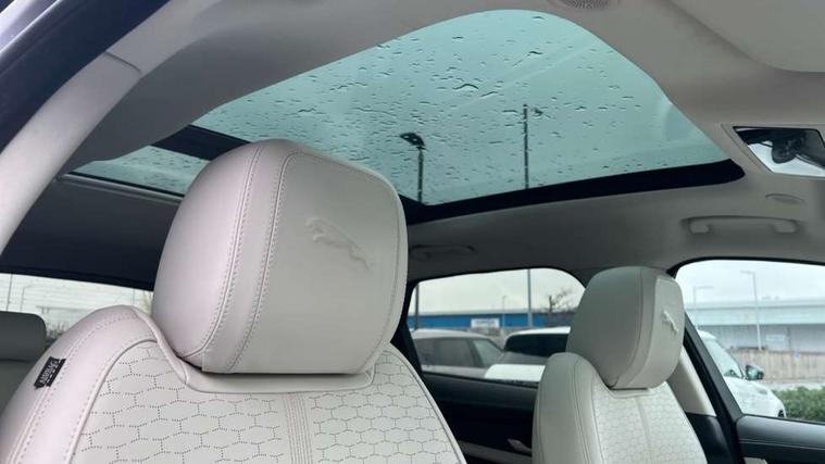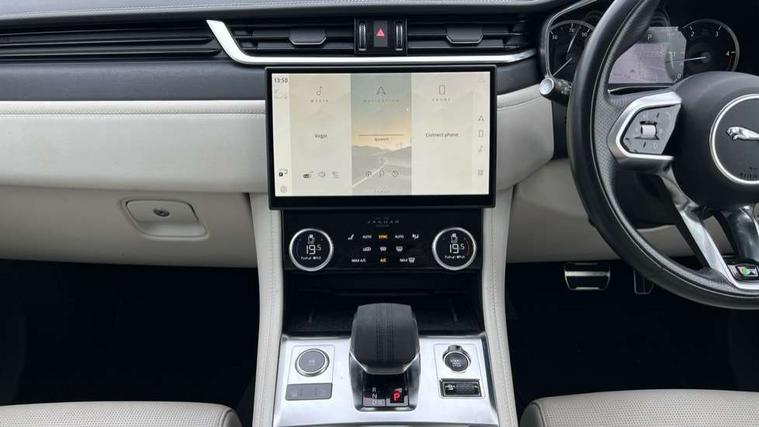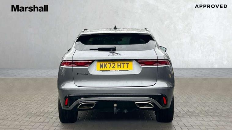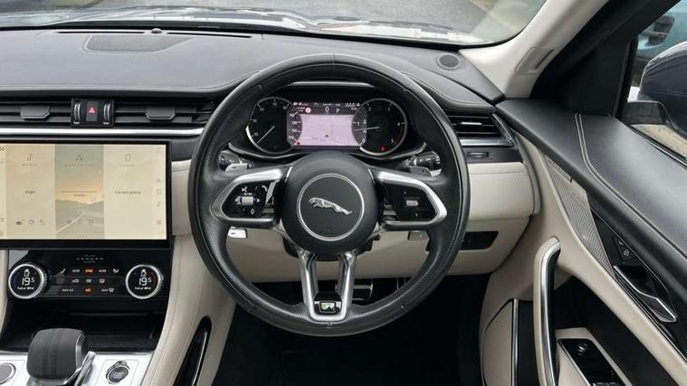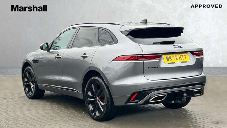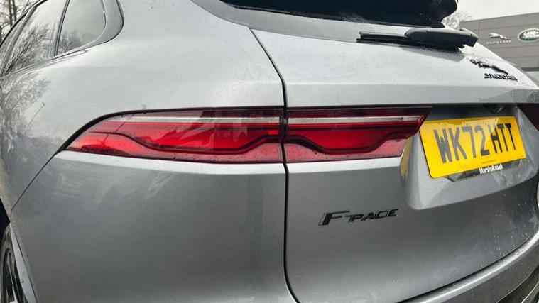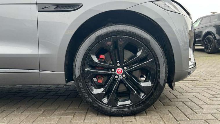 11.4" touchscreen, Adaptive cruise control with steering assist, Android Auto, Apple car play, Blind spot assist, Bluetooth connectivity, Clear exit monitor, Driver alert system, Driver condition monitor, eCall emergency call system, Eco driving style assistant, Electric power assisted steering, InControl remote, Jaguar Toggle shift selector, Lane departure warning system, Lane keep assist, Outside temperature gauge, Personalisation profile management, Pivi pro connected navigation system with app interface and media storage, Pro services and wifi hotspot, Push button starter, Rear collision monitor, Rear traffic monitor, Service interval indicator, Speed proportional steering, Start up sequence with movement in dials and lighting, Traffic sign recognition with adaptive speed limiter, Trip computer, Voice control system, 8 speed automatic transmission, Adaptive dynamics, All terrain progress control, All Wheel Drive (AWD), Configurable dynamics, Open differential with torque vectoring by braking, AM/FM radio, Bluetooth streaming, DAB Radio (Digital Audio Broadcasting), Dynamic volume control, InControl apps, InControl protect, iPod integration, 3 flash lane change indicators, Animated directional indicators, Approach Illumination, Auto dimming rear view mirror, Automatic headlights, Body colour door mirrors, Electric heated/power fold memory door mirrors with approach lights and auto dimming driver side, Electric windows with one touch open/close and anti trap, F-Pace and R Dynamic badge, Green tinted glass, Heated front windscreen + heated washer jets, Heated rear window with timer, Illuminated metal tread plates with Jaguar script, Jaguar script and leaper, LED High level third brake light, LED tail lights, Metal load space scuff plates, Non acoustic front windscreen, R Dynamic badge on side door, Rain sensor windscreen wipers, Rear fog lights, Rear metal tread plates, Rear side wing doors, Rear wiper, Trailer stability assist, Variable front intermittent wipers, 12V power point front, 3 rear headrests, 3 seat bench in 2nd row, Air distribution speed, Bright metal foot pedals, Centre armrest console, Centre console with side storage, Deletion loadspace storage rails, Door sill tread plates, Electrically adjustable steering column, Fold flat front seats, Front centre armrest with storage compartment, Front door storage space, Glovebox finisher with jaguar script, Heated steering wheel, Hooks in loadspace, Illuminated glovebox, Interior front door handles with separate locking switches, ISOFIX on outer rear seats, Jaguar sense, Luggage tie downs in loadspace, Mist sensing, Multifunction steering wheel, Overhead lighting console, Overhead stowage for sunglasses, Passive front head restraints, Premium cabin lighting, Premium carpet mats, R-Dynamic branded leather steering wheel, Rear air vents, Rear armrest with twin cupholders, Rear centre headrest, Rear door storage space, Reversible boot floor, Satin chrome gearshift paddles, Shopping bag hook, Single front passenger seat, Sunvisors with illuminated vanity mirrors, Twin front cupholders with cover, Online Pack with data plan - F-Pace, 380mm front brakes and 325mm rear brakes, 3x3 point rear seatbelts, ABS, All surface progress control (ASPC), Brake pad warning light, DSC - Dynamic Stability Control, Electric parking brake (EPB), Emergency brake assist, Front airbags with passenger seat occupant detector, Front and rear seatbelt reminder, Front side airbags, Full length side window curtain airbag, Hill launch assist, Power operated child locks, Torque vectoring brake, Traction control, Tyre pressure monitoring system, Immobiliser, Keyless entry, Keyless start, Locking wheel nuts, Perimeter alarm, Remote central locking, Valet mode,