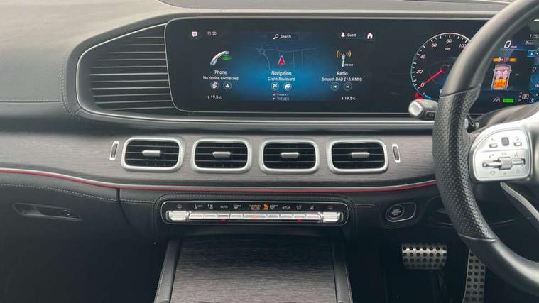 12.3 High resolution wide screen cockpit display with choice of three display styles Classic, Progressive or Sport and unique ambient lighting setting, Attention assist, Blind spot assist, Brake wear warning display, Cruise control with variable speed limiter, Direct steer speed sensitive steering, DYNAMIC SELECT with a choice of driving modes (ECO, Comfort, Sport and Individual), Easy-pack tailgate - Powered opening/closing automatically, ECO start/stop function, Geofencing, Hard-disk navigation, Hey Mercedes Voice activation, High resolution 12.3" multimedia colour display, Lane keeping assistant (LKA), Mercedes me connect including emergency call system, accident recovery, breakdown and maintenance management, Outside temperature display, Remote boot release, Reversing camera, Service indicator (ASSYST), Smartphone integration, Speed limit assist, Status display for rear seat belts in instrument cluster, Traffic Sign Assist, Traffic sign recognition including wrong way warning function and display of posted speed limits in the instrument cluster, Trip computer in multifunction display showing current fuel consumption, 3.7 kW monophase on board charger, 85 litre fuel tank, 9G TRONIC 9 speed automatic transmission, Diesel particulate filter (DPF), Incorrect fuelling protection, Lowered comfort suspension with steel springs and selective adaptive dampening with lowering by up to -15mm, Plug-in Hybrid specifics with 7.4kW AC, 60kW DC charging, Household and public charging cables, Acoustic ambient protection, Pre-entry climate control, Additional USB connection, DAB Digital radio, Dual bluetooth interface, 2 USB ports (type C), MBUX multimedia system, Adaptive brake lights, Adaptive high beam assist, Aerial for GPS, Aluminium look, illuminated running boards with rubber studs, AMG bodystyling front and rear aprons and side skirts in polished aluminium, Body colour door mirrors, Body coloured bumpers, Electric windows with one touch opening/closing and obstruction sensors, Exterior mirrors heated and electronically adjustable, Front green tinted glass, LED high performance headlamps, LED rear lights, Privacy glass - heat insulating dark tinted glass, Radiator grille with integrated star and single louvre in matt iridium silver with chrome trim, Radio aerial integrated into rear window, Rain sensing windscreen wipers, Rear wiper, Roof rail system, Top surround of side windows in polished aluminium, Visible twin pipe exhaust system integrated into bumper, Waistline in polished aluminium, 3 spoke AMG multifunction steering wheel with touch control buttons, trimmed in black nappa leather with flattened bottom section, 4 way adjustable front head restraints and 2 way rear head restraints, 4 way lumbar support, 40:20:40 split folding rear seats, AMG brushed stainless steel sports pedals with rubber studs, AMG floor mats with AMG lettering, Artico man-made leather upper dashboard with contrast topstitching, Automatic child seat recognition sensor, Black roof liner, Central stowage compartment with 12 V socket in centre console, Chrome door pins, Courtesy lights in rear grab handles with reading light functionality, Electric height/reach adjustable steering column, Front centre armrest with stowage compartment and illuminated grab handles, Gearshift paddles on steering wheel, Glove compartment - lockable, air conditioned and illuminated, Heated front seats, Interior lighting - 64 colour Ambient lighting, Seat occupancy sensor for front passenger seat, Second row three seats, Sports steering wheel, Sunvisors with illuminated vanity mirrors, Touchpad, Two zone automatic climate control, Anti theft Protection package - GLE, Memory package - GLE, Mirror package - GLE, Parking package - GLE, Active bonnet, Active braking assist, Adaptive brake system with HOLD function and brake drying in the wet, Airbags - driver and front passenger, with extended adaptivity for front passenger airbag, Airbags - sidebag for driver and front passenger with combined thorax/pelvis bag, Airbags - windowbags, Anti-lock braking system (ABS), Childproof locks manually operated for rear doors and electrically operated for rear power windows, Drivers knee airbag, Electronic parking brake, Electronic Stability Programme (ESP), ISOFIX child seat attachment points two outer rear seats, Perforated front brake discs and brake calipers with Mercedes-Benz lettering, Pre-Safe anticipatory safety system, Three point rear seat belts, Tyre pressure monitoring system and loss warning system, Warning triangle and first aid kit, Alarm system/interior protection/immobiliser, Central locking with interior switch, automatic locking and crash sensor with emergency opening function, Chrome surround in electric key, Keyless Go starting function, Dashboard and door, anthracite open pore oak wood trim, Trim - Centre console, anthracite open pore oak wood trim, 20" AMG 5 twin spoke light alloy wheels, Summer tyres with noise reducing absorber, TIREFIT with tyre inflation compressor,