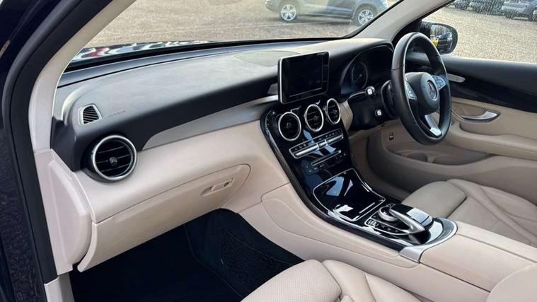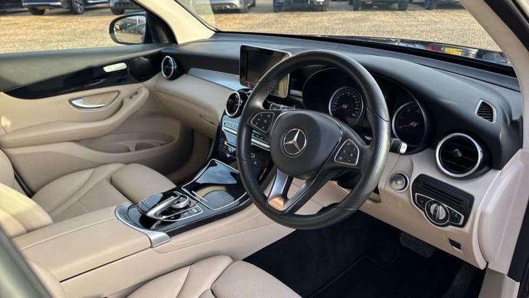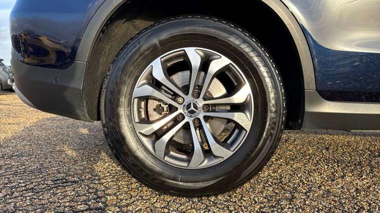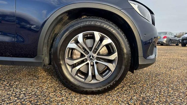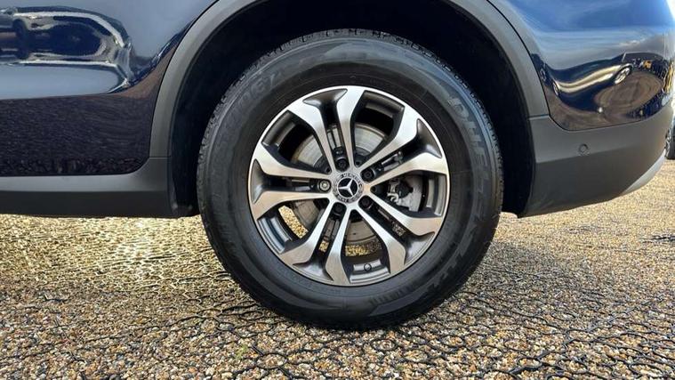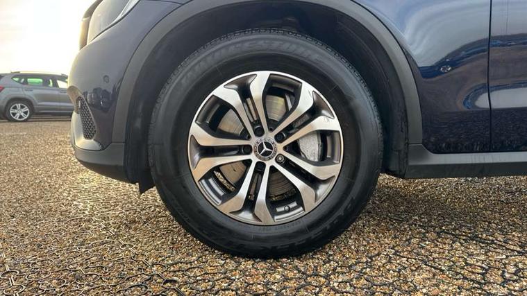 7" colour screen, Active park assist with parktronic system, Attention assist, Bluetooth interface for hands free telephone, Collision prevention assist plus, Crosswind Assist, Cruise control with speedtronic variable speed limiter, DYNAMIC SELECT with a choice of driving modes (ECO, Comfort, Sport, Sport+ and Individual), Garmin Map Pilot navigation system with SD card, touchpad and voice control, Instrument cluster with 5.5-inch TFT multi-function display, Multi function trip computer, Outside temperature gauge, Power opening/closing tailgate, Remote boot release, Reversing camera, Service indicator (ASSYST PLUS), Speed sensitive steering, Diesel particulate filter, 5 speakers, DAB Digital radio, Frontbass loudspeakers, Mercedes Audio 20 radio/single CD + telephone keypad, USB connection, Adaptive brake lights, Aerodynamic rear spoiler, Aluminium roof rails, Automatic headlights, Body colour door mirrors, Body coloured bumpers, Electric windows one touch open/close, Electrically adjustable and heated door mirrors, Heated windscreen washers, LED daytime running lights, LED rear lamps, Privacy glass (to rear of B post), Radiator grille with integral star and 2 louvres in matt iridium silver, Rain sensor windscreen wipers, Rear wiper, Tinted glass all round, 2 cupholders in front centre console, 2 way rear head restraints, 3 spoke leather steering wheel, 4 way adjustable front head restraints, 4 way electric lumbar support for driver and front passenger, 40:20:40 split folding rear seats, Auto Mercedes-Benz child seat recognition sensor, Automatic climate control, Dividing net - rear, Electric front seat height adjustment, Front door sills with Mercedes Benz lettering, Gearshift paddles, Heated front seats, Height/reach adjustable steering column, Illuminated glovebox, Multifunction steering wheel, Rear top tether child seat ISOFIX attachment, Sunvisors with illuminated vanity mirrors, Velour floormats, Easy-pack load compartment cover, Mirror pack - GLC, Storage pack - GLC, 3 rear 3 point seatbelts, ABS with Brake Assist, Active bonnet, Adaptive brake system, Child proof door locks, Drivers knee airbag, Dual stage driver/passenger airbags, Electronic parking brake, ESP with ASR, Front and rear seatbelt reminder, Front passenger seat occupancy sensor, Front side airbags, Hill hold function, Tyre pressure monitoring system, Warning triangle and first aid kit, Window airbags, Alarm system/interior protection/immobiliser, Automatic door locking, Keyless start, Remote central locking, Black high gloss trim, 17" 5 twin spoke alloy wheels tremolite grey, Tyre inflation kit,
