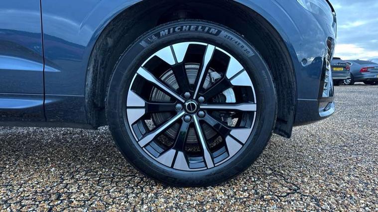 11.2" centre console touch screen, 12.3" Progressive Driver Display, 360 degree surround view parking camera with side proximity sensors, Adaptive cruise control, Adjustable steering wheel force, Android auto (Wired), Apple carplay (wired), Bluetooth handsfree system, Driver alert control with lane keeping aid, Emergency services call system, Front and rear park assist, Google Automotive Services, Intelligent speed assistance, Oncoming Lane Mitigation, PAS, Power operated tailgate with handsfree opening and closing, Service interval indicator, Speed limiter, Speed sensitive steering, Trip computer, Volvo cars services with app, Volvo on call with App, Wireless/Inductive Mobile Phone Charging, 8 speed automatic transmission with start/stop + manual change functions, Active four-C chassis + four corner adaptive damper with electronic rear air suspension, DAB Digital radio, Premium Sound by Bowers and Wilkins, dirac live, dolby pro logic II surround sound, 14 speakers/1100W output and subwoofer, Steering wheel remote infotainment controls, Active bending headlights with adaptive shadow technology, Adaptive brake lights with high level LED brake lights, Auto dimming interior + exterior mirrors, Automatic headlight levelling system, Automatic LED Headlights + Active high beam incorporating daytime running lights, Dark tinted windows for rear side windows and cargo area, Electric adjustable/heated/auto power folding door mirrors, Electric front+rear windows, Front aluminium tread plates, Headlight cleaning system, High gloss black door mirrors and window surround, High gloss black front and rear bumper decoratives, High gloss black mesh front grille with high gloss black surround, Home safe and approach lighting, Integrated roof rails in high gloss black, LED front fog lights with static cornering light function, Power glass tilt and slide panoramic sunroof with sun curtain, Puddle lights, Rain sensor with automatic windscreen wiper activation, Rear side wing doors, Rear wiper, Roof antenna, Roof spoiler, Tinted windscreen, Visible VIN plate, 12V socket in front tunnel console and luggage compartment, 3 seat bench in 2nd row, 4 Zone electronic climate control, A-pillar parking ticket holder, Air purifier particulate matter (PM) 2.5 filter, B Pillar ventilation, Bright metal luggage scuff plate, Centre console cupholders and storage, Charcoal floor mats, Front and rear courtesy lights, Front and rear door pocket illumination, Front cupholder illumination, Front footwell illumination, Front reading lights, Front seat cushion extensions, Glovebox compartment with illumination, Head restraints for all seats, Heated front seats, Heated steering wheel, Height/reach adjustable steering column, Illuminated luggage compartment, Illuminated vanity mirrors + ticket holder, Inner door release handle illumination, ISOFIX attachment on outer rear seats, Load cover, Load protection net, Multi directional lumbar support, Power driver seat with memory + exterior mirrors memory, Power folding rear headrests, Power passenger seat with memory, Rear armrest with cupholder, Rear footwell and front and rear side step illumination, Rear reading lights, Rear seat concealed storage, Single front passenger seat, Tailgate illumination and ambient door lighting, Underfloor stowage compartment, Versatile split folding rear seat - 60/40, Driver assist pack without Adaptive cruise control - XC60, 5 three point seatbelts, City safety with steering support with Pedestrian + cyclist + front collision warning with full auto brake and rear auto brake, Drivers knee airbag, Dual stage driver/passenger airbags, Electronic parking brake with auto hold, First aid kit, Front seats SIPS airbags, Hill descent control - Off-road drive mode, Hill start assist, IC (Inflatable Curtains) - Full Length, Passenger airbag cut-off device, Power child locks on rear doors, Run off Road Mitigation, Run off Road Protection, Seatbelt reminder and pretensioners, SIPS (Side Impact Protection System), Slippery road and hazard light alert, Stability and Traction Control with Spin control, Engine Drag Control and Corner Traction Control, Tyre pressure monitoring system, Vehicle deceleration control with Anti-lock Brake System, Electronic Brake Distribution and Emergency Brake Assist, Warning triangle, WHIPS whiplash protection system - front, Anti-theft alarm including immobiliser/volume sensor + level sensor, Key integrated remote control central locking + fuel flap with deadlocking system and auto open/close power windows, Keyless Drive (includes Keyless Entry and Keyless Start), Locking wheel nuts, Private locking for tailgate, Tailored instrument panel with contrast stitching, Summer tyres,