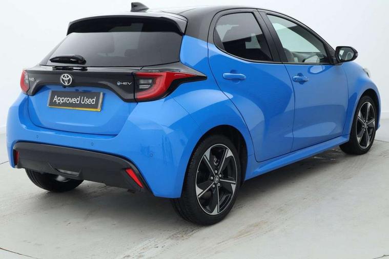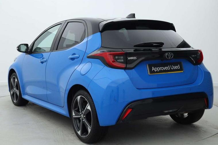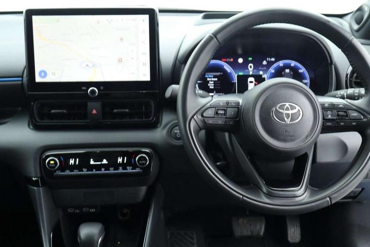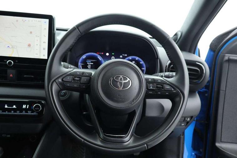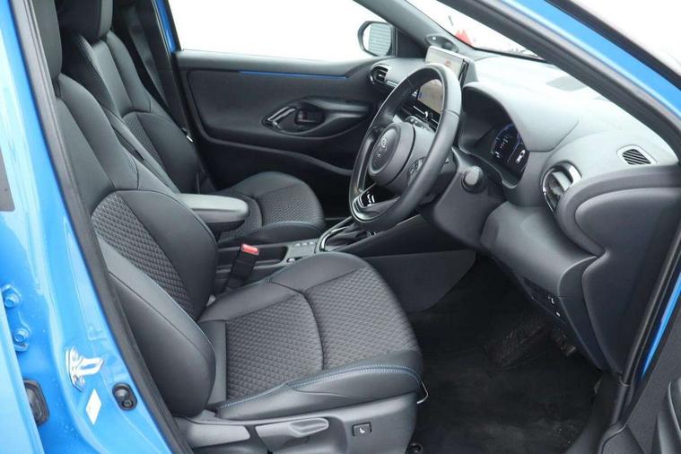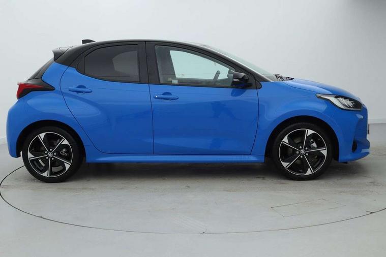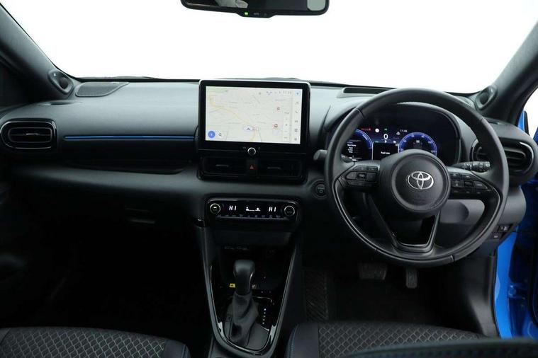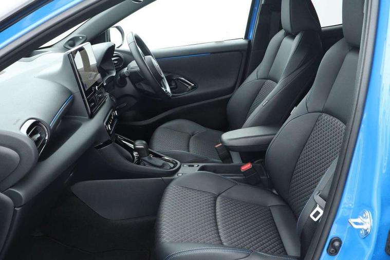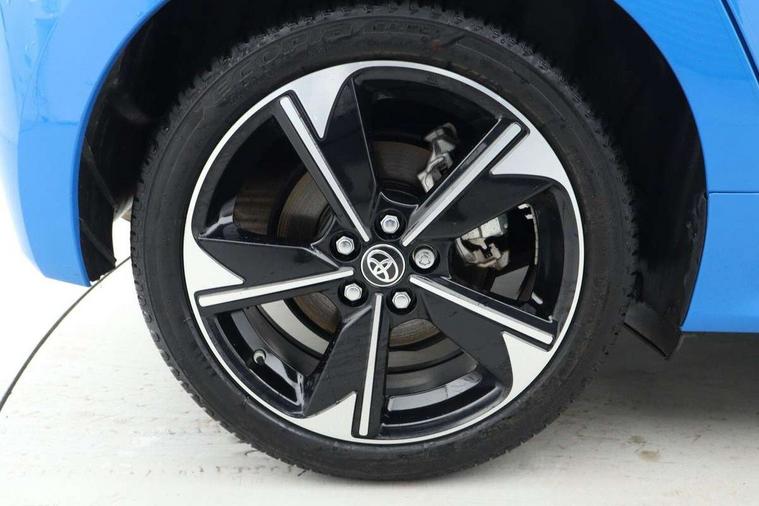 12.3" Digital Combimeter, Adaptive cruise control, Adjustable speed limit with speed warning, Bluetooth connectivity, Colour binocular inspired displays with digital speedometer, E-call, Electric power steering, Head up Display, Hybrid energy display, Multi information display switches on steering wheel, Reversing camera, Tailgate, Voice recognition, Wireless charger, Vehicle Stability Control (VSC), 10.5" Toyota smart connect multimedia with wireless smartphone integration incl apple car play and cloud Navigation, 6 speakers, 8 Speakers, JBL speaker system, Toyota Touch 3 system with DAB radio, USB connection, Acoustic windscreen glass, Auto windscreen wipers, Automatic headlights, Body coloured door mirrors, Dark chrome lower meshed front grille, Electric adjustable heated door mirrors, Follow me home headlights, Front auto power windows with anti jam protection, Full LED rear lights, LED daytime running lights, LED front fog lights, LED front light guide, LED Headlights, LED High mounted stop lamp, LED Indicators, LED rear light guide, Manual headlight levelling, Painted chequered front grille with hot stamp in mesh design, Rain sensor, Rear auto power windows with anti jam protection, Rear privacy glass, Rear side wing doors, Rear spoiler, Rear wiper, Shark fin antenna, Turning signal integrated indicators in door mirrors, Variable front intermittent wipers, 3 adjustable rear headrests, 3 seat bench in 2nd row, 3 spoke leather steering wheel, 60/40 split folding rear seat, Active headrests, Adjustable boot height, Black roof lining, Coat hooks in rear grab handles, Cup holders (2 front & door), Data Communication Module (DCM) connected services, Dual zone automatic air conditioning, Front armrest, Front sport seats, Glovebox, Height adjustable driver's seat, Height adjustable passenger seat, Isofix seat fixing, Leather gearshift, Map pockets on the backs of the front seats, Nanoe-X air purifier, Partial leather upholstery, Pollen filter, Shopping bag hooks, Single front passenger seat, Tilt/telescopic steering column, Safety pack - Yaris, 3 point seatbelts on all rear seats, ABS+EBD+Brake assist, Electronic parking brake, Emergency brake light system (EBS), Front passenger airbag on/off switch, Front seatbelt reminder, Hill start assist control (HAC), Rear child proof door locks, Rear seat belt reminder, Supplemental Restraint System (SRS) 8 airbags: Driver & passenger's airbags, dual side curtain airbags, side impact airbags, front centre airbag, Toyota Safety Sense 3 with over the air updates, Tyre pressure warning system, 2x Master key, Alarm/immobiliser, Keyless smart entry with push button start, Remote AC via MyT, Remote locking via MyT, Remote powered central double locking doors, Smart digital key, Piano black interior trim, Soft touch instrument panel, 17" Black Machined-face, 5 double spoke alloys wheels, Space saver spare wheel,