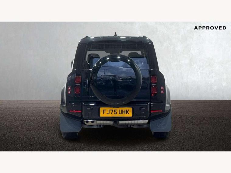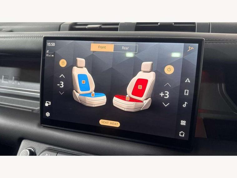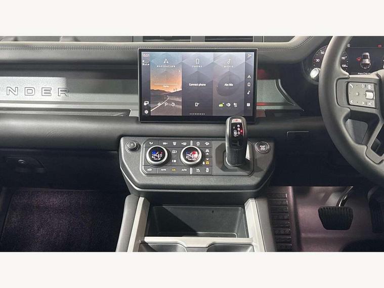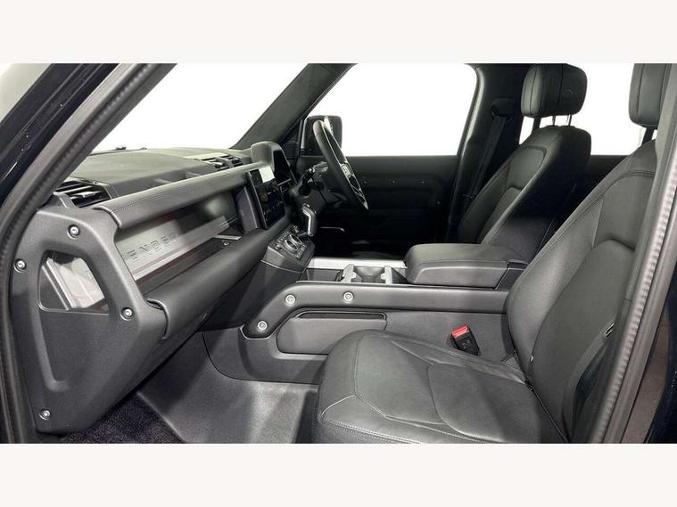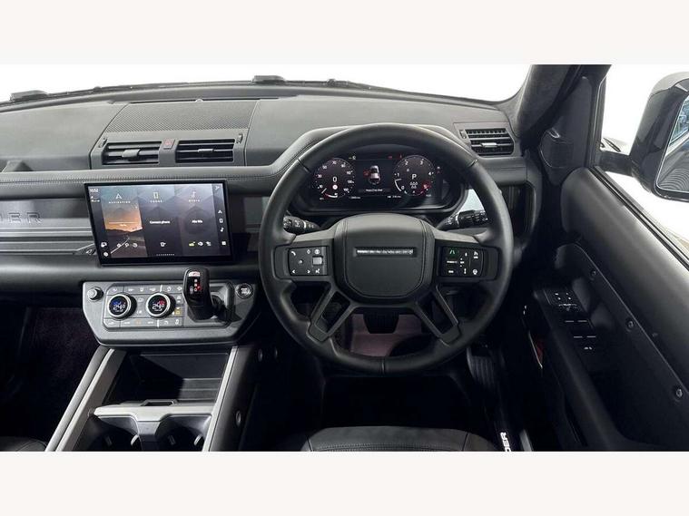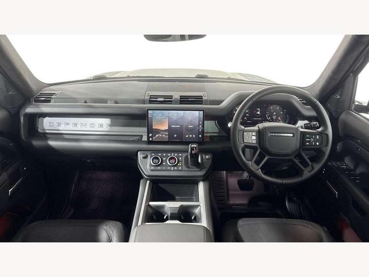 1 x USB-C (power only) & 1 x USB-C (power & data) in Row 1, 2 x USB-C in Row 2, 11.4" touchscreen, 2 x USB-C in Row 3, 360 degree parking aid, 3D Surround Camera with 360 View, 180 Rear View, Front Traffic Detection, Forward Vehicle Guidance, Tow Hitch Assist and clear sight Ground View, Adaptive cruise control, Android Auto, Apple CarPlay, Blind spot assist, Bluetooth system, Brake pad wear indicator, Clear exit monitor, Connected navigation pro, Driver condition monitor, Electric power assisted steering (EPAS), Interactive driver display, Lane keep assist, Push button start, Rear collision monitor, Rear traffic monitor, Traffic sign recognition with adaptive speed limiter, Trip computer, Wireless device charging, 8 speed automatic transmission, All wheel drive system, Twin speed transfer box, DAB Radio (Digital Audio Broadcasting), Meridian 700w surround sound audio system with 15 speakers, Pivi pro connected, Automatic headlight levelling, Automatic headlights, Black exposed rear recovery eyes, Body coloured bonnet, Centre high mounted stop light, Electric heated/power fold door mirrors with approach lights and auto dimming driver side, Electric windows with one touch open/close and anti-trap, Follow me home lighting, Front fog lights, Heated rear window with timer, Heated windscreen, Illuminated metal treadplates with brand name script, LED tail lights, Matrix LED headlights with signature DRL, Privacy glass, Puddle lights, Rain sensing windscreen wipers, Rear fog lights, Rear side wing doors, Rear wiper, Side hinged tailgate, Sliding panoramic roof, Standard tail door, Trailer stability assist, X-Dynamic badge, 12V power socket in loadspace, 2 seat bench in 3rd row, 3 seat bench in 2nd row, Alpine lights, Configurable cabin lighting, Durable rubber cabin flooring, Durable rubber loadspace flooring, Electric reach + rake adjustable steering column, Electrically adjustable steering column, Extended leather upgrade, Footwell lights, Front head restraints, Front passenger isofix child seat attachment, Heated steering wheel, Loadspace cover, Loadspace Hook, Multifunction steering wheel, No flat load floor storage, Overhead stowage for sunglasses, Rear headrests, Rear ISOFIX, Rear reading lights, Single front passenger seat, Soft close tail door, Storage glovebox, Sunvisors with illuminated vanity mirrors, Twin front cupholders, Air suspension pack - Defender SE/HSE/X-Dynamic SE/X-Dynamic HSE, Non-smoker package, Online pack with data plan - Defender, 7 three point seatbelts, ABS, Brake hold function, Cornering brake control (CBC), Customer configurable autolock, Driver and passenger airbags, DSC - Dynamic Stability Control, EBD - Electronic brakeforce distribution, Electric parking brake (EPB), Emergency brake assist, Emergency braking, ESP + traction control, Front airbags with passenger seat occupant detector, HDC - Hill descent control, Hill launch assist, Low traction launch, Power operated child locks, Remote for (e-Call, Optimised assistance call, InControl app, Climate, beep and flash and door), RSC - Roll stability control, Seat belt reminder, TPMS (Tyre pressure monitoring system), Alarm, Immobiliser, Intrusion sensor, Keyless entry, Locking wheel nuts, Secure tracker pro,