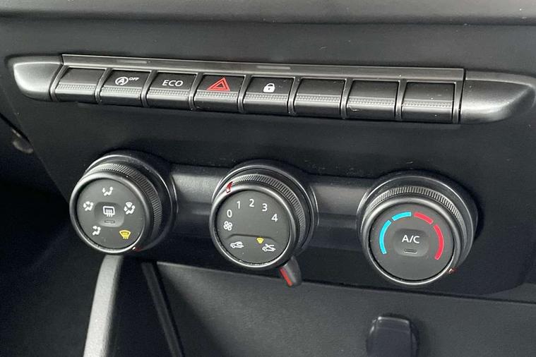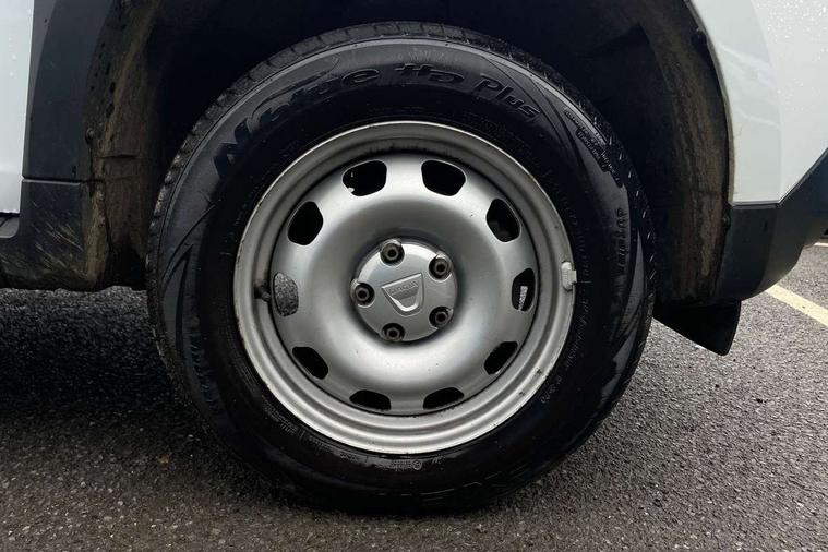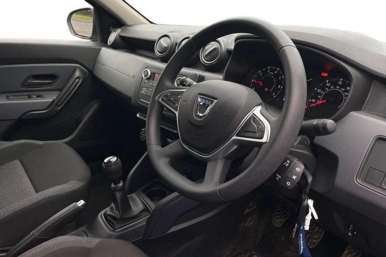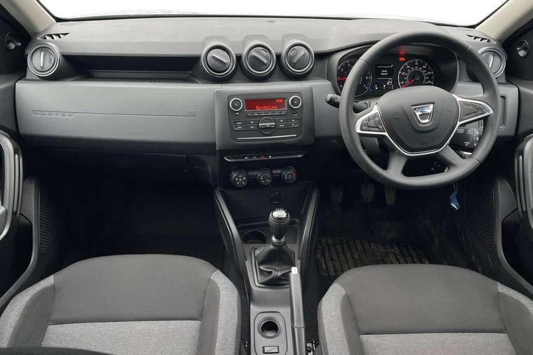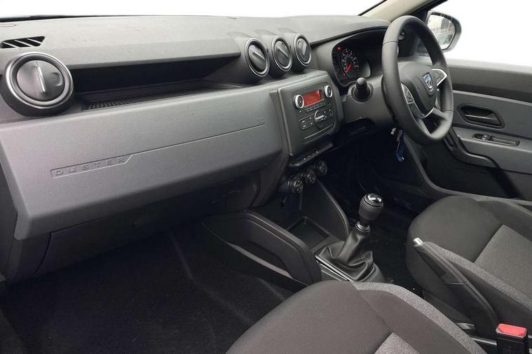 4x4 monitor with altimeter, Compass functional at 0km/h, Cruise control and speed limiter, Dacia instrument cluster, eCall emergency system, Eco mode, Electric power assisted steering, On board computer, odometer, trip computer, average fuel consumption, average speed, service indicator, outside temperature gauge, Rev counter, Stop/start system, Dacia plug and radio/MP3/USB/bluetooth/DAB/steering wheel control, 3 speed windscreen wipers, Black door handles, Black door mirrors, Black longitudinal roof bars with Duster inscription, Black side sills, Black/satin chrome tailgate trim with Duster inscription in black background and lettering, Dusk sensor, Electric front windows, Front and rear body coloured bumpers, Heated rear window, High level third rear brake light, LED automatically switched on - In main headlights, LED daytime running lights, Manual rear windows, Manually adjustable door mirrors, Rain sensor, Rear side wing doors, Rear spoiler, Rear wash/wipe, Tinted windows, Underbody protection skid plates, Y shaped LED headlights with rear LED lights, 3 rear height adjustable headrests, 3 seat bench in 2nd row, Backlighted steering wheel buttons, Boot light, Charcoal grey interior door handles, Fabric upholstery, Front head restraints, Gear shift indicator, Height adjustable front and rear headrests, Height and depth adjustable steering wheel, Isofix points for child seats in both outer rear seats, Manual air conditioning, One split folding complete rear seatback bench, Single front passenger seat, 3x3 point rear seatbelts, ABS and Emergency brake assist, ASR traction control with Electronic stability control, Child locks on rear doors, Door open visual and audible warning, Driver airbag, Driver and passenger seatbelt not fastened - visual and audible warning, EBD - Electronic brakeforce distribution, Front passenger airbag, Front passenger airbag deactivation, Front seatbelt pretensioners, Front side airbags, Height adjustable front seatbelts, Hill start assist, Tyre pressure monitor, Remote central locking, Thatcham approved engine immobiliser, Dark carbon central console surround, Matt black central console fascia, Satin chrome air vent surround, 16" steel wheels, Tyre inflation kit,