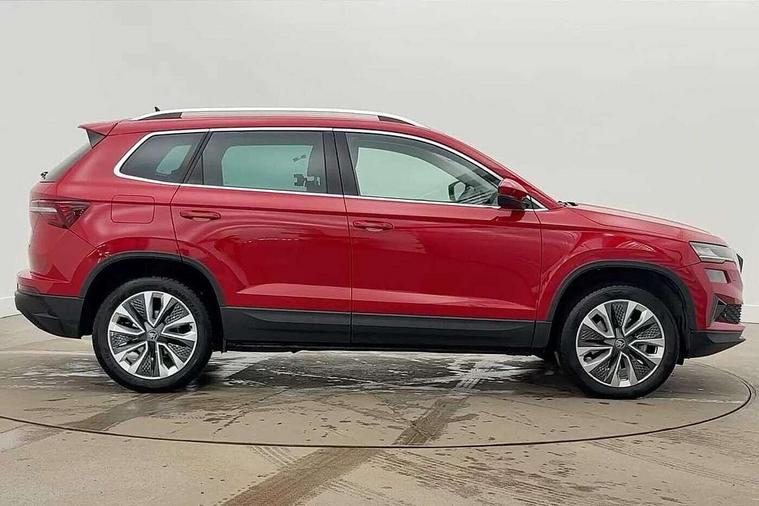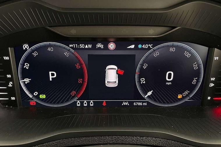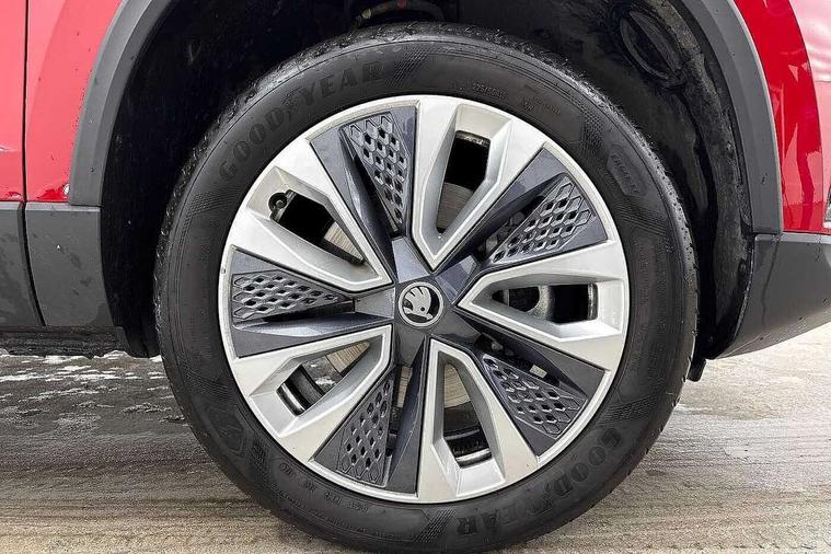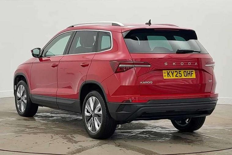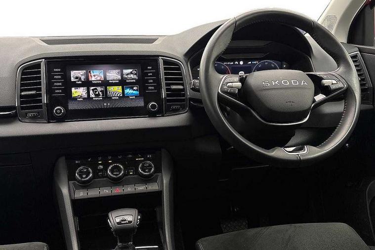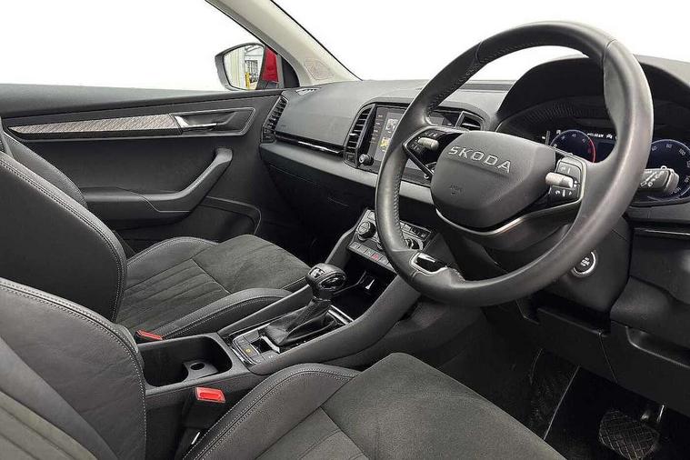 8" Digital display, Advanced driver attention and drowsiness monitor, Emergency services call system, Outside temperature gauge, Sensor for driver assistance systems, Service interval indicator, SmartLink wireless for Apple and wired for Android, Start/stop system with regenerative braking, USB C Port x 2 in front centre console, Virtual Cockpit - 10.25" digital display, Wireless smartphone charging, Diesel particulate filter, DAB radio with Bluetooth, USB connection, Acoustic glass, Aero front windscreen wipers with intermittent function, Auto dimming rear view mirror with light and rain sensors, Black electric window control buttons, Body colour door mirrors and handles, Electric front and rear windows with child proof lock, Heated rear windscreen, LED daytime running lights, LED rear lights with high functionality welcome effect and dynamic indicators, Light assistant (coming/leaving home/tunnel light), Plastic scuff plates in door apertures, Privacy glass, Rear side wing doors, Rear spoiler, Rear window wiper with washer system and intermittent control, Safety reflectors on front doors, Third brake light, 1.5 litre bottle holders in driver and front passenger door panels, 12V socket in boot, 12v socket in front centre armrest with storage compartment and rear air vents, 2 spoke leather heated multifunction steering wheel with DSG paddles, 2 x Tablet holder, 3 rear height adjustable headrests, 3 seat bench in 2nd row, 4 foldable roof handles with rear coat hooks, Black floor carpet, Chrome inner door handles, Foldable hooks in the boot, Front head restraints, Height adjustable front three point seats belts with tensioners, Height/reach adjust steering wheel, Ice scraper, Illuminated glovebox, Illuminated luggage compartment, Interior noise suppression, Isofix child seat preparation for front passenger seat, Isofix child seat preparation outer rear, Manual lumbar support for front seats, Pearl grey interior ceiling, Pen holder, Pollen filter, Rear boot cover, Rear reading lights, Rubbish bin door, Safety vest holder, Single front passenger seat, Storage box in upper central dashboard closed, Sunvisors with illuminated vanity mirrors, Textile floor mats, Ticket holder, Design Pack - Karoq, Non Smokers pack, Parking pack - Karoq, Automatic door unlocking in case of crash, Automatic fuel cut off in case of crash, Driver airbag, Electronic parking brake with auto hold function, Emergency rear braking signal, ESC (incl. ABS+MSR+ASR+EDS+HBA+DSR+RBS+MKB), Front side airbags, Head airbags, Hill hold control, Knee airbags, Passenger airbag with switch-off function, Pedestrian monitor, Seatbelt reminder signalisation and pretensioner for all seats, Three point seatbelts rear, Two tone horn, Tyre pressure monitor, Alarm with interior monitoring, back up horn and tilt sensor with safe function, Electronic engine immobiliser, Keyless entry and start/stop, Remote central locking with 2 remote folding keys, Black centre console, Chrome framed air vents, Satin black dashboard, Anti-theft wheel bolts protection, Breakdown and tool kit,