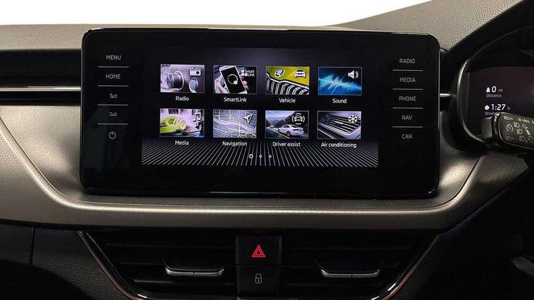 Amundsen satellite navigation with 9.2" glass colour touchscreen with virtual cockpit, web radio, Android Auto, Bluetooth system, Colour multifunction trip computer, eCall emergency system, PAS, Rain and light assist with auto dimming rear view mirror, Rear view camera, Speed limiter, Tailgate, Traffic sign recognition, Virtual cockpit, Voice control system, Wireless SmartLink for Apple Car Play, 2 USB - C ports, 8 loudspeakers, DAB Digital radio, 3rd brake light, Automatic headlamp activation with Coming home and Leaving home feature, Body colour door mirrors and handles, Chrome grille surround, Dimming rear view mirror with black frame, Electric folding door mirrors, Electrically adjustable and heated door mirrors, Front and rear electric windows, Front fog lights with cornering function, LED rear tail lights with dynamic indicators, Privacy glass, Rear side wing doors, Rear wiper, Tinted windows, 12V Accessory socket in centre console, 3 seat bench in 2nd row, Chrome inner door handles, Chrome on gear and handbrake lever, Chrome strip on the dash and door panel, Dual zone climate control, Front head restraints, Glasses storage in roof liner, Instrument cluster with chrome painted decor ring, ISOFIX for rear passenger seat, Leather gearknob and handbrake lever, Manual lumbar support for front seats, Net in centre console, Reading lights for driver and front passenger, Single front passenger seat, Sun visor with make up mirror for front passenger, Textile floor mats, Third rear headrest, Umbrella, 3x3 point rear seatbelts, Curtain airbags, Emergency call and proactive services, Front head and side airbags, Hill hold control, Manual rear child locks, One tone horn, Passenger airbag switch off function, Seat belt reminder for all seats, Alarm, Anti-theft wheel bolts, Keyless entry with start/stop button, Remote central locking with 2 remote folding keys, SAFE function for remote central locking, Latice grey decorative insert with copper hot stamping, Temporary space saver wheel,