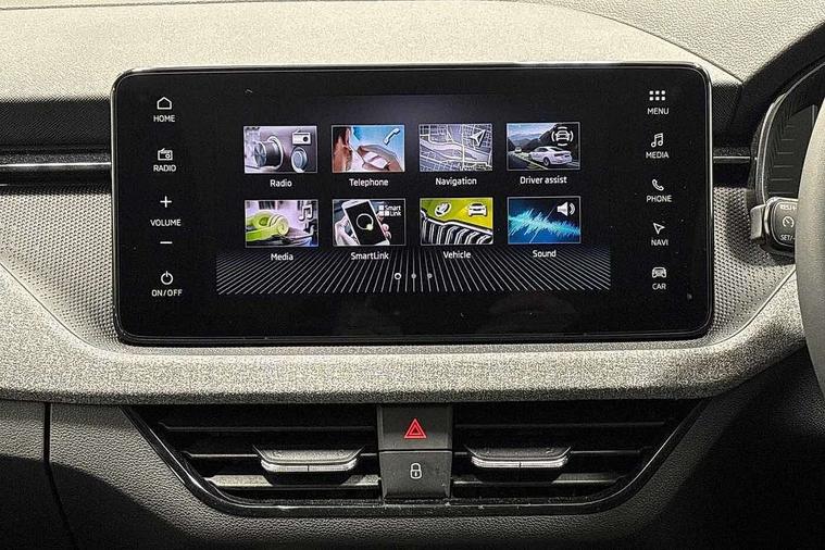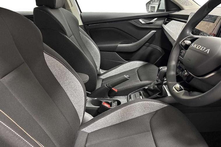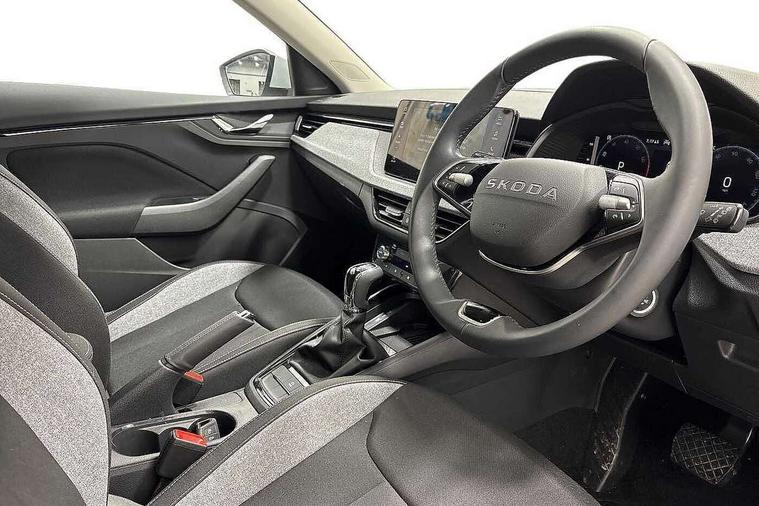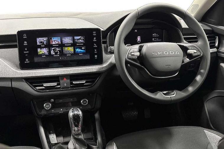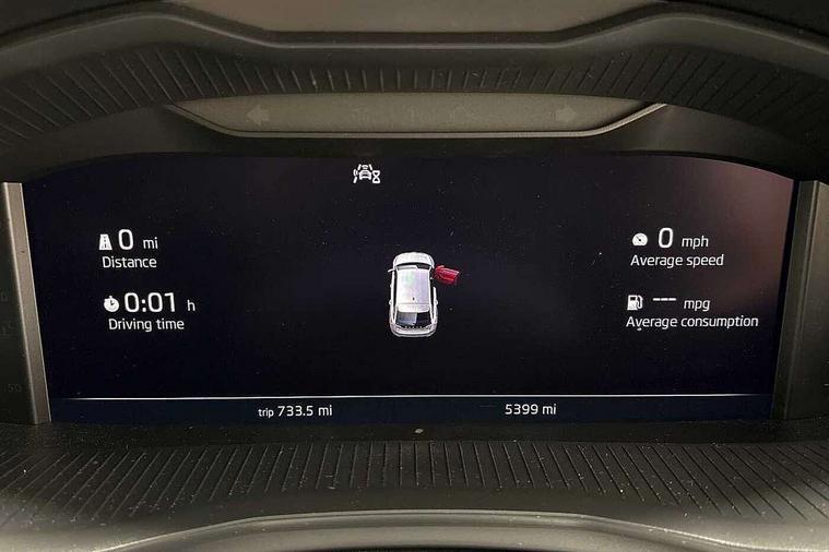 Advanced driver attention and drowsiness monitor, Bluetooth, e-Call (emergency call), Front assist system, PAS, Rear parking sensors, Rear view camera, Speed limiter, Tailgate, Traffic sign recognition, Virtual Cockpit - 10.25" digital display, Voice control system, Wireless smartlink, 4 USB C ports, 8 Speakers, 9.2" Skoda navigation display, DAB radio, Auto dimming rear view mirror, Automatic headlamp activation with Coming home and Leaving home feature, Automatic high/low beam, Body colour bumpers, Body colour door mirrors and handles, Chrome moulding around grille, Front and rear electric windows, Full LED headlights, Heated rear window, LED 3rd brake light, LED brake lights, LED daytime running lights, LED front turning lights, LED high beam, LED low beam, LED taillights, Rear LED fog light, Rear side wing doors, Rear wiper, Tinted windows, Unique dark chrome design logo on alloy wheels, 12V socket in luggage compartment, 3 seat bench in 2nd row, Black / Grey armrest stitching, Black hotstamping, Cargo elements, Chrome inner door handles, Door inserts in satin black, Driver and passenger sun visors with vanity mirror, Dual zone climate control, Front and rear roof lights, Front centre armrest, Front head restraints, Glasses storage in roof liner, Height adjustable driver seat, Height adjustable passenger seat, Ice scraper, Illuminated glove compartment, Inner circulation control with pollen filter, ISOFIX for front passenger seat, Isofix preparation for back seats, Leather gearknob and handbrake lever, Loft cloth upholstery, Luggage net under rear parcel shelf, Manual lumbar support for front seats, Net package and top tether hooks in boot space, Pearl grey ceiling, Pocket on the back of both front seats, incl. mobile phone pockets, Single front passenger seat, Skoda lettering on steering wheel, Textile floor mats, Third rear headrest, Ticket holder, Top tether for front passenger seat, Umbrella in driver's door, 3x3 point rear seatbelts, ABS, Child locks, Curtain airbags and front side airbags, Disc brakes, Driver and front passenger airbags, ESP, Hill hold control, Manual leather parking brake, One tone horn, Passenger airbag switch off function, Seatbelt reminder for driver and front passenger, Tyre pressure monitoring system, Anti theft alarm system with interior monitoring, backup horn and towing protection, Anti-theft wheel bolts, Remote central locking with 2 remote folding keys, SAFE function for remote central locking, Decord pad, door inserts Kota uni,