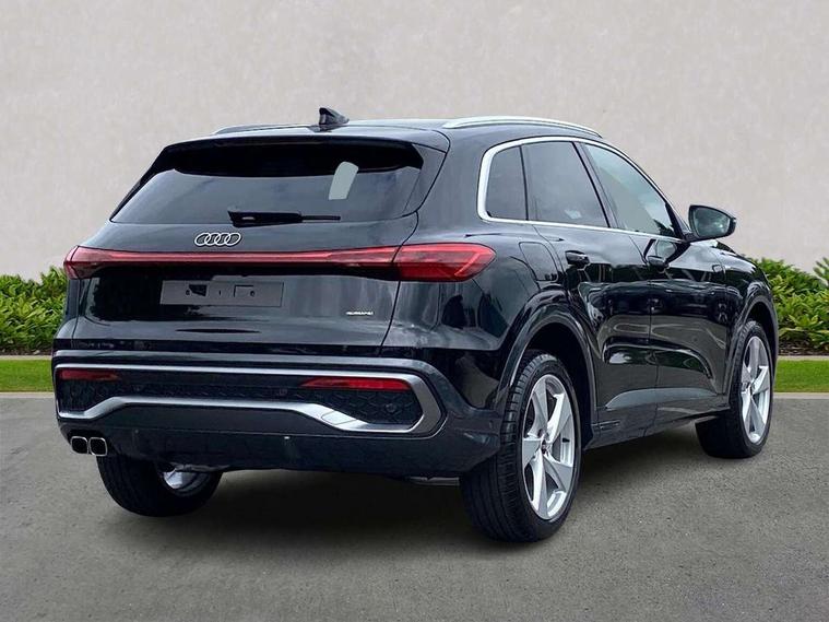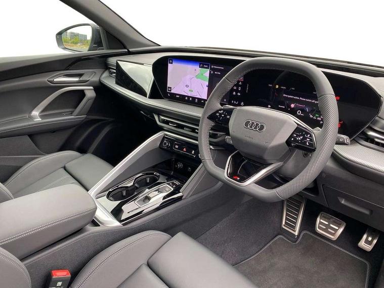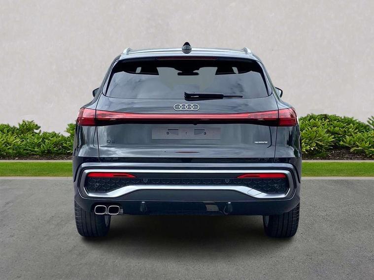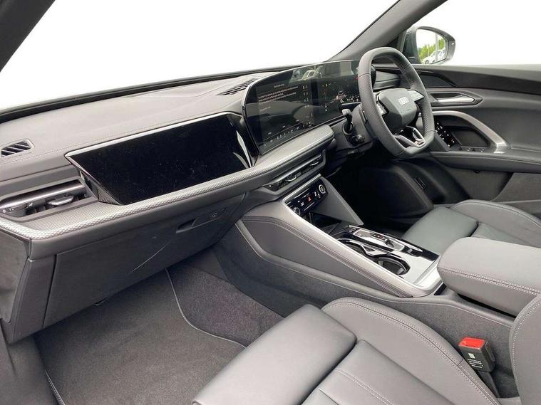 Adaptive cruise control, Advanced driver attention alert, Audi application store, Audi connect emergency call and service, Audi drive select, Audi smartphone interface, Audi virtual cockpit plus with 11.9" OLED colour display, Camera based traffic sign recognition, Fatigue monitor, Front cross traffic intersection assist, Lane departure warning system, MMI navigation plus with high resolution 14.5" OLED touchscreen colour display, Park assist plus, Parking system plus with 360 display, PAS, Reversing camera, Swerve assist and turn assist, Traffic sign based speed limiter, 2 USB-C ports in both the front and rear, Audi sound system impressive sound with 10 loudspeakers including centre speaker and subwoofer, 6-channel amplifier with a total output of 180 watts, DAB Digital radio, Smartphone compartment with wireless charging, Aluminium roof rails, Auto dimming rear view mirror, Body coloured door mirrors, Coming/leaving home lighting function, Electrically adjustable heated and folding + automatically dimming exterior mirrors, Front and rear electric windows, Front door sill trims with aluminium inlays, illuminated with 'S' logo, Headlight cleaning system, Heated rear window, High beam assist, High gloss window surrounds, Inlay and front air inlets in matt anthracite chrome, LED headlights plus incl. digital DRL, dynamic coming and leaving home function with turning/all weather/motorway/manouevring and intersection lights, LED rear lights pro incl. dynamic rear indicators and illuminated light strip with animated coming and leaving home function, Logo projection light in exterior mirrors, Privacy glass, Projection light for rear window, Radiator grille in phantom black, Rear and side windows with heat insulating glass, Rear honeycombe grille in matt black with inlay in matt anthracite chrome, Rear side wing doors, Rear wash/wipe, Red S line rhombus badging on rear, S line bumpers in contrasting Volcano grey metallic paint finish, Towbar preparation, Windscreen with acoustic glazing, 3 rear head restraints, 3 seat bench in 2nd row, 3 spoke leather steering wheel with multi-function buttons with touch control, flattened on top and bottom, with S badging and contrast stitching, 40:20:40 split folding rear seat bench with centre armrest and cup holders, Comfort centre armrest, Deluxe 3 zone electronic climate control, Front and rear floor mats, Front seats with manual adjustment for position and 4-way electric lumbar support, Front sport seats with integrated head reastrains, Headlining in black cloth, Heated front seats, i-Size child seat mounting on the front passenger side and i-Size and top tether on the outer rear seats, Interior trim in aluminium look, Luggage compartment lid, electrically opening and closing, Manual steering column adjustment, Single front passenger seat, Softwrap in leatherette, Stainless steel pedals and footrest, Steering wheel grips in perforated leather and shift paddles, Ambient lighting package plus - Q5, Storage and luggage compartment pack - Q5, ABS, Acoustic vehicle alerting system, Driver and front passenger airbag with passenger airbag deactivation, Electric child safety locks, First aid kit with warning triangle and high visibility vests, Front emergency brake assist, Front side airbags with head airbag system and front interaction airbag, Hill hold assist, Rear seat occupant reminder, Tyre pressure loss indicator, Anti theft alarm, Anti-theft wheel bolts, Remote control key with SAFELOCK and keyless go, Accent surfaces and control buttons in gloss black, Anthracite matt brushed aluminium inlays with linear embossing, Black dashboard with contrast stitching, Upper and lower interior elements in artificial leather, Tyre repair kit,