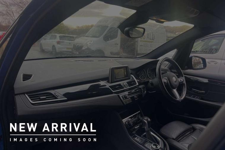 Attentiveness assist, Automatic tailgate operation, BMW Online services, BMW Teleservices, Check control system, Door/boot open warning light, Forward collision warning, Lights on warning, Oil temperature gauge, On board computer, Outside temperature display, Personal Profile, Service interval indicator, Speed limiter, Stop/start button, Diesel particulate filter, Drive Performance Control, Electronic differential lock, Sports function on gearbox with steering wheel mounted gearshift paddles, Auxiliary point for auxiliary devices, Bluetooth audio streaming, BMW professional radio/CD/MP3, DAB Digital radio, Body colour bumpers, Body colour door handles, Body colour door mirrors, Body colour roof mouldings, Chrome exhaust tailpipe, Chrome kidney grille with black vertical slats, Door mirror integrated indicators, Door sill finishers, Electric adjustable heated door mirrors, Electric front/rear windows with one touch/auto up/down, Follow me home headlights, Front fog lights, Heat insulating tinted glass, Heated windscreen washer jets, High beam assistant, LED daytime running lights, M aerodynamic body styling, Rain sensor including auto headlights activation, Rear wiper, Welcome lighting, 12V sockets in front centre console and passenger footwell, 3 rear headrests, 3 spoke leather M sport multifunction sports steering wheel, 4 grab handles, 40:20:40 split folding rear bench seat, Anthracite headlining, Anthracite Velour floor mats, Dakota leather upholstery, Dual zone automatic air conditioning, Front armrest, Front head restraints, Front sports seats with electric side bolster adjustment, Front/rear armrests within door panels, Illuminated glovebox, Isofix front passenger and rear seat preparation, Luggage compartment lighting, Reach + rake adjustable steering column, Rear centre armrest, Sliding rear seats, Sunvisors, Extended storage pack - 2 Series Active/Gran Tourer, 3 point seatbelts on all seats, ABS, BMW emergency call, Brake assist function, Childproof rear door locks, Collision mitigation braking system, Crash Sensor - activates hazard/interior lighting + unlocks doors, Driver/Front Passenger airbags, DSC+, Dynamic Traction Control - DTC, Front and rear curtain airbags, Front passenger airbag deactivation, Front seatbelt force limiters, Front seatbelt pretensioner, Front side airbags, Hill start assist, Seatbelt warning, Side impact protection, Tyre pressure monitoring system, Warning triangle and first aid kit, Drive away door locking, Electronic immobiliser, Key integrated remote control central locking, Locking wheel bolts, Remote control Thatcham category 1 alarm,