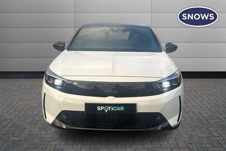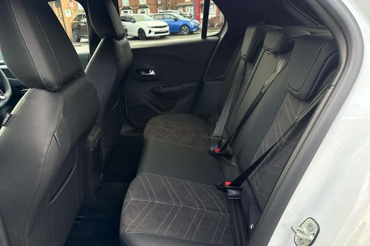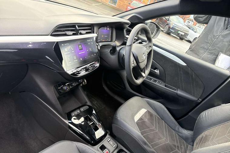 180 degree panoramic rear view camera, 2D/3D street level mapping, 7 inch digital instrument cluster display, Adaptive cruise control with intelligent speed limiter, Auto tele unit 3S vehicle communication system, Breakdown call (b-call), Central facia display with digital clock, outside air temperature and audio information, Drive modes (sport, normal, eco), Driver drowsiness alert system, E-call, Engine oil life indicator, Enhanced traffic sign recognition, European coverage, Extended speed sign recognition, Front and rear parking sensors, Front camera system, Instrumentation - Speedometer, rev counter, low fuel gauge warning light + water temperature gauge warning light, Lane departure warning, Lane keep assist, Lane positioning assist, Lights on audible warning, Live nav plus-Tom Tom, Real time traffic, parking prices, weather forecast, fuel prices, search for changing station, road safety alerts and speedcam alerts, MAP OTA updates, Multi function trip computer, POI (search), Pre conditioning of vehicle temperature, RDS with traffic programme, Remote check of battery level programming and charge management, Service indicator, Side blind spot alert, Smartphone projection, Speed sensitive power steering, Start/stop system, Vauxhall connect box, Vehicle status and information, Voice recognition, Wireless Apple CarPlay/Android Auto, Electronic returnless fuel system, Petrol Particulate Filter, Under body shield for aero, AM/FM stereo radio, Bluetooth A2DP audio streaming function (Advanced audio distribuition profile), DAB Digital radio, Multimedia Navi with 10-inch touchscreen, Rear USB port, Six speakers, Steering wheel audio, phone and cruise controls, USB type C port, 3rd brake light, Automatic headlamp levelling, Automatic headlight control system, Black door mirror housings, Black Griffin logo and vizor frame, Black lower side window mouldings, Body colour door handles, Body colour front and rear bumpers, Bonnet/headlight/wiper structure, Corsa lettering in tailgate, Dark tinted rear side windows + tailgate window, Electrically adjustable and heated door mirrors, Electrically folding door mirrors, Electrically operated front and rear windows with safety auto reverse and one touch up/down facility, Electrochromic automatic anti-dazzle rear view mirror, Glazed tailgate and heated rear window with wash/wipe facility, Hazard warning lights, Headlamps for left side traffic, High beam assist, High gloss black finish B pillar, High gloss black honeycomb lower grille with black badging, Intelli-Lux Matrix LED Headlights, LED daytime running lights, LED front fog lights, LED tail lamp, Rain sensitive windscreen wipers, Rear fog lamp, Rear reversing lights, Rear side wing doors, Rear wiper, Shark fin aerial, Solar heat absorbing windscreen and windows, Sports front and rear body styling for upper and lower bumper design, Two speed windscreen wipers with variable intermittent wipe, Windscreen and side window demist vents, 12V power sockets, 3 bench rear seats in 2nd row, 4 speed fan with illuminated controls, 6 way manual adjustable co-driver seat height up/down, reach fore/aft, backrest upright/recline, 6 way manual adjustable driver seat with massage function height up/down, reach fore/aft, backrest upright/recline, 60/40 split folding rear seat, Alloy effect sport pedals, Black headliner, Cabin particulate filter - removes dust, airborne particles and pollen, Comfort front seats, Driver's seat lumbar support, Driver/passenger sunvisors with vanity mirrors + covers, Electronic climate control (ECC), Flat bottomed steering wheel, Four adjustable facia vents, Front centre armrest with storage, Front cupholder, Front headrests, Height adjustable head restraints, Illuminated glovebox with lid, Interior courtesy light, Internal chrome door handles, LED ambient lighting, LED boot light, Polyurethane gear knob/lever, Reach and rake adjustable steering column, Rear cupholder, Rear headrests, ReNewKnit upholstery, Right hand drive (RHD), Single dome lamp with dual front reading lamps, Single front passenger seat, Standard floor mats, Two litre open door pockets, Vegan leather steering wheel, Winter pack - Corsa, 3 rear 3 point seatbelts, Anti-lock braking system (ABS), Cornering brake control, Deactivation switch for front passenger's airbag, Drag torque control, Driver and front passenger airbags, front seat side impact airbags, full size curtain airbags, EBD - Electronic brakeforce distribution, Electrical child lock system in rear door latch, Electronic parking brake, Electronic Stability Programme (ESP), Emergency brake assist, Enhanced automatic emergency braking, Forward collision alert, Front seatbelt unfastened audible warning and warning light, Front ventilated disc brakes - 381mm, Hill hold and start system, ISOFIX child seat mountings incorporating top tether anchor points located on second row rear seats, Rear disc brakes - 356mm, Seatbelt pretensioners, Single tone horn, Straight line stability control, Traction control, Tyre deflation detection system, 2 keys one folding with integral remote, Electronically protected audio equipment, Engine deadlock and immobiliser, Freewheeling door locks, Keyless entry and start, Locking wheel nuts, Remote control central locking, Remote control security alarm system, Remote locking fuel filler flap, Steering column lock, Visible vehicle identification number, Silent black fascia with blanc banquise insert, 17" Diamond-cut hi-gloss black alloy wheels,