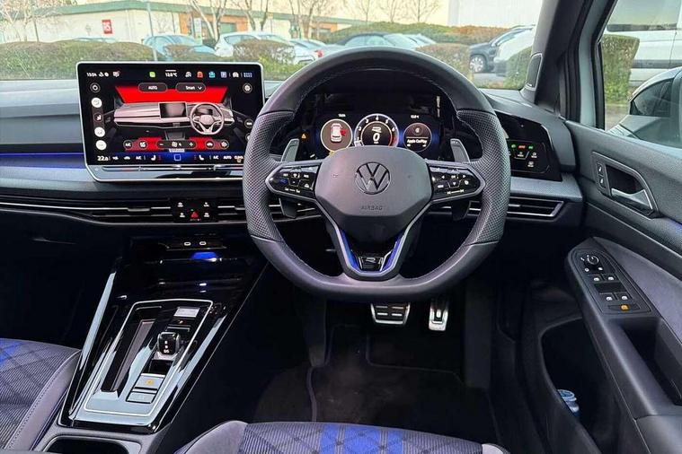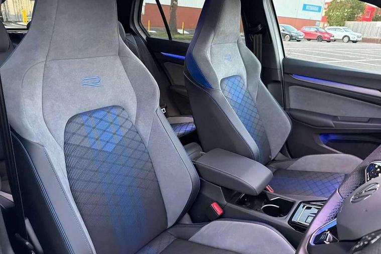 Activated carbon canister, Adaptive cruise control (ACC), Advanced driver attention and drowsiness monitor, Dynamic road sign display, E-Sim card for online connectivity, eCall emergency call system, Electronic maximum speed limit increased to 270 km/h, includes driving Modes 'drift' and 'special', larger roof spolier and GPS laptimer + G-Meter, Multi-color Digital cockpit pro, selection of different info profile possible, Multifunction front facing camera for distance control, Navigation system, Oncoming vehicle braking when turning including swerve support, Progressive steering, Side assist blind spot lane change system, rear traffic alert and exit warning system, Speed limiter, Speedo, rev counter, electronic odometer, trip, service interval display, exterior temperature and fuel gauge, Traffic jam assist, Voice enhancer and voice control, Warning signal and warning light for front and rear seatbelts not fastened, We connect plus preparation, We connect preparation, Wireless app connect, All wheel drive - 4Motion, Petrol Particulate Filter, Start-stop system with battery regeneration (recuperation - energy recovery during braking), XDS electronic differential lock for improved traction and handling, 2 USB C ports in front, 2 USB charging sockets on the centre console in the rear charging capacity upto 45W, Digital radio reception (DAB), Diversity antenna for FM reception, Gaming platform via car app, Infotainment system with 12.9" display, Mobile phone interface with inductive charging feature, 3rd brake light, Auto dimming rear view mirror, Automatic headlamp activation with Coming home and Leaving home feature, Black badge on B-pillar, Black mirror caps, Black strips on radiator grille and headlights, Body colour door handles, Darkened headlights, Darkened R Logos and VW logos in front, rear and on fender, Exterior mirrors convex on the left and aspherical on the right, Front and rear electric windows, Front fog lamps and cornering light, Heat insulating windshield made of laminated glass, Illuminated lighting animation with wake up/goodbye scenario, LED matrix headlights with ambient light V2, advanced high beam, dynamic range contol with cornering, LED rear lamp with indicator, poor weather, LED separate daytime running light, Light assist with High beam control, R name plate, Rain sensor, Rear fog light on one side and reversing lights on both sides, Rear side wing doors, Rear tinted glass 65% light absorbing from B pillar backwards, Rear windscreen washer and wiper with interval delay, Remote electrically foldable door mirrors, puddle lights and reverse activated passenger's door mirror, Welcome light with surround lighting, 12V socket in front centre console, 12V socket in luggage compartment, 3 rear head restraints, 3 seat bench in 2nd row, 30 colour ambient lighting, illuminated center console storage compartment in front, Air care climatronic 3 Zone automatic climate control with rear air conditioning control panel, Aluminium gearshift handle, Brushed stainless steel pedals, Chrome plated radiator grille inserts, air vent surrounds and light switch surrounds, Entry lights, Front + rear black carpet mats, Front centre armrest, Integrated front head restraints, ISOFIX anchors for child seats on outer rear bench seats and on front passanger seat compatible for i-Size, Luggage compartment lighting, Rear cupholder and loadthough, Single front passenger seat, Soul black instrument panel, Soul black roof lining, Split folding backrest with centre armrest and unsplit rear seat bench, Sun visors with illuminated vanity mirrors, Driver assistance pack - Golf Estate/Hatchback Auto, R styling pack - Golf, Technology park and comfort pro package - Golf Hatchback, 3 point height adj front seatbelts + pretensioners, 3 rear three point seatbelts, ABS, Autonomous emergency braking front assist with pedestrian and cyclist monitoring, Child locks on rear doors, Driver and front passenger airbag with front passenger airbag deactivation, Electronic parking brake with auto hold, ESC (Electronic Stability Control), Extended pedestrian protection measures, Front and rear black brake calipers with darkened R-logo, Hill start assist, Rear disc brakes, Two tone horn, Tyre pressure loss indicator, Volkswagen roadside assistance, Anti theft wheel bolts, Preparation for alcohol interlock, Sporty vehicle dynamics, Tool kit for tyre mobility set, Tyre mobility kit Includes 12V compressor and tyre sealant, Wheel hub cover with darkened R-logo,