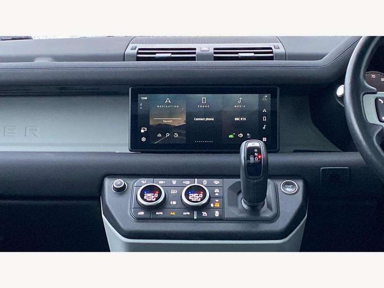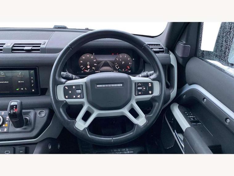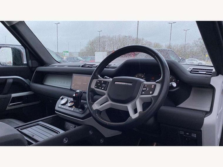 360 degree parking aid, 3D Surround Camera with 360 View, 180 Rear View, Front Traffic Detection, Forward Vehicle Guidance, Tow Hitch Assist and clear sight Ground View, Android Auto, Apple CarPlay, Assisted tailgate with soft close, Blind spot assist, Bluetooth system, Brake pad wear indicator, Clear exit monitor, Connected navigation pro, Cruise control + speed limiter, Driver condition monitor, Electric power assisted steering (EPAS), Lane keep assist, Push button start, Rear traffic monitor, Traffic sign recognition with adaptive speed limiter, Trip computer, Wade Sensing, 8 speed automatic transmission, Adaptive dynamics, All wheel drive system, Electronic air suspension, Twin speed transfer box, DAB Radio (Digital Audio Broadcasting), Meridian 400w sound audio system with 11 speakers and subwoofer, Pivi pro connected, Automatic headlight levelling, Automatic headlights, Body coloured roof, Centre high mounted stop light, ClearSight interior rear view mirror, Electric heated/power fold door mirrors with approach lights and auto dimming driver side, Electric windows with one touch open/close and anti-trap, Follow me home lighting, Front fog lights, Heated rear window with timer, Heated windscreen, Illuminated metal treadplates with brand name script, LED tail lights, Matrix LED headlights with signature DRL, Panoramic rear side glass, Privacy glass, Puddle lights, Rain sensing windscreen wipers, Rear fog lights, Rear wiper, Side hinged tailgate, Sliding panoramic roof, Trailer stability assist, 12 way heated and cooled electric memory front seats with 2 way manual headrests, 12V power socket in loadspace, 3 seat bench in 2nd row, 40:20:40 fixed rear seats with centre armrest, Alpine lights, Durable rubber cabin flooring, Durable rubber loadspace flooring, Electric cabin pre conditioning, Electric reach + rake adjustable steering column, Footwell lights, Front centre console refrigerator compartment, Grained Leather upholstery, Heated steering wheel, Leather gearshift, Light oyster morzine headlining, Loadspace cover, Loadspace Hook, Multifunction steering wheel, Overhead stowage for sunglasses, Premium cabin lighting, Rear headrests, Rear ISOFIX, Rear reading lights, Single front passenger seat, Standard interior, Standard leather steering wheel, Standard seat configuration, Storage glovebox, Sunvisors with illuminated vanity mirrors, Twin front cupholders with cover, Online pack with data plan - Defender, XS Edition exterior pack - Defender, 5 x 3 point seatbelts, ABS, Brake hold function, Cornering brake control (CBC), Cross car beam in light grey powder coat brushed finish, Customer configurable autolock, DSC - Dynamic Stability Control, EBD - Electronic brakeforce distribution, Electric parking brake (EPB), Emergency brake assist, Emergency braking, ESP + traction control, Front airbags with passenger seat occupant detector, HDC - Hill descent control, Hill launch assist, Low traction launch, Remote for (e-Call, Optimised assistance call, InControl app, Climate, beep and flash and door), RSC - Roll stability control, Seat belt reminder, TPMS (Tyre pressure monitoring system), Alarm, Immobiliser, Intrusion sensor, Keyless entry, Locking wheel nuts,