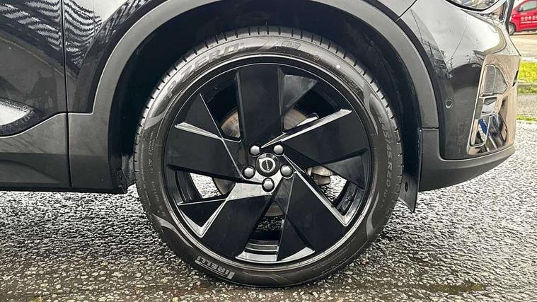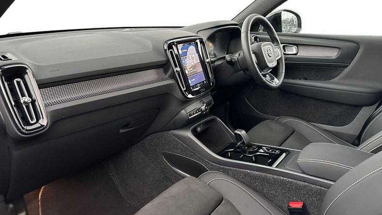 12.3" Progressive Driver Display, 360 degree surround view parking camera with side proximity sensors, 9" centre console portrait touch screen, Adjustable steering wheel force, Android auto (Wired), Apple carplay (wired), Bluetooth handsfree system, Driver alert control, Driver assistance (pilot assist and adaptive cruise control), Driver awareness - Blind spot information system with steer assist, cross traffic alert with autobrake and rear collision warning and mitigation, E-call, Front park assist, Google automotive services - Enabled entertainment apps, navigation with google maps, voice recognition with google assistant, Hands free power tailgate, Intelligent speed assistance, Lane keeping aid, Oncoming Lane Mitigation, Rear park assist, Speed sensitive steering, Volvo cars services with app - Driving journal, emergency and breakdown call, engine remote start, remote door locking/unlocking and vehicle dashboard, Wireless/Inductive Mobile Phone Charging, Automatic transmission with start/stop and manual change functions, Dynamic chassis, DAB Digital radio, Premium Sound by Harman Kardon, Dolby Pro Logic II Surround Sound, Dirac Unison, 12 speakers/600W and subwoofer, Steering wheel mounted remote controls, Active bending pixel LED headlights with adaptive shadow technology, Active high beam incorporating daytime running lights, Adaptive brake lights with high level LED brake lights, Auto dimming feature for exterior door mirrors, Auto dimming interior mirror, Automatic headlamp levelling, Colour coordinated auto folding and heated power door mirrors, Dark tinted windows - rear side windows and rear screen, Front aluminium tread plates, Front and rear electric windows, Headlight cleaning system, High gloss black front and rear skid plate, High gloss black front bumper deco, High gloss black front grille strikethrough and ironmark, High gloss black rear model, engine and volvo logo badges, High gloss black window trim, Home safe and approach lighting, Integrated roof rails in high gloss black, LED front fog lights with cornering function, Power glass tilt and slide panoramic sunroof with sun curtain, Puddle lights, Rain sensor with automatic windscreen wiper activation, Rear side wing doors, Rear wiper, Roof antenna, Roof spoiler, Visible VIN plate, 12V socket in front tunnel console and luggage compartment, 2-Zone electronic climate control with CleanZone air quality system and pollen filter, 3 seat bench in 2nd row, 3 Spoke tailored steering wheel with chrome trim, 60/40 versatile split folding rear seat, Centre console cupholders and storage, Charcoal headlining, Connect textile/microtech upholstery, Flexible load floor and grocery bag holder, Floor mats, Front cabin courtesy lights, Front door pocket, front cupholder, ambient front door, rear reading, rear courtesy, instrument panel and tailgate lighting, Front footwell illumination, Front headrests, Front reading lights, Front seat cushion extensions, Front side step illumination (under door), Glovebox bag hook, Heated front seats, Height/reach adjustable steering column, High gloss centre tunnel deco, Illuminated glovebox, Illuminated luggage compartment, Illuminated vanity mirrors + ticket holder, Integrated waste bin, Isofix attachments on outer rear seats, Load cover, Load protection net, Multi directional lumbar support for driver and passenger seat, Power driver seat with memory + exterior mirrors memory, Power folding rear headrests, Power passenger seat, Rear armrest with cupholders, Single front passenger seat, Underfloor cargo storage, Climate pack without heated front seats - XC40, 3x3 point rear seatbelts, City safety with steering support with Pedestrian + cyclist + front collision warning with full auto brake and rear auto brake, Driver and passenger airbags, Drivers knee airbag, Electronic parking brake with auto hold, First aid kit, Front and outer rear seatbelt reminder and pretensioners, Front seats SIPS airbags, Hill descent control, Hill start assist, Inflatable curtain, Passenger airbag cut-off device, Power child locks on rear doors, Road sign information display, Run off Road Protection, SIPS (Side Impact Protection System), Slippery road and hazard light alert, Stability and Traction Control with Spin control, Engine Drag Control and Corner Traction Control, Tyre pressure monitoring system, Vehicle deceleration control with Anti-lock Brake System, Electronic Brake Distribution and Emergency Brake Assist, Warning triangle, WHIPS whiplash protection system - front, 2 x Key integrated remote control central locking including with deadlocking system and auto open/close windows and sunroof, Anti-theft alarm including immobiliser/volume sensor + level sensor, Keyless drive includes keyless entry and keyless start, Locking wheel nuts,