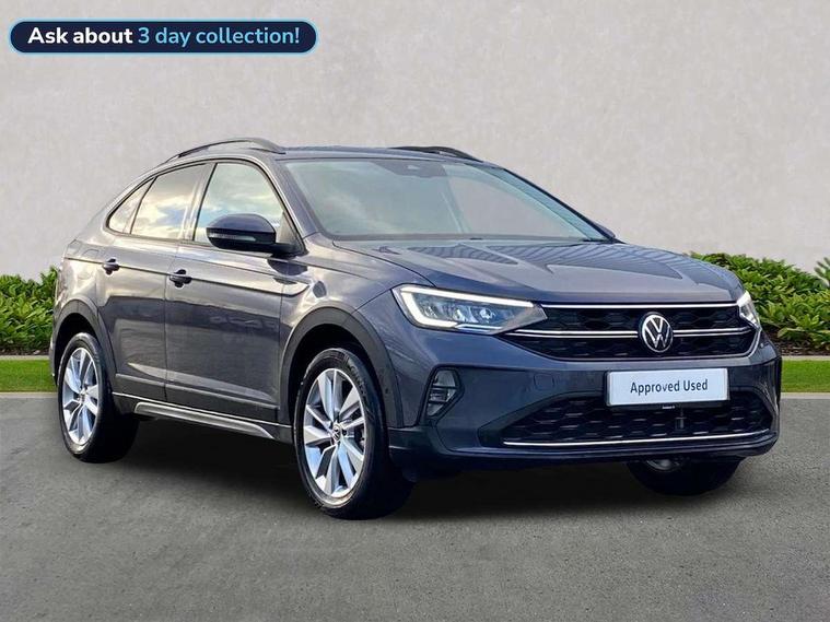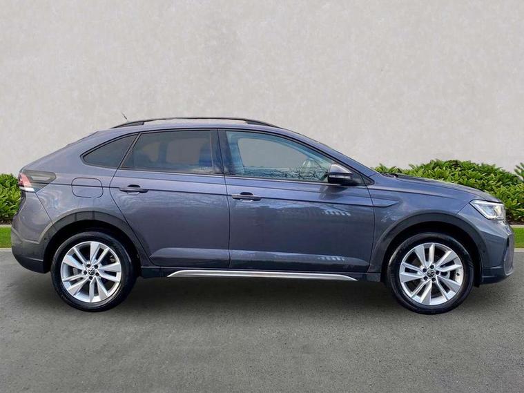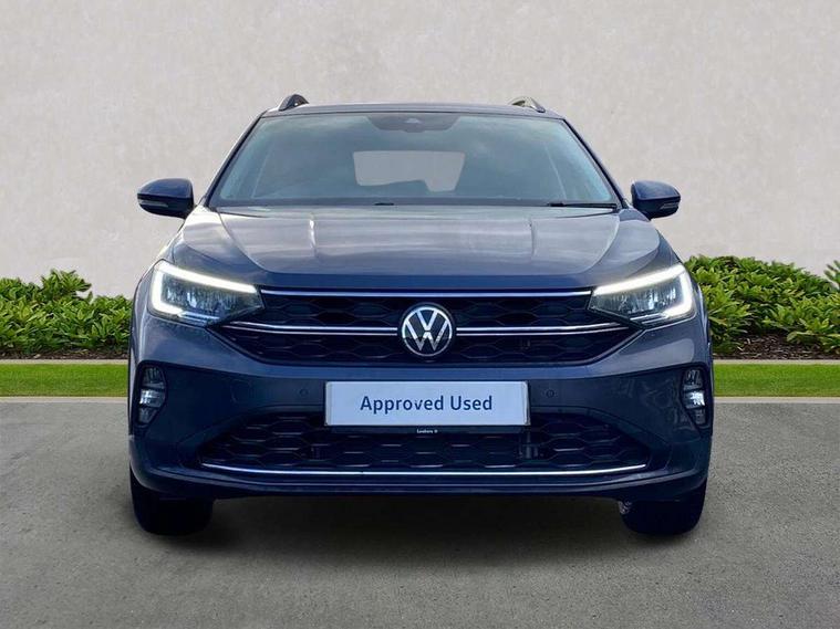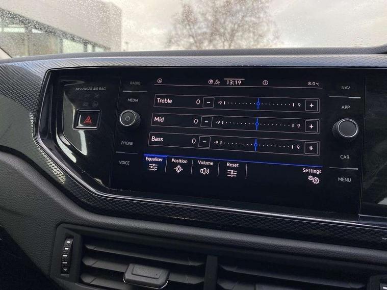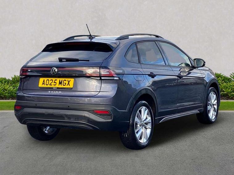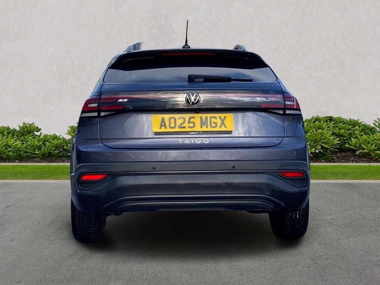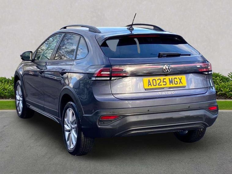 Advanced driver attention and drowsiness monitor, Dynamic road sign display, e-Call (emergency call), Power Steering, Predictive adaptive cruise control, Rear view camera, Travel assist including emergency assist, Washer fluid level indicator, Wireless Charging including Bluetooth, Start-stop system with battery regeneration (recuperation - energy recovery during braking), WeConnect plus, Ambient lighting with logo projection, Aspherical driver's exterior mirror, Body coloured bumpers, Body coloured exterior mirror housings and door handles, Electric windows, External USB type C socket and charging sockets, Heat insulating glass windscreen, LED rear combination lamp, LED third brake light, Left convex exterior mirror, Power folding adjustable/heated exterior mirrors and front passenger exterior mirror lowering function, Rear fog light on one side, reversing light on both sides, Rear side wing doors, Rear wash/wipe with intermittent wipe setting, Side windows in heat-insulating glass, from B-pillar and rear window dark tinted, 'Slash/ Austin' Cloth upholstery, 12V socket in centre console, 2 front reading lights, 3 rear head restraints, 3 seat bench in 2nd row, Black carpets, Ceramique headliner, Child seat anchor for child seat system i-Size, 2x top tether and child seat anchor in front on front passenger side, Door and side trim panels in titan black, Driver and front passenger seat height adjustment, Front centre armrest, Handbrake lever handle in leather, Height and reach adjustable steering wheel, Leather trimmed gear knob, Leather wrapped multifunction steering wheel, Luggage compartment floor, Luggage compartment light, Lumbar support for driver's and front passengers seat, Seat covers in titanium black, Single front passenger seat, Split folding backrest with centre armrest and unsplit rear seat bench, Storage compartment under front seats, Sun visors with illuminated vanity mirrors, Titanium black instrument panel, Chrome Package - Taigo, Drivers assistance package - Taigo, Light and sight pack - Taigo, 2 x 3-point seatbelts/outer rear seats with ECE label, 3-point seat belts in front with pretensioner and height adjustment, 3-point seatbelt for centre rear seat, Driver and front passenger airbag with front passenger airbag deactivation, Driver and front passenger safety-optimised head restraints, Electronic stability control, Extended and predictive pedestrian/ cyclist protection, Front and rear disc brakes, Front curtain and side airbags with center airbag, Hill start assist, Manual rear child locks, Single tone horn, Tyre pressure loss indicator, Anti-theft alarm system with interior monitoring, backup horn, and towing protection, Keyless locking and starting system keyless access with safelock, Black (slush) Dashboard, Lava stone black gloss/matt decorative inserts in dash and front door panels, Low rolling resistance tyres,