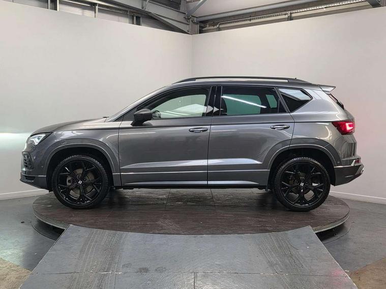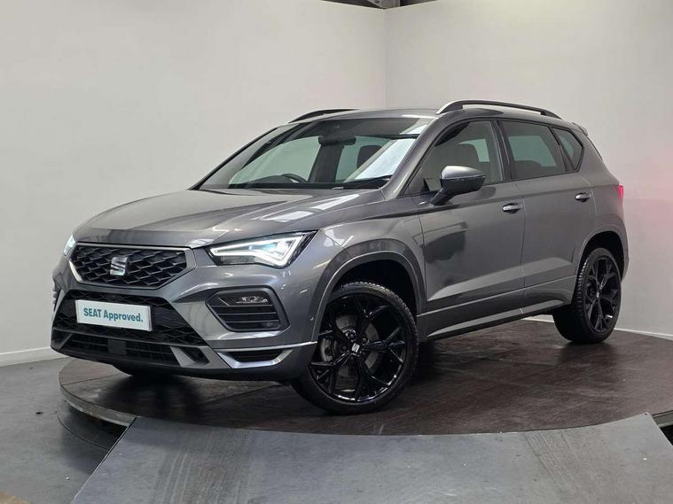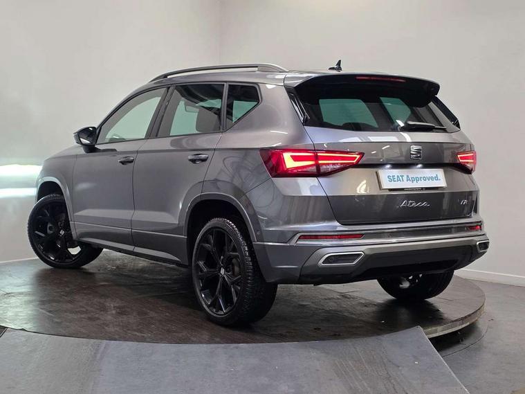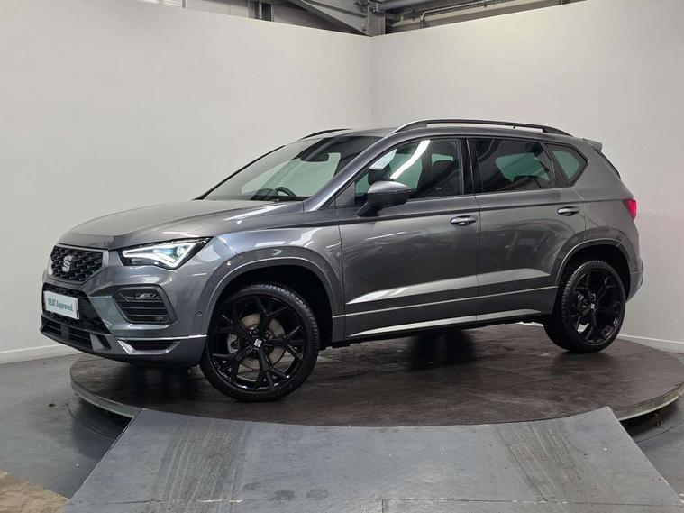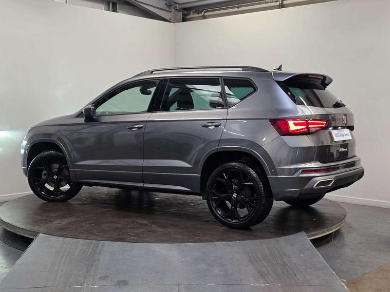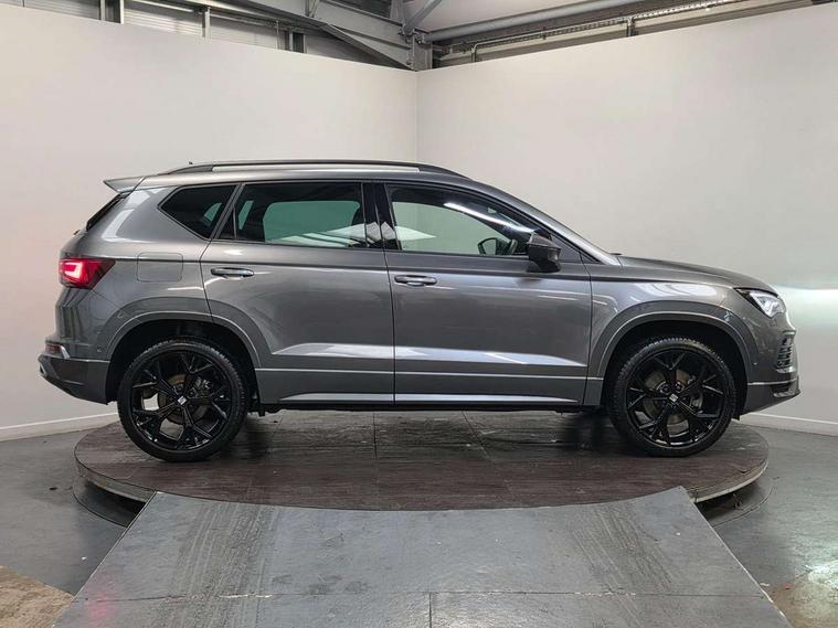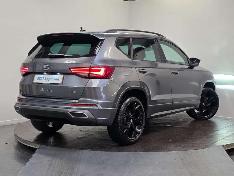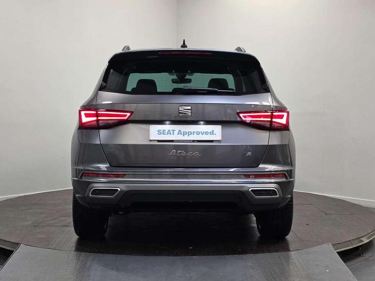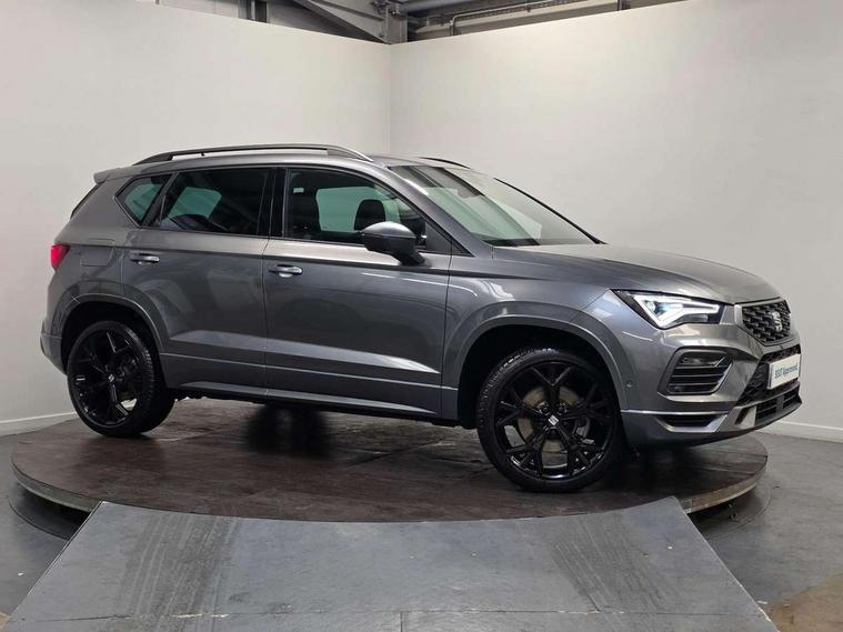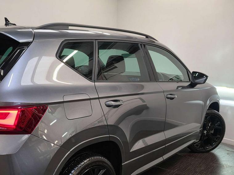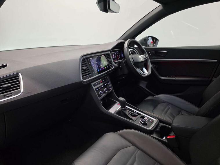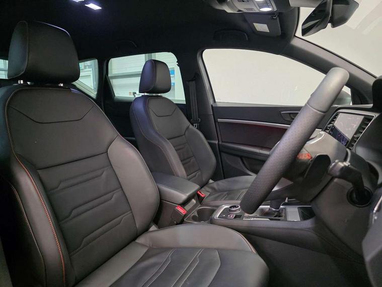10" Digital cockpit, Bluetooth audio streaming with handsfree system, E-call, Electric tailgate with virtual pedal, Outside temperature gauge, Progressive power assisted steering, SEAT drive profile with driving experience button - Normal, Sport, Eco and Individual mode, gearshift, steering and throttle response, Self parking functionality (includes front and rear parking sensors), Speed limiter, Start/stop system, Top view camera with rear view camera, Trip computer, wired and wireless full link smartphone integration, Wireless phone charger, Steering wheel mounted audio/phone controls, Black roof rails, Black side window trim, Body colour bumpers, Body coloured wheel arch surrounds, Chrome front grille frame, Dark tinted rear windows, Daytime running lights, Door mirrors with welcome light silhouette, Dynamic headlight range control with self adjusting whilst driving, Electric adjustable/heated/folding door mirrors, Front and rear electric windows, Illuminated aluminium front door sill, LED 3rd brake light, LED headlamps with lens and LED front fog lamps with cornering function, LED rear tail lights with dynamic indicators, Rear exhaust tailpipe, Rear fog lights, Rear side wing doors, Rear spoiler, Rear wash/wipe, Variable front intermittent wipers, 12V socket in front, 3 seat bench in 2nd row, 60/40 split folding rear seat, Aluminium pedals, Black greenhouse interior roof, Dual zone climate control, Electric adjustable driver seat with memory function, Front and rear head restraints, Front centre armrest, Front seat back storage pockets, Heated front seats, Height adjustable passenger seats with lumbar adjustment, ISOFIX points in outer rear seats with top tether anchorage points, Leather sports steering wheel and gear knob, Leather upholstery with front comfort seats, Rear armrest and easy back seat release mechanism from boot, Single front passenger seat, Steering wheel mounted gearshift paddles, Convenience pack - Ateca, Interior lighting pack - Ateca, Navigation system pack with DAB - Ateca, Safety and driving pack (L) - Ateca, Safety and driving pack with attention and drowsiness assist - Ateca, 3x3 point rear seatbelts, ABS, Traction control system (TCS), Electronic stability control (ESC) and Electronic differential lock system (XDS), Airbags - Driver and front passenger airbag with deactivation, front side, two curtain and driver's knee airbags, Electric parking brake with auto hold function, Front and rear seatbelt reminder, Hill hold control, Manual rear child locks, Single tone horn, Tyre pressure monitoring system, Alarm, Keyless entry, Locking wheel bolts, Remote central locking, Chrome interior detailing, 19" Exclusive alloy whelels 36/10 in glossy black, Tool kit,