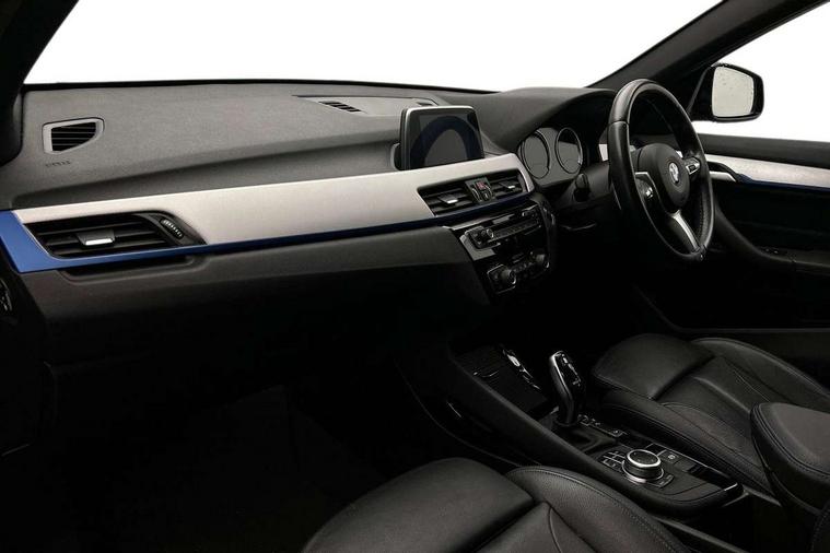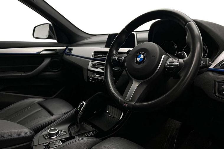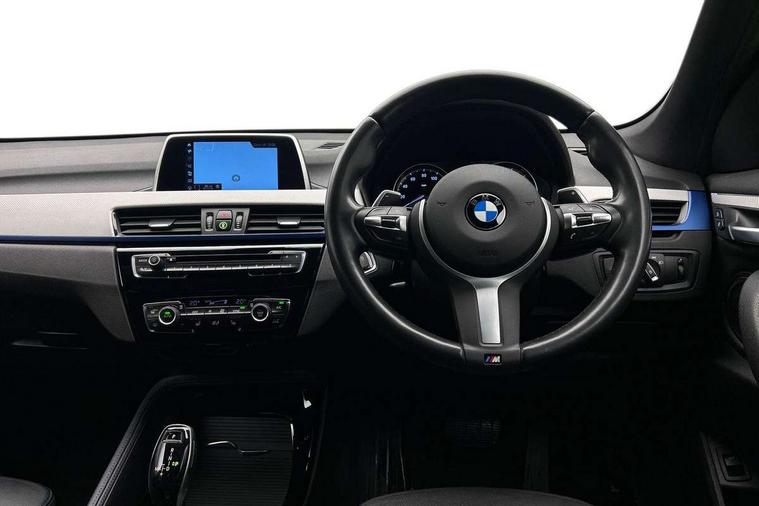 Active Guard incl speed limiting and lane departure functions with auto steering, and front collision warning with brake intervention, Ambient temperature display, Attentiveness assist, Automatic tailgate opening, BMW Online services, BMW remote services, BMW Teleservices, Brake pad wear indicator in front and rear, Instrument cluster with speedometer with miles per hour read out, tachometer and fuel gauge, Lights on warning by audio warning signal when ignition is switched off, On board computer, Outside temperature gauge, Personal Profile - automatic lock when driving away selectable, Real time traffic information, Service interval indicator, Speed limiter, Stop/start button, Tyre puncture warning system, 12V compressor with integrated sealant injection bottle and hose, Electronic differential lock, High precision injection, Performance Control, 2 USB Power socket for rear seat, BMW professional radio with CD player, DAB Digital radio, USB connection located in centre console, USB/audio interface, Adaptive LED Headlights, Adjustable headlights, Body colour bumpers, Body colour door handles, Body colour door mirrors, Clear lenses direction indicator lights, Direction indicator side lights integrated exterior mirrors, Dynamic brake lights, Electrically adjustable and heated door mirrors, Fingertip control / anti-trap function on electric window, Follow me home headlights, Front air inlets with black matt finisher and silver matt highlight, Front and rear electric windows, Front fog lights, Halogen headlights, Headlight beam throw control, Heat insulating tinted glass, Heated windscreen washer jets, High level third brake light, kidney grille with high gloss black vertical slats, LED daytime running lights, Lightweight engineering, M aerodynamic body styling, M door entry sills, M logo designation in side chrome, Rain sensor including auto headlights activation, Rear fog lights, Rear window aerial, Rear window wash/wipe, Reversing light in rear light cluster, Shark fin antenna, Sill cover in silver matt insert, Twin chrome exhaust tailpipes x2, Visible VIN plate, Welcome home function, 12v power point in centre console, 3 rear headrests, 3 spoke sport nappa leather steering wheel, 4 grab handles, Anthracite headlining, Boot light, Centre console with cupholders, Child seat ISOFIX attachment for two outer rear seats and front passenger seat with anchorage points, Driver and front passenger heated seats, Driver/passenger sunvisors with ticket holders, Drivers folding storage compartment, Dual zone automatic air conditioning, Extended storage, Front and rear door armrests, Front centre armrest/sliding cover, Front sports seats, Front/rear adjustable head restraints, Gearshift lever with M designation, Illuminated glovebox, Leather gearknob/gaiter/handbrake grip, LED ambient lighting in door trim, Luggage area underfloor compartment, Luggage compartment lighting, Luggage compartment loading edge with stainless steel insert, Multifunction steering wheel, Rake/reach adjustable steering wheel, Rear coded belt buckles, Sliding/split/reclining 40/20/40 rear seat with 60/40 split rear seat base, Steering wheel gearshift paddles, Velour floor carpets, Extended storage package - X1, 3 rear 3 point seatbelts, ABS/EBD, Audio/visual collision warning system, Automatic Stability Control (ASC), Battery safety cut-off, BMW emergency call, Brake drying, Brake energy regeneration, Braking readiness, Collision mitigation braking system, Cornering brake control (CBC), Crash Sensor - activates hazard/interior lighting + unlocks doors, Driver/Front Passenger airbags, Driver/front passenger side airbags, Dynamic brake control, Dynamic stability control + (DSC+), Dynamic Traction Control - DTC, Electronic parking brake, Front and rear head airbags, Front passenger airbag deactivation, Front seatbelt force limiters, Front ventilated disc brakes, Hill start assist, Pyrotechnically pre-tensioned front seatbelts, Rear disc brakes, Rear door child safety locks, Seatbelt warning, Side impact protection, Twin horns, Tyre pressure monitor, Warning triangle and first aid kit, Auto door lock when driving, Central locking including boot and fuel flap with deadlocks, Engine immobiliser, Locking wheel nuts, Remote control Thatcham category 1 alarm, Remote control with integrated key with M specific highlight, High gloss black centre console, Low rolling resistance tyres,