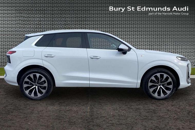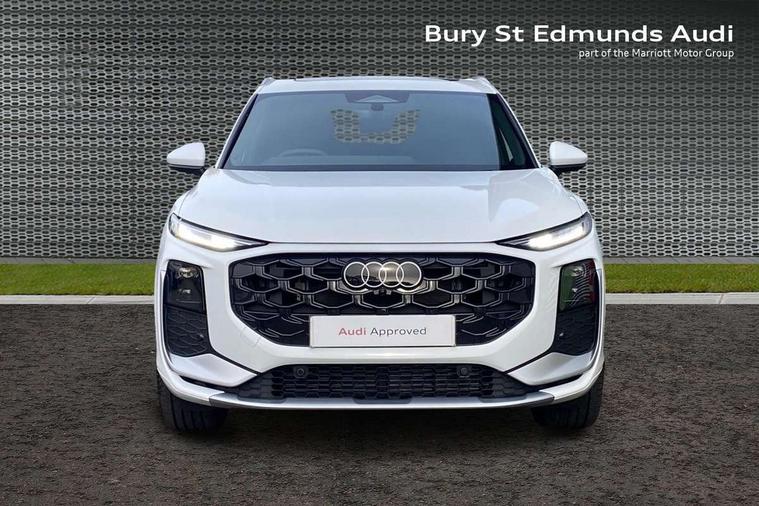 Adaptive cruise control, Audi connect emergency call and service, Audi connect remote and controls, Audi drive select (Balanced/Individual, effeciency, comfort and dynamic), Audi virtual cockpit plus - 11.9" display, Bluetooth interface, Camera based traffic sign recognition, Driver attention and fatigue monitor with driver monitoring, Front cross traffic assist, Lane departure warning with emergency assist, Panoramic curved display with 12.8" MMI navigation plus and MMI touch, Park assist plus with parking system and 360 display, Phonebox light with wireless charging, Reversing camera, Smartphone interface includes wireless Apple carplay/Android Auto, Start/stop system, Swerve assist and turn assist, Traffic sign based speed limiter, Voice control system with natural language interaction, Comfort suspension, Petrol Particulate Filter, 2 USB-C ports with charge and data functions, Audi sound system with 10 loudspeakers, subwoofer, 8 channel amplifier with 260 watts, DAB digital radio module, Acoustic glass for front door windows, Acoustic windscreen, Aluminium roof rails, Aluminium window trim, Audi Q3 lettering on the B-pillars, Auto dimming door mirrors, Auto dimming rear view mirror, Body colour door mirrors, Contrasting finish in volcano grey, Electrically folding, adjustable and heated door mirrors with integrated LED side indicators and kerb view function for passenger side, Full paint finish, Illuminated door sills with aluminium inserts at the front with S logo, LED daytime running lights, LED headlights plus with LED rear lights pro with continous light strip, illuminated Audi rings, rear, LED third brake light, Loading sill protector in stainless steel, Main beam assist, Privacy glass - dark tinted rear window, rear door and side windows, Projection light in the exterior mirrors - Projects a graphic element onto the ground, Q3 badging on the rear, Rain and light sensors, Rear side wing doors, Rear window, rear door windows and rear side windows in clear glass, Rear wiper, Sports bumpers, 3 seat bench in 2nd row, 3 spoke flat top and bottomed leather multi function sport steering wheel with gear shift paddles and "S" badging, 3-zone deluxe automatic air conditioning, 4 way lumbar support for the front seats - electric with horizontal and vertical adjustment in four directions, Black cloth headlining, Front and rear floor mats, Front and rear headrests, Front centre armrest, Heated front seats, Height and reach adjustable steering wheel, Interior storage compartment, Leather/artificial leather upholstery combination with S emblem + front sports seats, Luggage compartment lid, electrically opening and closing, Manual front seats with height adjustment, Rear seat bench plus with split folded 40:20:40, Single front passenger seat, Stainless steel pedals, Steering wheel operating unit, gloss black, Storage compartment in front centre console, Ambient lighting package pro - Q3, S line exterior styling pack - Q3, 3x3 point rear seatbelts, Convenience key with safelock, Driver and front passenger airbag with passenger airbag deactivation, Electromechanical parking brake, Electronic stabilisation control including ABS, ASR and EDL, First aid kit with warning triangle and high visibility vests, Front emergency brake assist, Hill hold assist, i - Size child seat mounting on the front passenger side and i - Size and top tether on the outer rear seats, Power operated child locks, Seatbelt monitoring, Three point automatic belts with belt tensioner and height adjustment, Tyre pressure loss indicator, Anti theft wheel bolts, Remote central locking, Thatcham approved category 1 anti theft alarm, Dark aluminium divergence inlay, Interior elements in dinamica microfibre, Interior trims in aluminium look, Tool kit and Jack,