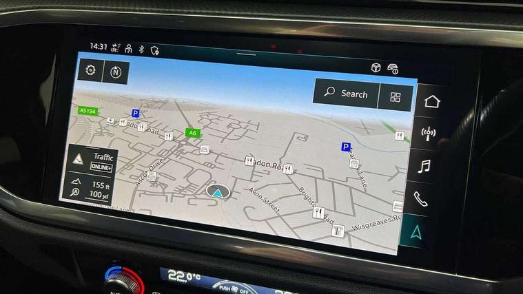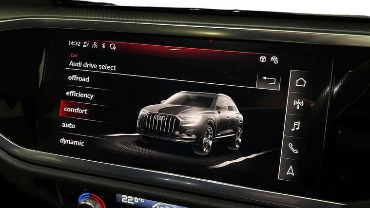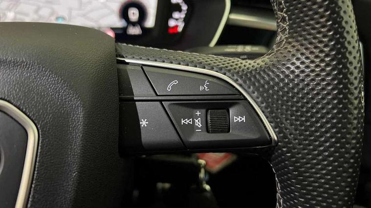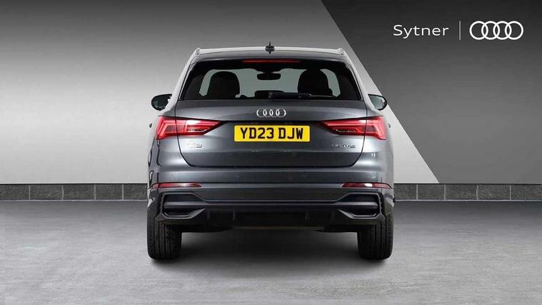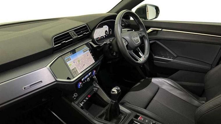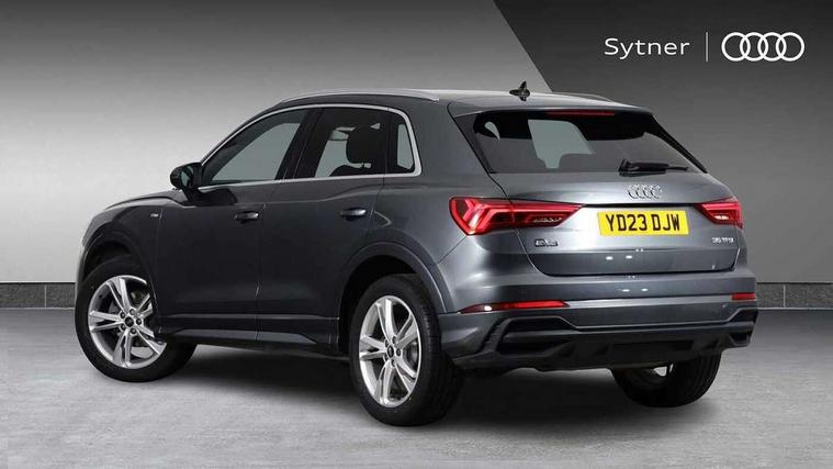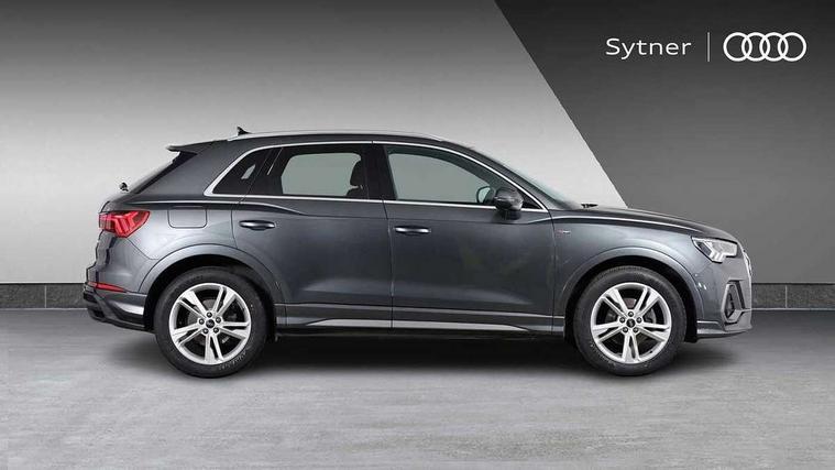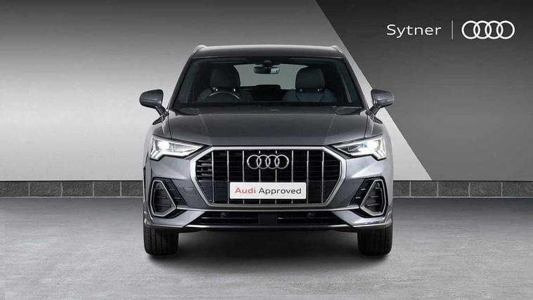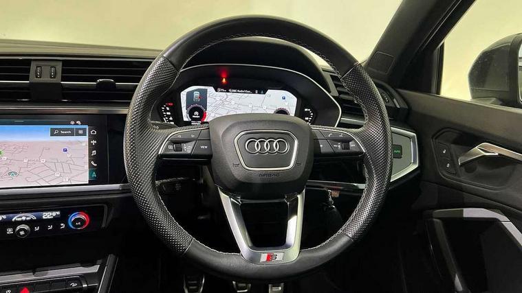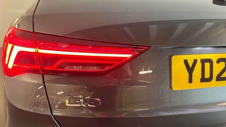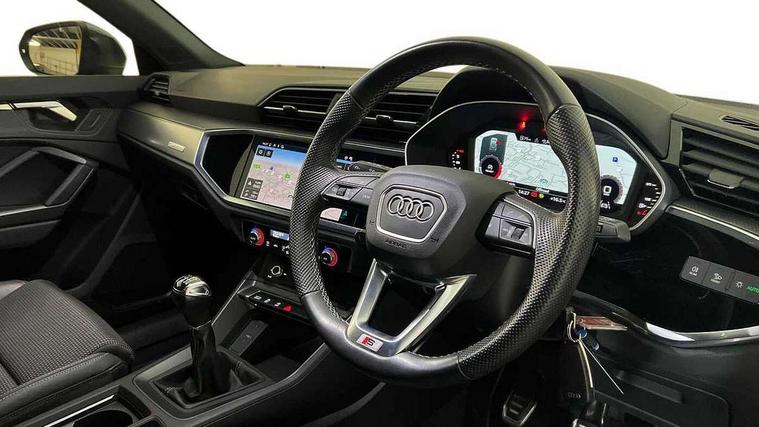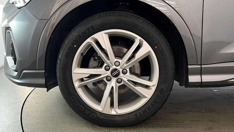 Amazon alexa Integration, Audi drive select, Audi lane departure warning, Audi smartphone interface includes wireless Apple carplay/Android Auto, Audi Virtual Cockpit - 10.25" display, Bluetooth interface, Camera based traffic sign recognition, Cruise control + speed limiter, Legal emergency call, MMI Navigation Plus with high resolution 10.1 inch touchscreen colour display, Power operated tailgate, Progressive steering, Rear parking sensors, Service interval indicator, Start stop system with recuperation, Voice control system with natural language interaction, Sports suspension, 2 USB-C ports with charge and data functions, 6 passive loudspeakers, DAB digital radio module, Acoustic windscreen, Aluminium roof rails, Aluminium window trim, Anthracite black radiator grille, Auto dimming frameless rear view mirror, Body colour front spoiler blade, Body coloured bumpers, Electrically folding, adjustable and heated door mirrors with integrated LED side indicators and kerb view function for passenger side, Front and rear electric windows, Front fog lights, Front side air inlets in matt platinum grey, Grille vertical bars in aluminium silver/Matt, High gloss black finish B and C pillars, LED Dynamic rear indicators, LED headlights with LED daytime running lights, LED rear lights, LED third brake light, Privacy glass dark tinted rear and rear-side windows (from B-pillar backwards), Rain and light sensors, Rear diffuser grille in grained matt black, Rear diffuser strip in matt anthracite black, Rear side wing doors, Rear wiper, S line badges on front wings, S Line front and rear bumpers, Side skirt insert in matt Platinium grey, Variable front intermittent wipers, 12V socket in rear centre console, 3 seat bench in 2nd row, 3 spoke leather multifunction steering wheel features S badging and grips in perforated leather with contrast stitching, 40:20:40 folding with manual adjustment for 60:40 forwards/backwards position and backrest angle, Adjustable rear seat bench/backrest with centre armrest and cupholder, Black cloth headlining, Dual zone electronic climate control, Front and rear black floor mats with contrast stitching in rock grey, Front and rear headrests, Front and rear roof module including reading lights, Front centre armrest, Glove compartment lighting, Height and reach adjustable steering wheel, Illuminated door sill trims with S logo, ISOFIX child seat mounting for front passenger with airbag deactivation and outer rear seat including top tether attachment point for outer rear seats, Luggage compartment light, Manual front seats with height adjustment, Perforated leather gearknob, Single front passenger seat, Stainless steel luggage compartment sill finisher, Stainless steel pedals, Ambient lighting pack - Q3, Non smoking pack - Q3, 3x3 point rear seatbelts, 6 airbags - Driver, front passenger, curtain and side windows, Audi pre-sense front with pedestrain and cyclist recognition, Electrically operated child locks on rear doors, Electromechanical parking brake, Electronic stabilisation control including ABS, ASR and EDL, Front seatbelt reminder, Hill descent control, Hill hold assist, Pre sense basic, Seatbelt monitoring, Tyre pressure warning, Warning triangle and first aid kit, Anti theft alarm, Anti theft wheel bolts, Immobiliser, Remote central locking, Aluminium look interior elements, Dark matt brushed aluminium inlay, Detail dashboard around MMI touch colour display in glass look, black with surround in aluminium look, Leatherette door armrest,