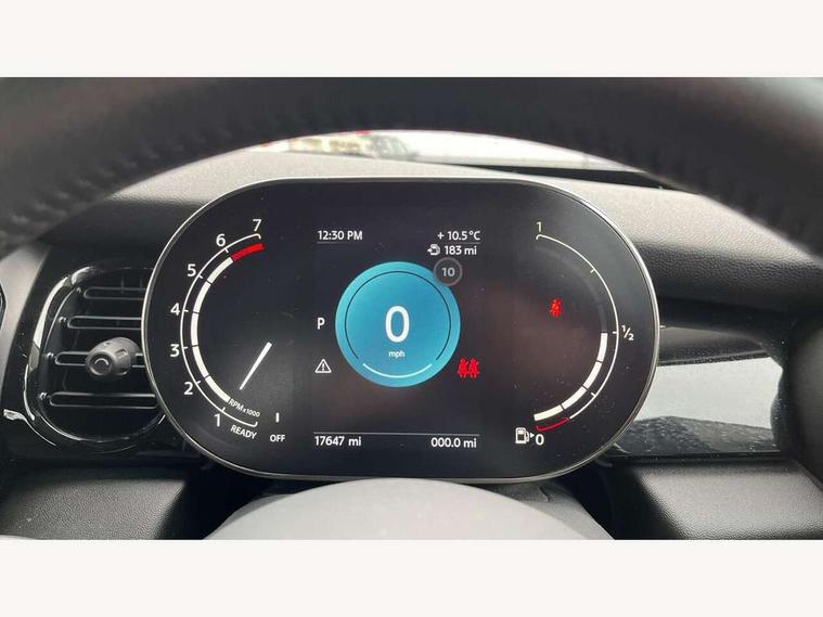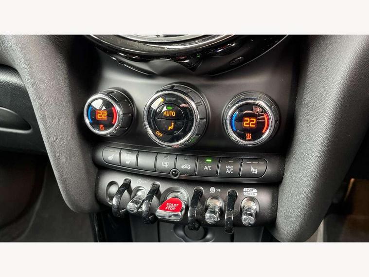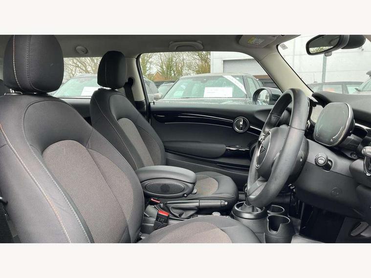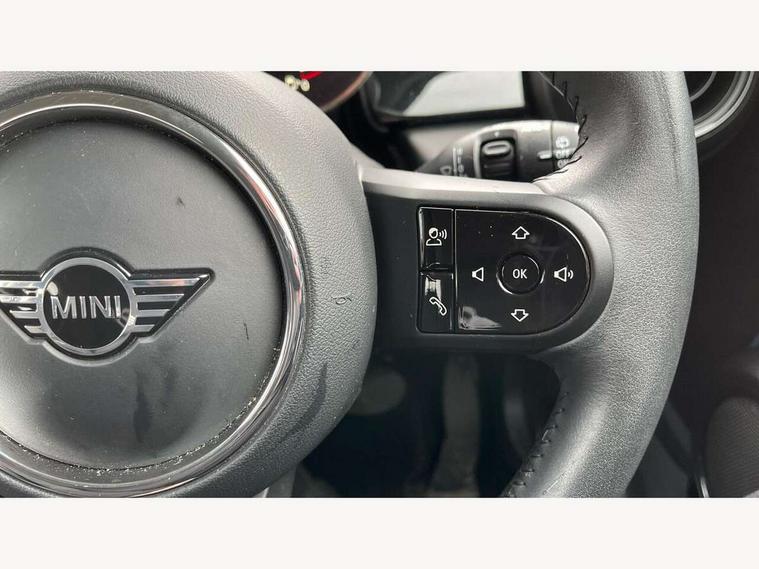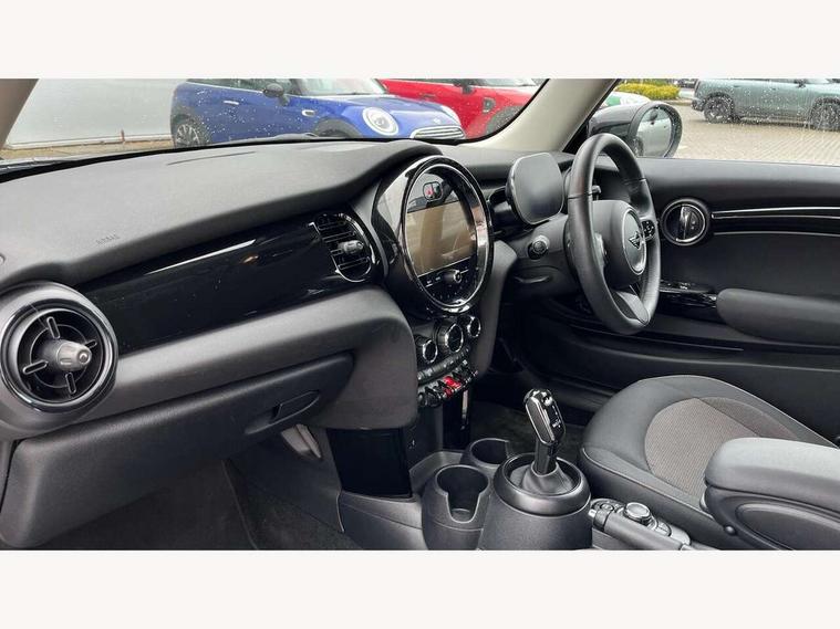 Apple CarPlay, Automatic start/stop function with brake energy recuperation, Compatible mobile phone bluetooth with audio streaming, Cruise control with brake assist, Electro-mechanical speed dependant steering assistance, Flexible car sharing preparation, Instrument cluster, Mini E-call, MINI TeleServices, On board computer, Service interval indicator, Double Vanos system, Fully variable valve control, High precision injection, Performance Control, Steptronic transmission with double clutch, 8.8" touchscreen with LED ring, FM tuner and DAB digital radio, 3rd brake light, Automatic headlight activation switch, Body colour fuel filler cap, Chrome border high gloss black slats radiator grille, Dynamic brake lights, Electric front windows, Exhaust tailpipe on left with chrome finisher, Heated rear window, Heated windscreen washer jets, LED headlight with closed ring and daytime driving lights, Metal door sill strips with MINI imprint, Model logo Cooper on right of tailgate, Rain sensor window wipers, Rear fog lights, Rear LED lights with union jack design, Rear window wiper, Side scuttle panel with integrated indicator, Sun/heat protection glass, White indicator lenses, 12V Accessory socket in centre console, 2 seat bench in 2nd row, 4 lashing eyes in luggage compartment, 60/40 split folding rear seat, Ambient lighting, Carbon black colour line - Knee roll and door armrest, Chrome interior highlights, Cupholders, Front and rear head restraints, Front and rear isofix with front passenger airbag deactivation, Front floor mats in velour, Glove compartment, Height and length steering column adjustment, Interior lighting with 12 different colours across the dashboard, underneath door bezel with illuminated laser-engraved design on central display, Leatherette gearshift lever and handbrake gaiters, LED reading lights, vanity mirror lights, front foot well light and spotlight on front seats, Manual air conditioning, Mechanical seat adjustment - forward/back & backrest for front seats and driver seat height adjust, Multifunction steering wheel, Passenger seat height adjuster, Satellite grey headlining including grab handles and clothes hooks, Single front passenger seat, Sport leather steering wheel with speed limiter and audio/communication controls, Storage compartments in doors, Sunvisors with vanity mirrors, 3 point seatbelts on all four seats, 6 Airbags - front, side, head and seat belt tensioners, Anti-lock braking system (ABS), DSC - Dynamic Stability Control, Front and rear disc brakes, Single tone fanfare horn, Tyre pressure monitoring system, Alarm system with tilt sensor, monitoring doors, bonnet interior and tailgate, Electronic vehicle immobiliser, Start/stop toggle with keyless go, Piano black interior trim, Tool kit, Tyre repair kit,