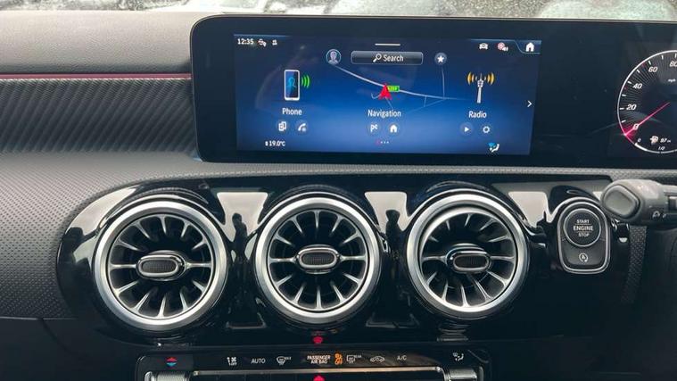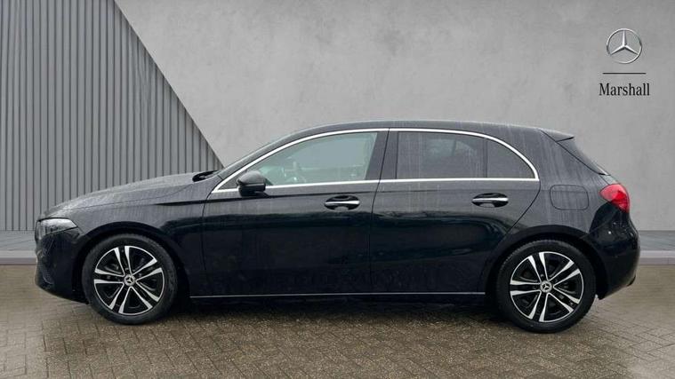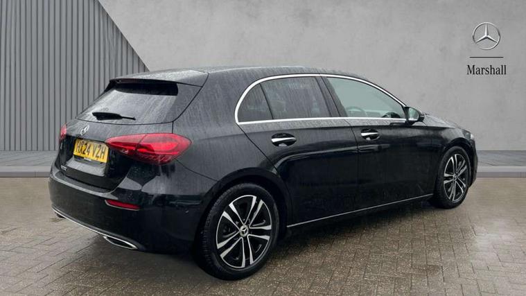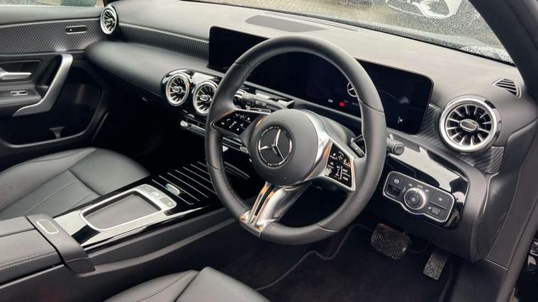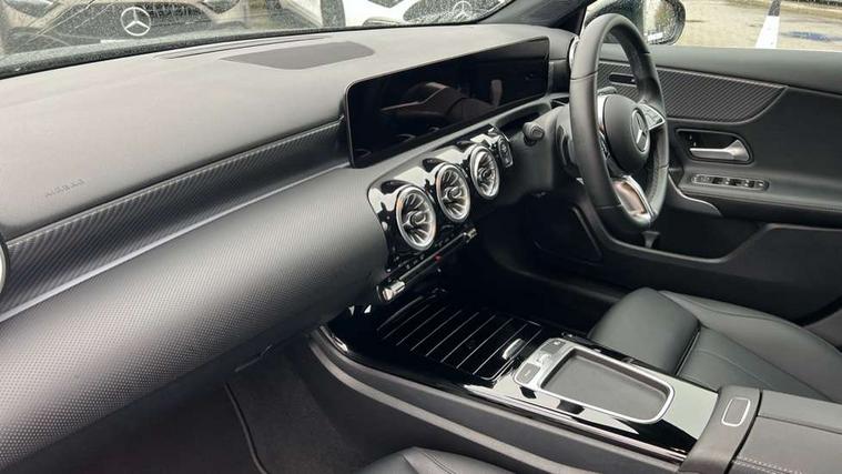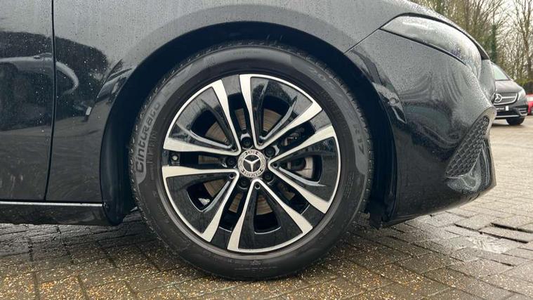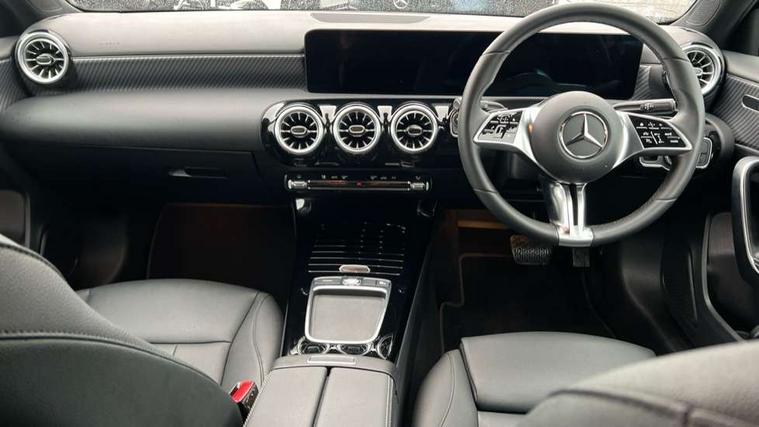 10.25 inch touchscreen central media display, 10.25" Digital instrument cluster display screen, Attention assist, Blind spot assist, Brake pad wear indicator warning light, Car wash mode, Cruise control + speed limiter, Direct steering, Direction indicators with lane change function, Dual bluetooth interfaces, DYNAMIC SELECT with a choice of driving modes (ECO, Comfort, Sport and Individual), Easy pack tailgate hands-free access, ECO start/stop function, Engine start/stop button, Fingerprint scanner, Fluid level warning indicator for fuel, oil, coolant and washer fluid, Fluorescent jacket for driver, Hard-disk navigation, Hey Mercedes Voice activation, Lamp failure indicator, Lane keeping system, Mercedes me connect including emergency call system, accident recovery, breakdown and maintenance management, Mercedes me remote services, Outside temperature gauge, Owners manual in English, Pre-installation of private car share, Preinstallation for Mercedes Benz link, Remote boot closing, Service indicator (ASSYST), Smartphone integration with Apple CarPlay and Android auto, Speed limit assist, Speed sensitive power steering, Tailgate, Trip computer in multifunction display with current consumption indicator, Wireless charging, Lowered comfort suspension, DAB Digital radio, MBUX multimedia system, Mercedes Benz sound system (100 W) with 6 speakers, 4 Electric Front and Rear windows, Adaptive brake lights, Body colour bumpers, Body colour door handles with chrome inserts, Body colour side skirt, Body coloured door mirrors, Chrome beltline strips, Diamond radiator grille with pins in fine star pattern, Electric adjustable and heated door mirrors with integrated LED side indicators, Exhaust system with 2 visible tailpipe trim elements and rear apron, Headlamp assist automatic headlamp activation, Heat insulating dark tinted rear and rear side windows, Heated glass rear windscreen + timer control, LED High level third brake light, LED High Performance headlamps including integral LED daytime running lamps and adaptive highbeam assist, LED tail lamp, Privacy glass, Radio aerial, Rain sensing windscreen wipers with two sensitivity settings, Rear fog lights, Rear side wing doors, Rear windscreen wiper, Window line trim strip in chrome, 3 seat bench in 2nd row, 3 spoke ARTICO man-made leather multifunction sports steering wheel, 4 way lumbar support, 40:20:40 split folding rear seats, Air conditioning - One zone THERMATIC automatic climate control with automatically controlled air distribution, Artico man-made leather upholstery, Automatic child seat recognition sensor, Black air vents with surround in silver chrome, Black roof lining, Front centre armrest with stowage, Front comfort seats with adjustable head restraints, Front door sills with Mercedes Benz lettering, Front seat backs luggage nets, Gearshift paddles on steering wheel, Heated front seats, Height/reach adjustable steering column, Interior lighting - 64 colour Ambient lighting, Interior mirror with reading lamps in black and frameless, Rear armrest with 2 cupholders, Rear head restraints, Seat occupancy sensor for front passenger seat, Single front passenger seat, Stowage compartment in centre console with retractable cover, Sunvisors with illuminated vanity mirrors, Twin front cupholders, Velour floor mats, Light and sight package - A Class, Mirror package - A Class, Parking pack with 180 degree view - A Class, Seat comfort pack - A Class, USB pack plus - A Class, 3 rear 3 point seatbelts, ABS with Brake Assist, Active bonnet, Active brake assist includes forward collision warning system with autonomous braking, Adaptive brake assist with hold function and hill start assist, Black seatbelts, Bonnet with power domes, Childproof locks manually operated for rear doors and electrically operated for rear power windows, Crash responsive emergency lighting, Driver and passenger head and side airbags, Drivers knee airbag, Dual stage driver/passenger airbags, Electronic parking brake, ESP curve dynamic assist, ESP with ASR, Front and rear seatbelt reminder, ISOFIX and top tether child seat fixing points in two outer rear seats, Tyre pressure monitoring system, Warning triangle and first aid kit, Window airbags, Alarm system/interior protection/immobiliser, Guard 360 degree vehicle protection, Keyless entry lock/unlock, Keyless Go, Remote central locking and crash sensor with emergency opening function, Dark carbon fibre interior trim, 17" 5 spoke light alloy wheels, aerodynamically optimised, painted in black with high sheen finish, Summer tyres, Tirefit sealant kit,