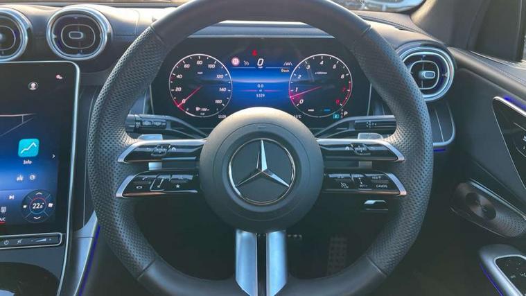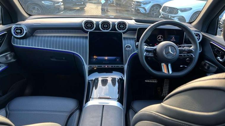 11.9" high resolution multimedia colour display, 12.3" Digital individually configurable instrument display, Acoustic presence indicator, Active lane keeping assist, Attention assist, Blind spot assist, Bluetooth interface for hands free telephone, Collision prevention assist plus, Direct steer speed sensitive steering, DYNAMIC SELECT with a choice of driving modes (ECO, Comfort, Sport and Individual), eCall emergency call system, ECO start/stop function, Fingerprint scanner, Fluorescent jacket for driver, Hard disc navigation, Head up Display, Instrument display in miles with English lettering, MBUX augmented reality for navigation, MBUX navigation premium, MBUX voice control activated by keywords "Hey Mercedes", Mercedes me connect, Multi function trip computer, Outside temperature display, Remote boot release, Remote services plus, Road sign recognition system, Service indicator (ASSYST), Smartphone integration, Status display for rear seat belts in instrument cluster, Tailgate, Traffic sign assist, Wireless charging system for mobile devices in the front, 48V Mild hybrid technology, 4MATIC permanent four wheel drive, 62 litre fuel tank, 9G TRONIC plus automatic transmission, Petrol Particulate Filter (PPF), Residual engine heat utilisation, Burmester 3D surround sound system, DAB digital radio tuner, MBUX extended functions, Pre installation for Mercedes Benz Link, Sound personalisation, Adaptive brake lights, Adaptive high beam assist plus, Aluminium look running boards with rubber studs, AMG bodystyling front apron, rear apron and side skirts, AMG Line exterior, Auto headlights, Black roof rails, Body colour bumpers, Body colour door mirrors, Digital light LED headlights, Electric panoramic glass sunroof, Electrically adjustable door mirrors, Front and rear electric windows, Headlight washers, Heat and noise insulating acoustic glass, Heat insulating dark tinted glass, Heated rear window, High level LED brake light, Integrated LED daytime running lights, LED indicator lights, LED rear fog lights, LED tail lamp, Motor way mode function and locator lighting, Radiator grille with Mercedes Benz pattern and integreated Mercedes star and louvre in dark grey matt with chrome inlay and black frame, Rain sensor windscreen wipers, Range adjustable headlights, Rear side wing doors, Rear wiper, Transparent Bonnet, Two chrome plated tailpipe trim elements, Variable front intermittent wipers, Welcome and follow-me home light functionality, Wheel arch liners in the vehicle colour, 3 seat bench in 2nd row, 40:20:40 split folding rear seats, Ambient lighting premium with projection of brand logo, AMG floor mats, AMG line interior, Artico man-made leather upholstery, Audio and onboard settings control on multifunction steering wheel, Automatic child seat recognition sensor, Black fabric roof lining, Comfort seats, Double cup holder in centre console, Easy-pack removable load compartment cover, Electrically height/reach adjustable steering column, Front centre armrest with stowage compartment, Front head restraints, Galvanised steering wheel gearshift paddles, Heated front seats, Heated steering wheel, Illuminated door sill panels with Mercedes Benz lettering, Illuminated glove compartment, Instrument panel and beltlines in ARTICO manmade leather in nappa look, Multicontour and climatised front seats, Multifunction sports steering wheel in nappa leather, Partition net, Rear centre headrest, Rear head restraints, Rear top tether child seat ISOFIX attachment, Single front passenger seat, Sports pedals with stainless steel surfaces and rubber studs, Sun visors, THERMATIC automatic climate control, Anti theft protection package - GLC, Boot comfort package - GLC, Easy tailgate pack - GLC, Exterior chrome package - GLC, Interior chrome package - GLC, Interior lighting pack - GLC, Keyless-Go comfort package - GLC, Memory pack - GLC, Mirror pack - GLC, Night package - GLC Urban Edition, Parking package with 360 degree camera - GLC, Stowage space package - GLC, USB Plus Pack - GLC, 3 rear 3 point seatbelts, Anti-lock braking system (ABS), ASR traction control, Automatic front passenger airbag deactivation, Black seat belts, Brake calipers with Mercedes-Benz lettering + perforated brake discs, Braking system with larger brake discs on the front axle, Child proof door locks, Dual-stage airbags - driver and front passenger, driver knee bag and window bags for driver, front passenger and rear passengers, Electronic parking brake, Electronic stability programme (ESP) with curve dynamic assist and cross wind assist, Front and rear seatbelt reminder, Front passenger seat occupancy sensor, Front seatbelt pretensioners, Hill start assist, Tyre pressure monitoring system, Warning triangle and first aid kit, Automatic door locking, Guard 360 degree vehicle protection plus, Interior protection/immobiliser, Remote central locking, Black open pore aluminium lines wood trim with centre console in black fine structure, 20" AMG multi spoke light alloy wheels in painted black with high sheen finish, Summer tyres, TIREFIT with tyre inflation compressor,