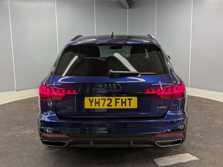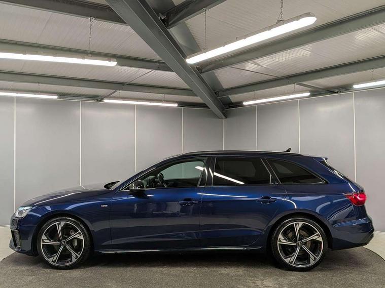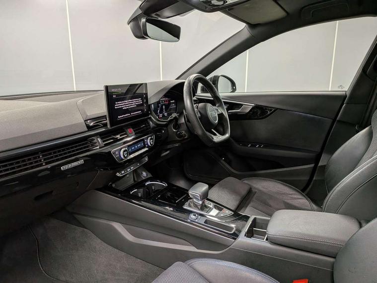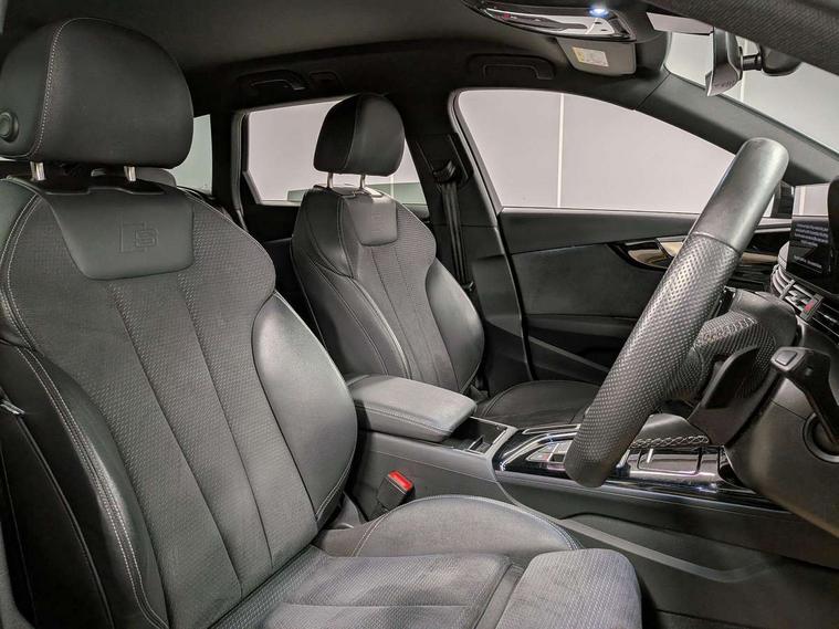 Audi connect safety and service (e-call), Audi connect with Amazon Alexa Integration, Audi drive select, Audi smartphone interface, Audi virtual cockpit, Automatic start-stop system with coasting functionality and efficiency programme, Bluetooth interface, Electromechanical power steering, Email, calendar and text messages displayed via MMI, MMI Navigation plus with MMI touch includes 10.1" high resolution colour MMI display, 3D map, Power operated tailgate, Voice control system, 58 Litre fuel tank, Sports suspension lowered by 23mm, 2 USB charging ports, 8 passive loudspeakers, DAB digital radio reception, Auto dimming rear view mirror, Black Audi rings and black badging (model name in black badging, no engine badging), Body colour door handles, Body colour front spoiler lip, Body colour side sill trim, Electrically folding auto dimming/adjustable/heated door mirrors with LED side indicators and kerb view function for passenger side, Front and rear bumpers with side skirts, Front wing badges, Grained matt black side air inlets with matt aluminium silver inlay, High beam assistant, High gloss black B pillar trims and triangular rear door trim, LED headlights with LED rear lights + dynamic rear indicators + headlight adjustment and high beam, turning light + LED daytime running lights, LED third brake light, Matt aluminium silver tailpipe trim, Privacy glass, Rain and light sensors, Rear diffuser in matt titanium black with trim strip in matt aluminium silver, Rear side wing doors, Rear wiper, RS4 rear spoiler in body colour, S Line roof edge spoiler, Variable intermittent front wash/wipe, Windscreen with acoustic glazing, 4 way electric lumbar support for driver and front passenger, 40/20/40 split folding 3 rear seat bench in 3 parts with rear centre armrest, Black cloth headlining, Black perforated leather gearknob, Contrast stitching on seats, steering wheel and gear lever gaiter, Deluxe 3 zone electronic climate control, Door sill trims with aluminium inlay, Electric load area cover, Front and rear head restraints, Front centre armrest, Heated front seats, Illuminated door sill trims with S logo, ISOFIX child seat mounting and top tether, Manual seat adjustment, Single front passenger seat, Stainless steel pedals and foot rest, Tool kit, Black styling pack - A4 Avant, LED Interior light pack - A4/S4, 3 rear seatbelts, 6 airbags - Driver, front passenger, curtain and side windows, Electronic Stabilisation Control (ESC) including ABS, ASR and EDL, Hill hold assist, Multi collision brake assist, Pop-up bonnet for pedestrian protection, Pre sense city, Rear door child safety locks, Seatbelt monitoring, Warning triangle and first aid kit, Anti theft alarm, Anti theft wheel bolts, Central locking, Keyless Go, Piano black finish inlay, Tyre repair kit,