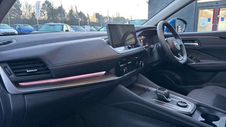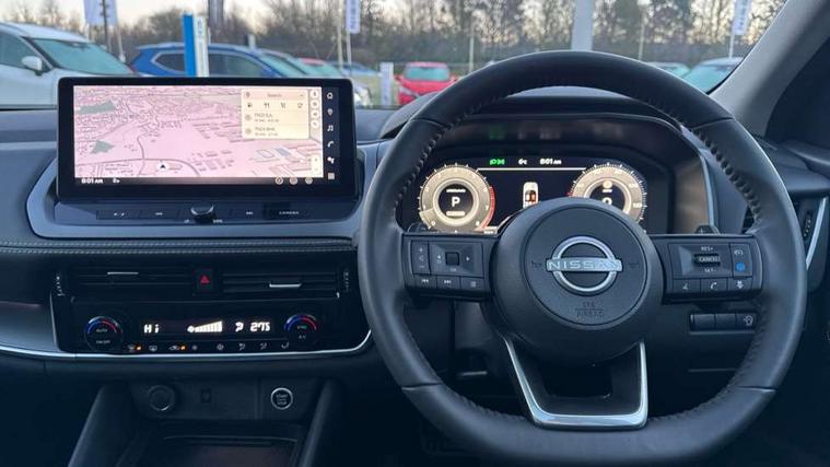 2 front USB-C ports, 2 rear USB-C ports, 360 degree Intelligent around view monitor with moving object detection, Blind spot warning, Drive assist custom mode, Drive modes (sport, normal, eco), Driver drowsiness and attention warning, Electric speed sensitive power steering, Emergency and breakdown call, Emergency lane keep assist, Emergency Stop Signal (ESS), Engine start/stop button, Event data recorder, Front and rear parking sensors, Full Digital 12.3" TFT Digital Combimeter, Google virtual personal assistance, Idle stop/start system, In-car WIFI hotspot, Intelligent Cruise control (ICC), Intelligent driver alert system, Intelligent forward collision warning, Intelligent lane intervention, Intelligent speed assist, Lane departure warning system, Maximum speed limiter, Nissan connect 12.3 inch touchscreen infotainment system, Nissan connect navigation with google maps, Nissan connect services 2.0 (Google Automotive System), Outside temperature sensor, Propilot assist with Navi-Link, Rear cross traffic alert, Remote control services - door locks, lights, horn and car locator, Reversing detection, Traffic jam pilot, Traffic sign recognition with legal speed adjustment, Trip computer, Wireless Apple CarPlay/Android Auto, Wireless charging pad, Limited slip differential, 6 speakers, AM/FM audio system with DAB, Bluetooth audio streaming, Auto rear wiper when reversing, Body coloured door handles, Bodyside mouldings, Chrome side window finisher, Electric auto folding door mirrors, Electrically adjustable and heated door mirrors with LED turn indicator, Follow me home headlights, Gloss black mirror caps, High beam assist, Intelligent auto headlights, LED 3rd brake light, LED daytime running lights, LED Headlights, LED rear lights, One touch front and rear electric windows with remote opening and closing, One touch passenger window, Partially body coloured bumpers, Rain sensing wipers, Rear privacy glass, Rear roof spoiler, Rear side wing doors, Rear styling plate, Shark fin antenna, Silver roof rails, Splash free rain sensing wipers, Super UV and infrared cut glass, Three blink turn signal, 12v power socket in dashboard and luggage, 3 bench rear seats in 2nd row, 3 rear headrests, 60/40 split folding rear seat bench, Chrome interior door handles, Cloth upholstery, Dark headlining, Driver and passenger sunvisors with illuminated vanity mirrors, Driver seat back pocket, Dual zone automatic climate control with pollen filter, Electrically adjustable lumbar support for driver, Front centre console and armrest, Front cupholders, Front door with bottle holders, Height adjustable driver seat, Height adjustable front headrests, Height adjustable passenger seat, Luggage board system, Luggage space lighting, Multifunction steering wheel, Passenger seat back pocket, Rear door bottle holders, Rear seat armrest with 2 cupholders, RGB ambient light (Partial area coverage), Single front passenger seat, Smooth leather steering wheel, Steering wheel gearshift paddles, Tilt/telescopic adjustable steering wheel, Two rear isofix child seat anchorage points with top tether, 3x3 point rear seatbelt pretensioners + load limiters, ABS with EBD and brake assist, Autonomous emergency braking, Child locks on rear doors, Curtain and front side, far side airbags, Driver and passenger airbags, Driver, passenger and 2nd row rear seat belt reminder, Electric handbrake with auto hold function, Front seatbelt pretensioners + load limiters, Height adjustable front seatbelts, Hill start assist, Intelligent blind spot intervention, intelligent front emergency braking, Intelligent rear automatic braking, Tyre pressure monitoring system, Vehicle dynamic control, Engine immobiliser, Intelligent key with walk away lock and approach unlock functions, Remote central door locking with deadlocking, Thatcham alarm, 18" Diamond cut alloy wheels, Tyre puncture repair kit,