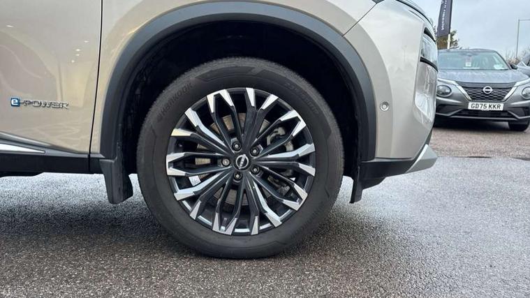 Advanced 10.8" head up display, Android auto wireless, Blind spot warning, Drive assist custom mode, Drive modes (sport, normal, eco), Driver drowsiness and attention warning, e-Pedal step, Electric speed sensitive power steering, Emergency and breakdown call, Event data recorder, Front and rear parking sensors, Full Digital 12.3" TFT Digital Combimeter, Google maps services - search, weather, 3D maps and Google street view, Hands free power tailgate, Idle stop/start system, Intelligent around view monitor, Intelligent Cruise control (ICC), Intelligent driver alert system, Intelligent forward collision warning, Intelligent lane departure warning, Intelligent lane intervention, Intelligent lane keep assist, Lane departure prevention, Maximum speed limiter, Moving object detection, Nissan connect 12.3 inch touchscreen infotainment system, Nissan connect nav with TomTom traffic, Propilot assist with Navi-Link, ProPilot park, Push button starter, Rear cross traffic alert, Rear view camera, Remote control services - door locks, lights, horn and car locator, Reversing detection, Telematics - notifications and connectivity services, Traffic jam pilot, Traffic sign recognition with legal speed adjustment, Trip computer, Virtual personal assistant and firmware over the air capability, Wireless apple carplay, Wireless charging pad, 6 speakers, AM/FM audio system with DAB, Bluetooth audio streaming, Front USB connections (Type-A and Type-C), Rear USB charging only ports 2 Type-C, Auto rear wiper when reversing, Body colour mirror caps, Body coloured door handles, Bodyside mouldings, Chrome side window finisher, e-POWER badging, Electric auto folding door mirrors, Electric sunroof/sunshade, Electrically adjustable and heated door mirrors, Follow me home headlights, High beam assist, Intelligent auto headlights, LED 3rd brake light, LED daytime running lights, LED front fog lights, LED headlights with adaptive driving beam, LED rear lights, One touch front and rear electric windows with remote opening and closing, Partially body coloured bumpers, Rain sensing wipers, Rear privacy glass, Rear reversing light (bulb lighting), Rear roof spoiler, Rear side wing doors, Rear styling plate, Roof rails, Shark fin antenna, Smart rear view mirror with auto dimming, Splash free wipers, Super UV and infrared cut glass, Thermaclear heated windscreen, Three blink turn signal, 12v power socket in dashboard and luggage, 3 bench rear seats in 2nd row, 3 rear headrests, 40/20/40 folding rear seats with recline, Butteryfly console, Chrome interior door handles, Driver and front passenger sunvisors with illuminated vanity mirrors, Driver seat back pocket, Electric adjustable 2 way lumbar support for driver, Electric adjustable 2 way lumbar support for passenger seat, Electric adjustable driver and passenger seat with memory function, Fore/Aft adjustable rear seats, Front and rear heated seats, Front centre console and armrest, Front cupholders, Front door with bottle holders, Heated steering wheel, Height adjustable driver's seat, Height adjustable front headrests, Height adjustable passenger seat, Leather shift knob, Leather steering wheel, Luggage board system, Luggage space lighting, Multifunction steering wheel, Passenger seat back pocket, Rear armrest with 2 cupholders, Rear door bottle holders, Single front passenger seat, Sliding second row seats, Steering column mounted gear shift paddles, Synthetic leather monoform upholstery, Tilt/telescopic adjustable steering wheel, Tri zone automatic climate control with pollen filter, Two rear isofix child seat anchorage points with top tether, Sky pack - X-Trail, 3x3 point rear seatbelt pretensioners + load limiters, ABS with EBD and brake assist, Active brake limited slip, Auto hold function, Child locks on rear doors, Curtain and front side, far side airbags, Driver and passenger airbags, Driver, passenger and 2nd row rear seat belt reminder, Electronic parking brake, Front seatbelt pretensioners + load limiters, Height adjustable front seatbelts, Hill start assist, Intelligent blind spot intervention, Intelligent front emergency braking with pedestrian, cyclist recognition and junction assist, Intelligent rear automatic braking, Tyre pressure monitoring system, Vehicle dynamic control, Approach unlock and walk away lock, Engine immobiliser, Intelligent Key, Remote central door locking with deadlocking, Thatcham Cat.1 alarm, 19" Diamond cut alloy wheels, Tyre puncture repair kit,