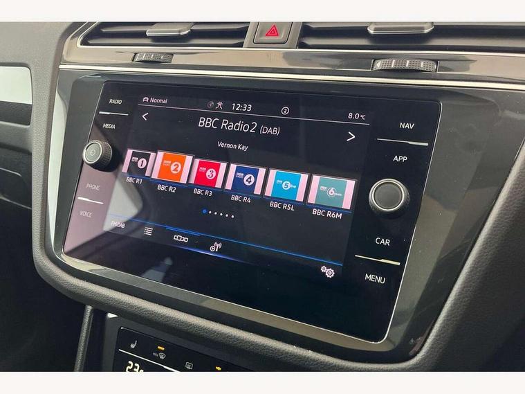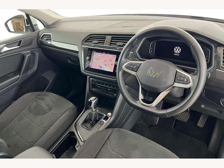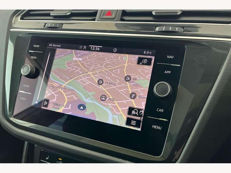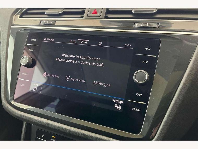 Adaptive cruise control ACC stop and go including speed limiter, App-Connect incl. App-Connect Wireless for Apple CarPlay and Android Auto, Bluetooth phone integration system, Distance control assist, Driver alert system, Driver profile selection, Dynamic road sign display, eCall emergency call system, Electromechanical speed sensitive power steering, Engine start/stop button, Lane keeping system Lane Assist, Lights on warning, Motorised electric tailgate operated via key fob, drivers door and foot movement under tailgate, Multifunction front facing camera, Outside temperature display, Premium multifunction display with multi colour display, Remote control boot opening, Rev counter, Revision / skills operating concept travel assistant, Service interval indicator, Speed limit display, Start/stop system with regenerative braking, Tailgate/trunk lid unlocking from outside, Trip computer, Warning sound and light for doors and tailgate open, Battery regeneration during braking, XDS electronic differential lock for improved traction and handling, 4 X 20 watt output, 8 Speakers, Diversity antenna for FM reception, Radio, SD card slot, Simultaneous pairing of 2 compatible mobile devices, SMS functionality - read, compose and send SMS messages using touch-screen display, Title and cover art display, USB C ports, Aluminium door sill protectors, Auto dimming interior rear view mirror, Automatic headlight control system, Body colour door handles, Body coloured bumpers, Body coloured door mirrors with integrated indicators, Coming/leaving home lighting function, Dynamic headlight range control, Front and rear electric windows, Heated rear window, High level 3rd brake light, IQ light-Adv high beam, Dynamic light assist for LED matrix headlamp+LED separate DRL+DCL, dark red rear LED tech, Poor weather light+ cornering light, Laminated safety glass windshield, heat and sound insulating, LED rear number plate lights, Poor weather light and cornering light, Privacy glass for rear side windows and rear window, Rain sensor windscreen wipers, Rear exhaust tailpipe, Rear fog lamp, Rear side wing doors, Rear windscreen washer and wiper with interval delay, Side and rear windows in heat insulating glass, Tilting and sliding panoramic sunroof with rear panoramic sunroof, Trailer Stability Programme, Windscreen wipers/ intermittent wipe + 4 position delay, 12V outlet in center console rear and in luggage compartment, 12V outlet in front and tray, 2 cup holders in front, 2 LED front reading lights, 2 LED rear reading lights, 3 bench rear seats in 2nd row, 3 rear headrests, 4 load lashing points, 40:20:40 split folding rear seats, Air Care Climatronic 3 zone automatic climate control with enhanced air filter and controls in the rear, Backrest release for left front seat, Climate control unit rear with touch function, Door and side trim panel in foam film and woven fabric, Front centre armrest, Front footwell illumination, Front seats head restraints (x-adjustment), Height adjustable front seats, Height/reach adjust steering wheel, Instrument lighting white adjustable panel illumination, Interior light with delay, Isofix Preparation 2 Rear child seats, Leather gear knob, Lockable cooled glovebox, Luggage compartment lighting, Luggage net, Rear bench seat asymetrically split folding, longitudinally movable and folding with load-through hatch and center armrest, Remote unlocking for rear seat backrest, Removable luggage cover, Removable rear headrests, Safety optimised front head restraints, Single front passenger seat, Sliding/reclining rear seats, Standard rear seat release, Storage compartment in driver's door, Storage compartment in passenger's door, Storage compartment in rear doors, Storage compartments in luggage area left and right, Storage tray on dashboard, Sun visors with illuminated vanity mirrors, Top front comfort seats, Variable boot floor, height adjustable and removable, Easy open and close pack with safelock - Tiguan, 3 point seat belt for centre rear seats, 3 point seat belts with seat belt pretensioners for the outer rear seats, Active bonnet, Curtain airbags for front and rear passengers, Driver/Front Passenger airbags, Drivers knee airbag, Electronic parking brake with auto hold, Electronic Stability Control with driver steering recommendation, ABS, ASR, EDL, EDTC and trailer stabilization, Front assist with autonomous emergency braking (for Adaptive Cruise Control ACC up to 130 mph), Front disc brakes, Front passenger airbag deactivation, Front side airbags, Height adjustable front 3 point seatbelts + pretensioners, Hill hold control, Manual child proof rear door locks, Pedestrian monitoring system, Power assisted brakes, Proactive passenger protection system in combination with front assist, Rear disc brakes, Rigid safety cell with front and rear crumple zones, Two tone horn, Warning sound and light for front seat belts if unfastened, Anti theft alarm system with interior monitoring, backup horn and towing protection, Anti theft wheel bolts, Central locking system with safelock radio remote control and 2 remote control folding keys, Electronic engine immobiliser, Tool kit,