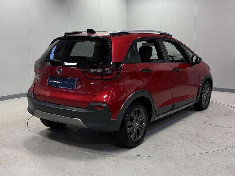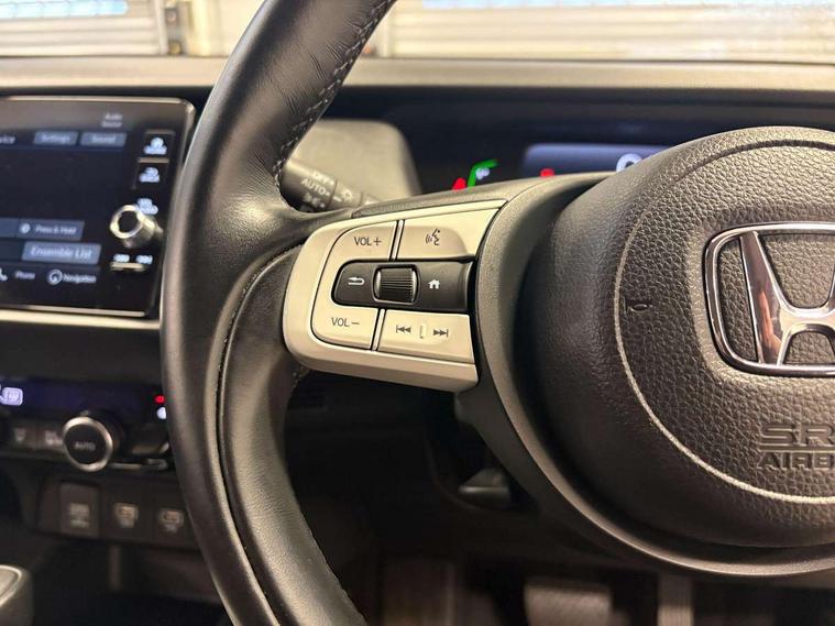 Adaptive cruise control, Adjustable speed limiter, Agile handling assist, Bluetooth hands free telephone connection, eCall emergency call system, Econ mode, Electric power steering wheel with variable gear ratio steering, Emergency stop signalling system, Forward collision warning, Front and rear parking sensors, Honda CONNECT with GARMIN Navigation + 9" touchscreen, AM/FM/DAB/Apple Carplay and android auto, Idle stop, Intelligent speed limiter, Lane departure warning system, Lane keep assist system, Low speed following, Multi-information display, Rear view camera, Road departure mitigation, Tailgate, Traffic jam assist, Traffic sign recognition, Wireless apple carplay, Vehicle stability assist, 'Shark fin' mobile antenna, 180w Power audio system with 4 speakers, 2 USB-C connectors rear, 2x USB Front socket (1 data & 1 charge), Remote audio controls on steering wheel, Aspheric door mirrors, Auto wipers, Automatic headlights with on/off timer, Coming/leaving home function, Black door mirrors, Black headlight extension, Body colour door handles, Body coloured front grille, eHEV emblem, Electric adjustable door mirrors, Electrically folding door mirrors, Exclusive styling includes front and rear bumper, front fog garnish, silver fender, side sill garnish, Front and rear electric windows, Heated door mirrors, High beam assist, LED 3rd brake light, LED daytime running lights, LED front fog lights, LED Headlights, LED rear lights, Manual headlight levelling, Privacy glass, Rear side wing doors, Rear wiper, Roof rails, Single exhaust tailpipe, 3 seat bench in 2nd row, 60/40 split rear bench seat, Cargo net hooks, Climate control air conditioning, Driver and front passenger seat armrests, Driver and passenger front seat pockets, Driver's seat height adjustment, Fabric/Water repellent upholstery, Front accessory power socket, Front head restraints, Front map lights, Front/rear courtesy lights, Heated front seats, Heated steering wheel, Isofix points, Leather gearshift knob, Leather steering wheel, Magic seat flexibility system, Plating interior door handles, Rear head restraints, Single front passenger seat, Sunvisors with vanity mirrors, Tilt/telescopic adjustable steering wheel, Tonneau cover, Trunk light, Vanity mirror illumination, 3x3 point rear seatbelts, Anti-lock braking system (ABS), Brake assist function, Brake hold function, Child locks on rear doors, Collision mitigation braking system, Deflation warning system, Driver knee airbag, Driver SRS airbag (single stage inflation), Driver/Front Passenger airbags, Electronic parking brake with auto hold, Front and rear seat belt with emergency locking retractor, Front and rear side curtain airbag, Front centre airbag, Front side airbags, Hill start assist, Passenger SRS airbag cut-off device, Rear side airbags, Whiplash lessening front headrests, Honda super locks, Immobiliser, Mirrors and windows key fob operation, Remote central locking with 2 remote folding keys, Security alarm, Smart entry + Smart start, Soft pad leather interior panels, 16" 3D chrome H centre cap alloy wheels, Tyre repair kit,