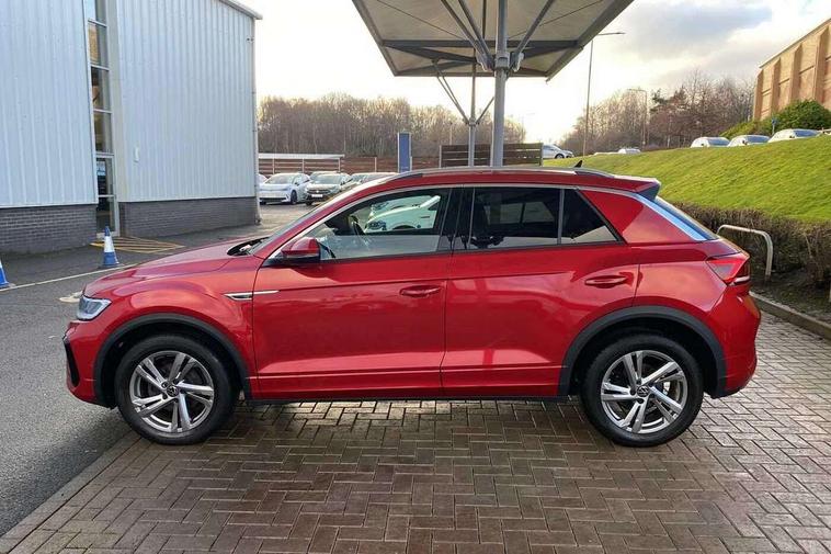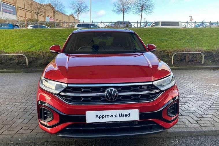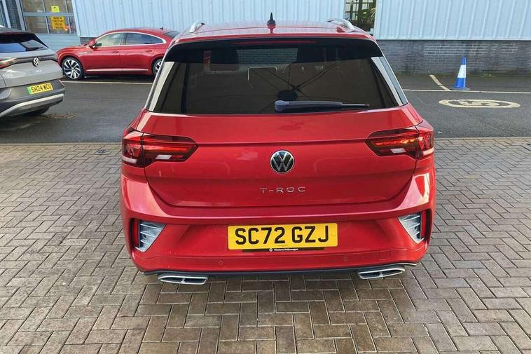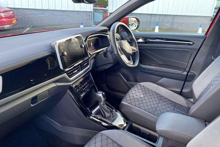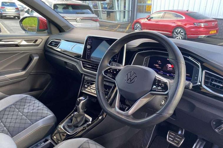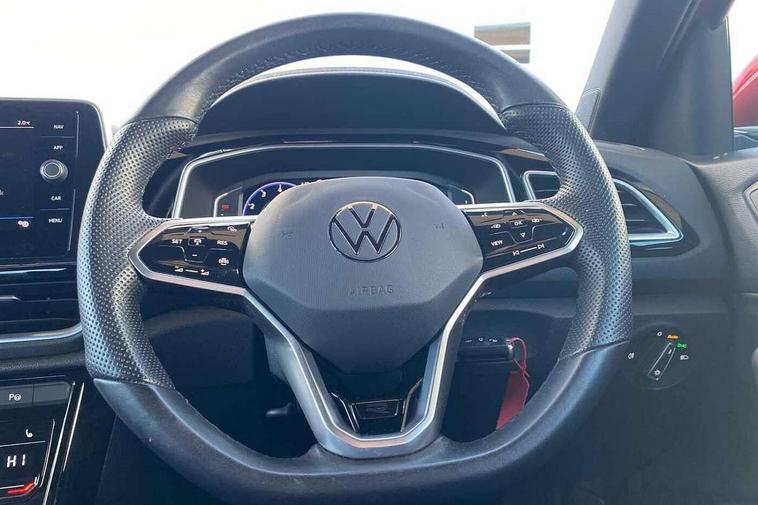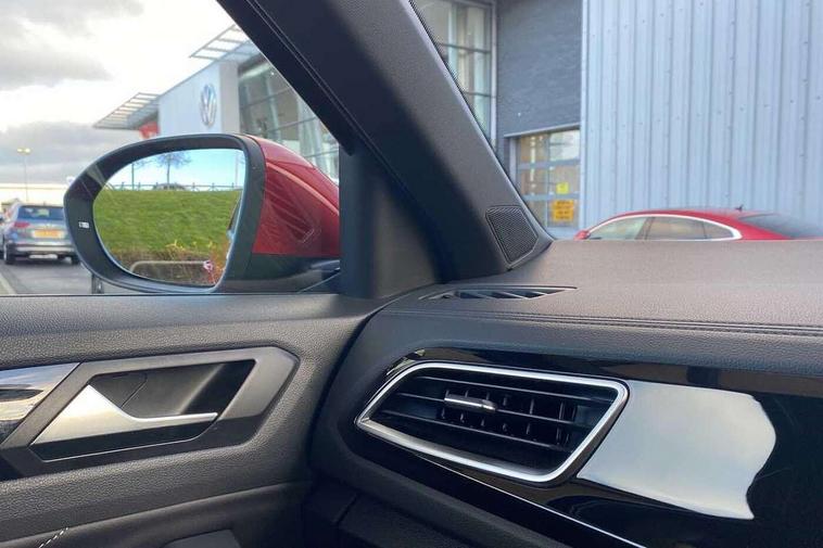 10.25" Digital cockpit pro, Bluetooth mobile phone interface, Driver alert system with fatigue detection, Driver tips and journey analysis, Emergency call service, Lane keeping system Lane Assist, Modified key software - reduce switch off time for key status change to Long no motion, Online services, Park assist including front and rear parking sensors, Service interval indicator, Tailgate/trunk lid release from outside, Think blue trainer driver tips and journey analysis, Warning sound and light for front seatbelts unfastened, Wireless app connect, Battery regeneration during braking, Start/stop function with battery regeneration, Diversity antenna for FM reception, Front and rear 6 speakers, Music playback - MP3, WMA and AAC files, Premium USB cable in choice of either Apple or Android smartphone compatibility, SD card slot, Simultaneous pairing of 2 compatible mobile devices, Title and cover art display, We Connect and We Connect Plus functionality, 3rd brake light, Auto dimming interior rear view mirror, Automatic hazard lights activation under emergency braking, Automatic headlight control with LED separate daytime running lights with coming/leaving home function, Extended roof spoiler, Exterior mirrors aspherical on driver side, convex on front passenger side, External USB type C socket and charging sockets, Front windscreen wiper with intermittent wipe and 4 position delay, Heated rear window, LED Plus headlamps, LED rear combination lamps, LED rear number plate lights, LED tail lamp rear comination lamps, Power windows with comfort operation and circuit breaker, R-Line design body coloured bumpers, Rain sensor, Rear exhaust tailpipe, Rear fog light on one side and reversing lights on both sides, Rear side wing doors, Rear wash/wipe with intermittent wipe setting, Remote electrically foldable door mirrors, puddle lights and reverse activated passenger's door mirror, 12V power socket in centre console, 3 rear head restraints, 3 seat bench in 2nd row, 4 load lashing points in luggage compartment, Air care climatronic air conditoning system with active combination filter and 2-zone temperature control, Black roof lining, Chrome plated radiator grille inserts, air vent surrounds and light switch surrounds, Door and side trim panel with leatherette insert, Drawer under drivers seat, Front + rear carpet mats, Front centre armrest, Front cupholders x 2, Front footwell illumination, Front reading light, Front scuff plates with R logo, Instrument lighting, white adjustable panel illumination, Interior ambient lighting and surround lighting, Interior light delay, Isofix child seat preparation, Leather gearshift handle, Load-through provision with cup holder when folded down ('Unsplit rear seat bench, split folding backrest, with centre armrest), Luggage compartment lighting, Single front passenger seat, Stainless steel pedals, Storage compartment in left and right luggage area, Storage compartment in rear doors, Storage compartments in driver and front passenger doors, Sunvisors with illuminated vanity mirrors, Variable boot floor, height adjustable and removable, Driver assistance pack without proactive passenger protection - T-Roc, 3 point height adj front seatbelts + pretensioners, 3 point seatbelts in outer rear with ECE label, ABS, Child locks on rear doors, Driver and front passenger airbag with front passenger airbag deactivation, Driver and front passenger safety-optimised head restraints, Drivers seatbelt reminder, Electronic parking brake, Electronic Stability Control (ESC) inc EDL (Electronic Differential Lock) and ASR (Traction Control), Front and rear passengers curtain airbag system including front side airbags, Front assist with city emergency braking and pedestrian monitoring, Front seat side impact airbags, Hill start assist, Predictive pedestrian protection, Rear disc brakes, Single tone horn, Tyre pressure loss indicator, Volkswagen roadside assistance, Alarm with interior protection, Anti-theft alarm system with interior monitoring, backup horn, and towing protection, Remote central locking with SAFELOCK, radio remote control with 2 remote control folding keys, Trims for alloy wheels,