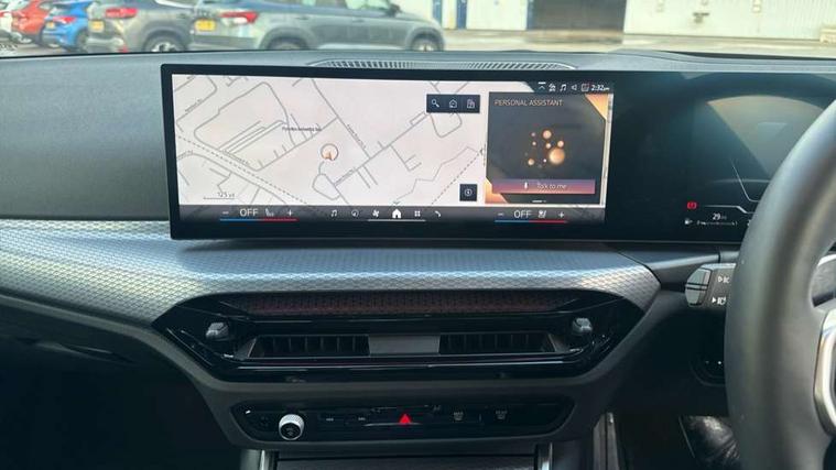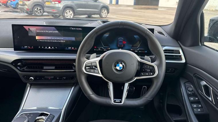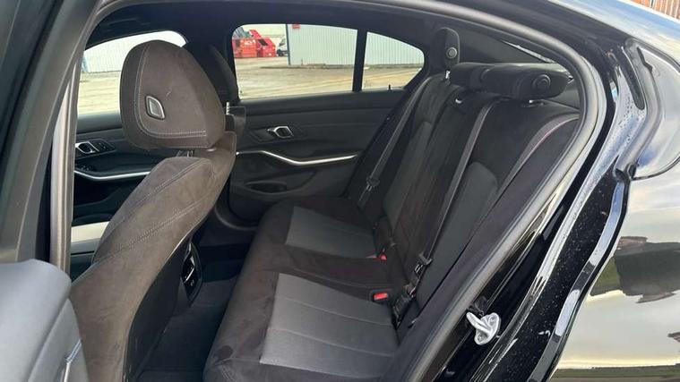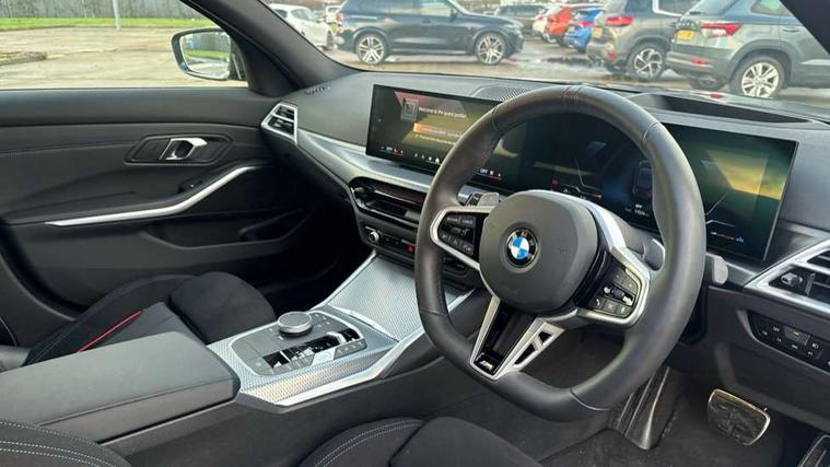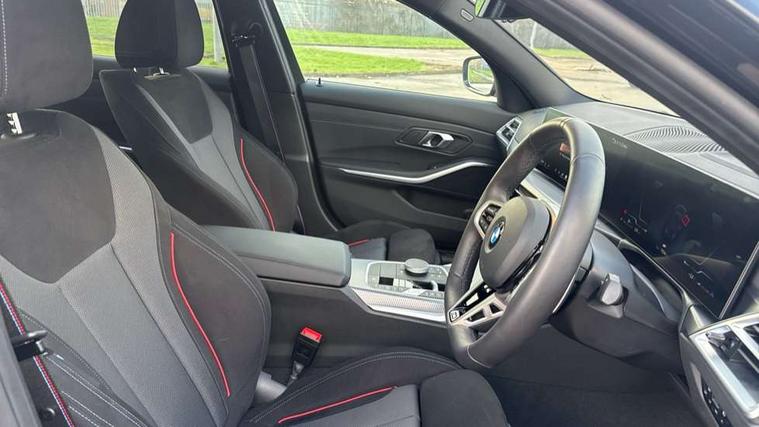 Active guard plus, Attentiveness assist, Automatic Start/stop button, Bluetooth Wi-Fi interface, BMW iDrive, BMW Teleservices, ConnectedDrive Services - last state call, Live cockpit plus with Navigation + 12.3" instrument display + 14.9" display, Intelligent voice assist, 2 USB, 4G LTE connect, Oil sensor for level and grade, Personal e-SIM, Shifting point display, Variable sport steering, Double joint spring strut front axle, Fuel tank breather system, Steptronic Sport automatic transmission with steering wheel mounted gearshift paddles launch control and xtreme drive lever control, DAB tuner, 3rd brake light, Auto dimming rear view mirror, Automatic headlight beam throw control with load dependent regulating reaction, dynamic compensation of braking dive and acceleration squat, Bi-LED Low and high beam headlights, BMW emblem, engine compartment lid and tailgate, Body colour roof fin, Door sill strips, Electric windows - front and rear, with open/close fingertip control, anti-trap facility and comfort closing, Fading support, Folding wing mirror with auto dimming, Follow me home headlight function, Front and rear bumper system with replaceable deformation elements, Front apron plastic in body colour, Fuel filler flap - right rear in body colour, Heat protection glazing on front windows and windscreen, Heated washer jets, High gloss chrome kidney frame with high gloss black kidney struts, LED daytime running lights, LED rear lights, LED turn indicator, Licence plate panel integrated into front bumper and tailgate, M high gloss shadow line exterior trim, Matt black B-pillar finsher, Matt black window recess cover, Model designation on right side of tailgate, One piece front bumper cover including towing eye cover in body colour, Rain sensor with automatic headlight activation, Rear boot, Rear side wing doors, Reversing lights, Side frame decorative moulding black matt, Trailer stabilisation logic, Visible exhaust tailpipe finisher, Welcome lights in interior and door handle area, 12V power socket in front storage compartment, 2 front cupholder in centre console with clamping elements and matt black inlay, 3 seat bench in 2nd row, 3 spoke M Sport multifunction flat bottom leather steering wheel, 3 zone automatic air conditioning, 40:20:40 split folding rear seat with loading system, Anthracite headlining, Armrest integrated in front and rear door trim + front centre console armrest, BMW ID, Cruise control operation in steering wheel, Driving experience mode switch, Folding rear centre armrest with 2 cupholders, Front and rear headrests, Front and rear velour floor mats, Front reading light, Heated front seats, Height adjustable mechanically and infinitely variable steering column, Illuminated armrest storage compartment, Illuminated glove compartment, Illuminated luggage compartment, Lashing eyelets in luggage compartment, Single front passenger seat, Sunvisors with illuminated vanity mirrors and ticket pocket, Toolkit located in luggage compartment, Connected pack professional - 3 Series Saloon/Touring, Interior and exterior mirror pack - 3 Series Touring/Saloon, M sport exterior styling pack - 3 Series Saloon/Touring, Parking assistant pack - 3 Series, 3x3 point rear seatbelts, BMW emergency call, Child locks on rear doors, Crash sensor activating of airbags, Unlocking doors, hazard warning lights, interior light, safety battery terminal, Drive-off assistant, Driver and front passenger with seat occupancy detection for driver's and passenger side, Driver and passenger side airbags, body protection at side and airbags deploy from seat backrests, Dry braking, Dynamic brake control, Dynamic stability control + (DSC+) - Anti-lock Braking System (ABS) with brake assist and cornering brake control + Automatic Stability Control (ASC), Dynamic Traction Control - DTC, Electric parking brake including automatic hold function and automatic release of the parking brake when driving off, Electronic differential lock control (EDLC), Front airbag deactivation, Front airbags for driver and front passenger, Head airbags in 1st and 2nd row, head protection at side, curtain airbags open from headliner above 1st and 2nd row, Plastic fuel tank, Side impact protection, Tyre pressure sensors, Ventilated front and rear disc brakes, Warning triangle and first aid kit, Alarm system, Centre lock switch, Closing system with central locking, Electronic vehicle immobiliser, Locking wheel bolts, Tyre repair kit,