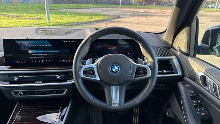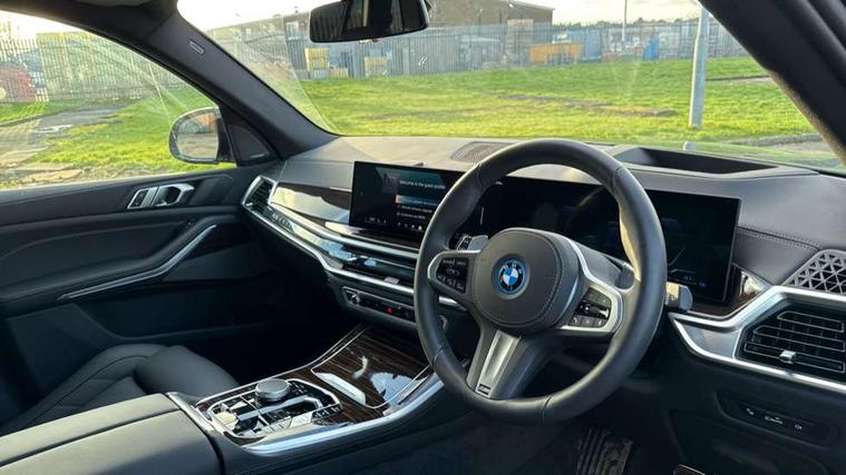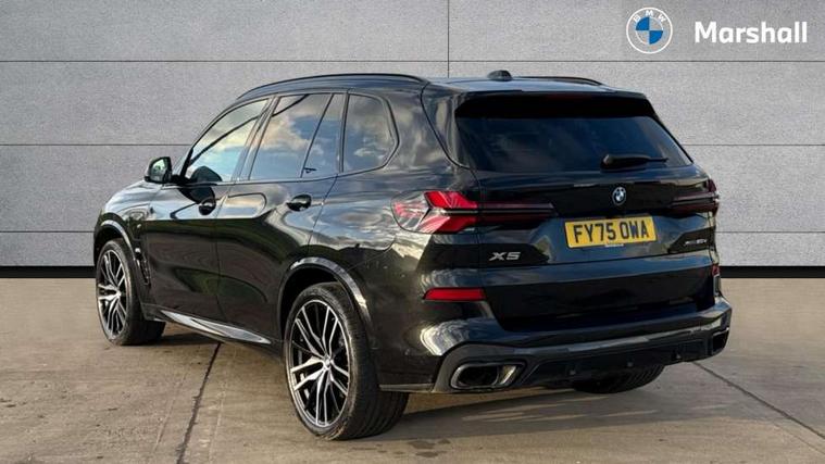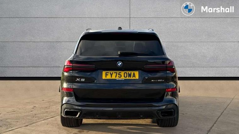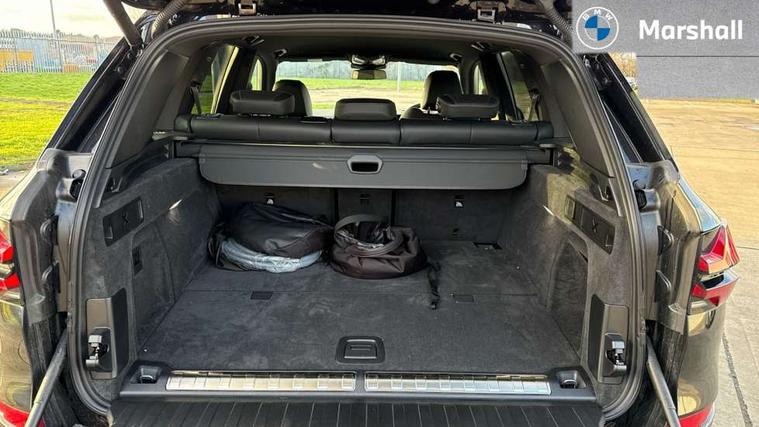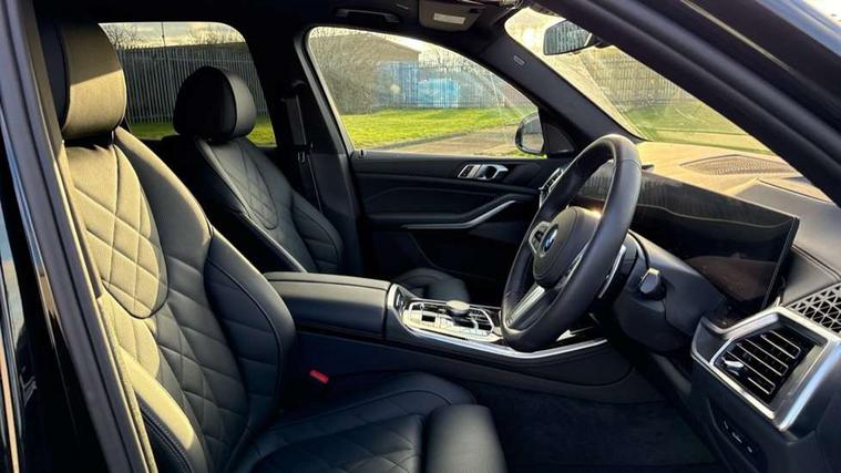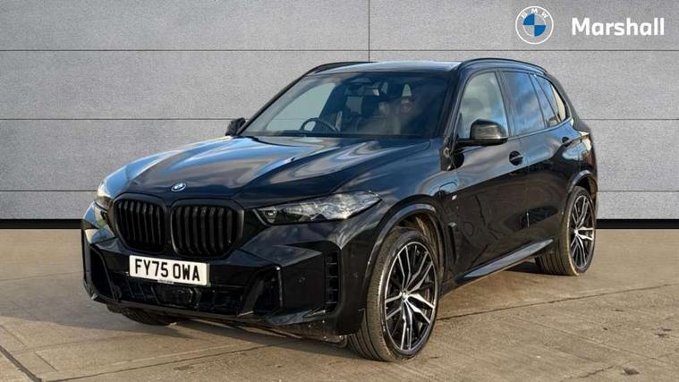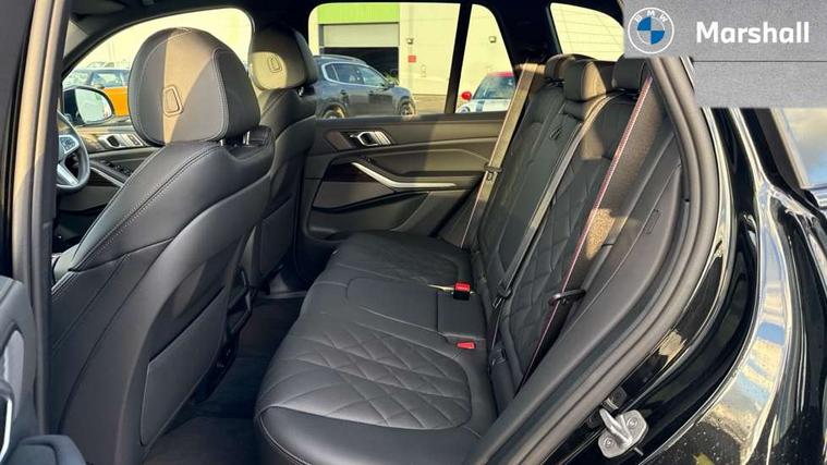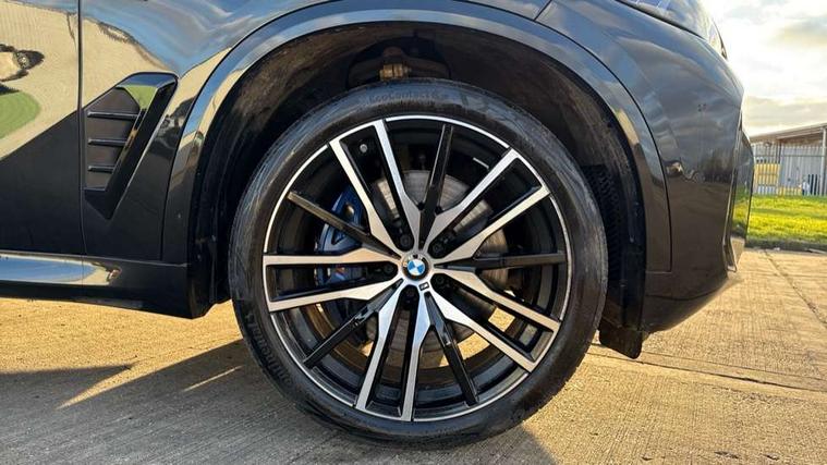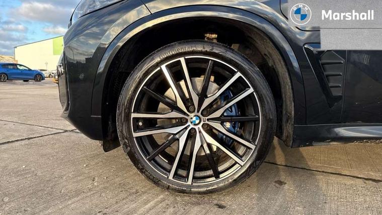 Attentiveness assist, Automatic tailgate operation, BMW ConnectedDrive online services, BMW live cockpit + with curved 12.3 instrument cluster/14.9 central display, nav/Tuner with diversity reception, RDS/4GLTE/remote software upgrade, BMW Teleservices, Condition based service, Cruise control with brake assist, eCall emergency call system, Enhanced bluetooth with wireless charging, Integrated owner's handbook, PAS, Speed limiter, Wi-Fi hotspot, AC Fast charging preparation (Maximum charging power 11kW), Adaptive 2-axle Front and rear air suspension, Drive performance control with ECO PRO comfort + sport mode, Eight speed steptronic sport automatic transmission and gearshift paddles on the steering wheel, Adaptive LED Headlights, Front and rear electric windows, High beam assistant, High gloss black shadow line roof rails, LED daytime running lights, Rain sensor, Rear side wing doors, Third brake light in rear spoiler, Variable intermittent rear wash/wipe, 12V - Power sockets with 2x centre console and 1x luggage compartment, 3 seat bench in 2nd row, Foldable rear centre armrest with 2 cupholders and storage compartment, Front and rear side armrest integrated into door trim, Headrests for all seats, Luggage compartment separating net, Lumbar support with height and depth adjustment in backrest, Single front passenger seat, Three spoke sport M leather steering wheel, Velour floormats, Ambient light interior pack - X5, Driving assistant pack with radar based driver assistance system - X5, Expanded exterior mirror pack - X5/X5 M, M aerodynamics pack - X5, Parking assistant pack - X5, 3 rear seatbelts, Acoustic protection for pedestrians, Active protection, Airbags - driver/front passenger, rear and side, first and second row seats head airbags, front passenger seat airbag deactivation + knee airbag, Anti-lock braking system (ABS), Automatic Stability Control (ASC), Brake energy regeneration, Cornering brake control (CBC), Crash sensor activating central locking release, hazard warning lights, fuel cut off, interior lighting + activation of safety battery terminal clamp, DSC - Dynamic Stability Control, Dynamic Traction Control - DTC, Electromechanical parking brake with automatic drive away release and auto hold function, Electronic brake force distribution, Hill start assistant, M Sport blue painted brake calipers with 'M' designation, Mechanical child proof lock on rear doors, Tyre pressure monitoring system, Tyre pressure sensors, Ventilated front and rear disc brakes, Warning triangle and first aid kit, Alarm system, Closing system with central locking, Comfort access system, Locking wheel bolts,