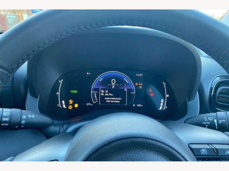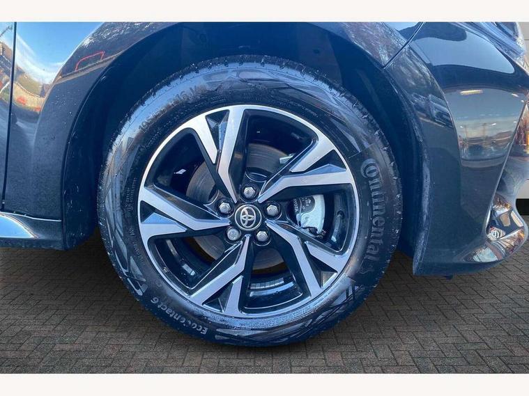 7" Digital Combimeter, Adaptive cruise control, Adjustable speed limit with speed warning, Bluetooth connectivity, Colour binocular inspired displays with digital speedometer, E-call, Electric power steering, Hybrid energy display, Lane trace assist, Multi information display switches on steering wheel, Pre-collision system (PCS), Reversing camera, Smartphone integration with Apple CarPlay and Android auto, Tailgate, Voice recognition, Vehicle Stability Control (VSC), 4 speakers, 9" Multimedia touch display, Toyota Touch 3 system with DAB radio, USB connection, Acoustic windscreen glass, Auto high beam assist, Auto windscreen wipers, Automatic headlights, Body coloured door mirrors, Electric adjustable heated door mirrors, Follow me home headlights, Front auto power windows with anti jam protection, LED daytime running lights, LED front fog lights, LED front light guide, LED Headlights, LED High mounted stop lamp, LED Indicators, LED rear light guide, Manual headlight levelling, Painted chequered front grille, Rain sensor, Rear auto power windows with anti jam protection, Rear privacy glass, Rear roof spoiler, Rear side wing doors, Rear wiper, Shark fin antenna, Turning signal integrated indicators in door mirrors, Variable front intermittent wipers, 3 adjustable rear headrests, 3 seat bench in 2nd row, 3 spoke leather steering wheel, 60/40 split folding rear seat, Active headrests, Adjustable boot height, Auto air conditioning, Coat hooks in rear grab handles, Cup holders (2 front & door), Data Communication Module (DCM) connected services, Fabric upholstery, Front armrest, Glovebox, Grey roof lining, Height adjustable driver's seat, Isofix seat fixing, Leather gearshift, Pollen filter, Shopping bag hooks, Single front passenger seat, Tilt/telescopic steering column, 3 point seatbelts on all rear seats, ABS+EBD+Brake assist, Electronic parking brake, Emergency brake light system (EBS), Front passenger airbag on/off switch, Front seatbelt reminder, Hill start assist control (HAC), Rear child proof door locks, Rear seat belt reminder, Supplemental Restraint System (SRS) 8 airbags: Driver & passenger's airbags, dual side curtain airbags, side impact airbags, front centre airbag, Toyota Safety Sense 3 with over the air updates, Tyre pressure warning system, 2x Master key, Alarm/immobiliser, Remote powered central double locking doors, Soft touch instrument panel, Space saver spare wheel,