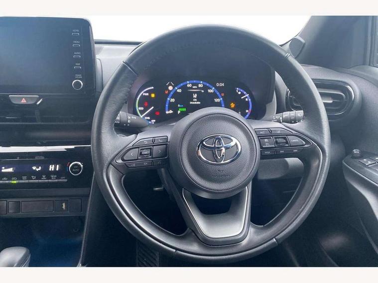 7" Multi information display screen, 8" Toyota touch 2 multimedia system with Smartphone integration with Apple CarPlay and Android auto, Adjustable speed limiter, Bluetooth connectivity, Driver attention alert system, eCall emergency system, Electric power steering, Full range intelligent adaptive cruise control, Hybrid system indicator, Key reminder warning, Lane trace assist, Multimedia, audio, telephone and voice recognition switches on steering wheel, My T Connected services, Pre-collision system enhanced with emergency steering assist, Reversing camera, Road sign assist - RSA, Steering assisted vehicle stability control, 6 speakers, DAB Digital radio, USB connection, 3rd brake light, Acoustic windscreen glass, Aluminium roof rails, Anti-jam protection on power windows, Auto high beam [AHB] with on/off switch, Automatic headlights, Black lower front grille, Black Shark-fin antenna, Black upper front grille, Black wheel arch mouldings, Body colour door handles, Body colour front bumper, Body colour rear bumper, Electric adjustable heated door mirrors, Follow me home headlights, Front and rear electric windows with auto up/down function, Front intermittent wipers, Headlight cut off reminder, Indicators integrated on door mirrors, Intermittent rear wiper, LED daytime running lights guide, LED front fog lights, LED front light guide, LED Indicators, LED projector headlights, LED rear light guide, Manual headlight levelling, Manually retractable door mirrors, Noise reduction layer on windscreen, Privacy glass, Rain sensor, Rear LED lights with sequential indicators, Rear side wing doors, Rear spoiler, Rear window defogger, 12v power outlet - front, 2x Rear coat hooks, 3 seat bench in 2nd row, 3 spoke leather steering wheel, 40:20:40 split folding rear bench seat, Adjustable speed limiter switch on steering wheel, Auto air conditioning, Black roof lining, Boot light, Central armrest, Centre console in light blue ambent lighting, Driver and front passenger personal lights, Fabric door trim, Fabric upholstery, Footwell in light blue ambient lighting, Front console box, Front cup holders, Front head restraints, Glovebox, Height adjustable driver's seat, Height adjustable front passenger seat, Hooks for luggage holding belts, ISOFIX child restraint system, Lane departure alert switch on steering control, Leather gearshift, Light blue ambient lighting on front doors, Manual telescopic and tilting steering wheel, Mirror on driver and passenger sun visor, Pollen air filter, Rear cup holders, Rear head restraints, Single front passenger seat, Soft tonneau cover, 3x3 point rear seat belts, ABS+EBD+Brake assist, Driver and passenger central airbags, Driver and passenger front airbags, Driver and passenger side airbags, Electronic parking brake, Emergency brake light system (EBS), Front seat belt reminder, Hill start assist control (HAC), Passenger airbag on/off switch, Pre-collision system with pedestrian and cyclist detection, Rear door child safety locks, Rear passenger side airbags, Rear seat belt reminder, Traction control, Tyre pressure warning system, Immobiliser, Intrusion alarm, Keyless smart entry with push button start, Power door locks, Power passenger window lock, Remote door lock, Tyre repair kit,