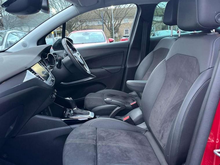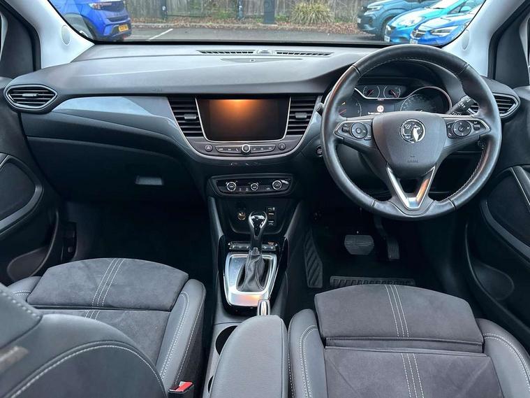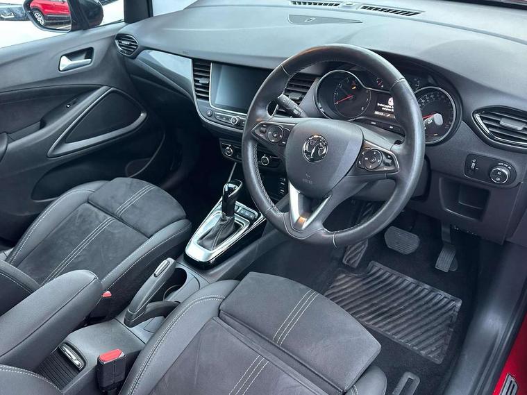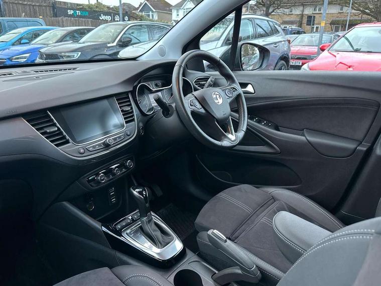 3.5" colour instrument display, Advanced Park Assist, Audible lights on warning, Cruise control + speed limiter, Digital clock with automatic RDS time adjustment, Driver drowsiness alert system, E-call, Forward collision warning, Front camera system, Instrumentation - Speedometer, rev counter, low fuel gauge warning light + water temperature gauge warning light, shift up/down indicate light, Lane departure warning with lane keep assist, Multi function trip computer, Multimedia sat nav pro with 8" colour touchscreen, AM/FM, Bluetooth streaming, Bluetooth mobile phone portal, apple CarPlay/Android Auto + 6 speakers, Outside temperature display with ice warning, Panoramic rear view camera, Refridgerant low indicator, Service interval indicator, Side blind spot alert, Smartphone projection, Speed sensitive power steering, Speed sign recognition, Start/stop system, Vauxhall connect, Vehicle microphone, Front wheel drive, 2 x USB connections, DAB Digital radio, Steering wheel mounted audio/phone/cruise controls, 2 speed wipers/wash wipe/intermittent wipe, Automatic anti dazzle rear view mirror, Automatic headlamp levelling system, Automatic high beam control with cornering light, Automatic lighting control, Black door mirror caps, Black griffin logo, vizor frame, rear lettering and skid plates, Body colour door handles, Body colour front and rear bumpers, Chrome effect upper window moulding, Collapsible windscreen wipers, Dark tinted rear side windows + tailgate window, Electrically adjustable, heated and power folding door mirrors, Electrically operated front and rear windows with safety auto reverse and one touch up/down facility, Flexible roof mounted aerial, Hazard warning lights, Headlamps for left side traffic, Heated rear window, Integrated tailgate spoiler, Intermittent rear wash/wipe, LED 3rd brake light, LED daytime running lights, LED front fog lights, LED Headlights, LED side repeat indicators, LED tail lights, Rain sensitive windscreen wipers, Rear fog lights, Rear side wing doors, Reversing light, Side window demist vents, Silver roof rails, Solar heat absorbing windscreen and windows, Upper and lower bumper design, Welcome lighting, Windscreen demist vents, 12v power outlet - front, 12V power outlets on rear seat, 3 seat bench in 2nd row, 3 spoke leather covered steering wheel, Air recirculation facility, Alcantara suede/vinyl upholstery, Ambient lighting, Anti submarining ramps in front seats, Cabin particulate filter - removes dust, airborne particles and pollen, Centre console storage box with sliding lid, Centre console with two cup holders and open storage box, Chrome effect digital instrument cluster surround, Driver's vanity mirror with flip up cover, Dual zone electronic climate control, Ergonomic active driver’s and front passenger’s seat with AGR approved 8 way adjustable, seat cushion extension, 4 way electrical lumbar adjustment, Fade up/fade down on interior lighting, Four adjustable facia vents, Front and rear central courtesy light, Front centre armrest for drivers seat, Front door pockets with 1.5 litre bottle holder, Front map reading lights, Fully carpeted luggage area, Glovebox with lid, Height adjustable front/rear head restraints, Illuminated load area, Isofix system on outer rear seats, Jet black fabric side bolsters, Luggage compartment cover, Multi-speed fan with Illuminated control, Passenger assist handles, Passenger's illuminated vanity mirror with flip up cover, Reach + rake adjustable steering column, Rear dome lamp, Rear door pockets with 0.5 litre bottle holder, Rear floor ventilation ducts, Satin chrome effect bezel on steering wheel, Single front passenger seat, Storage pockets on front seat backs, Versatility pack - Crossland, Winter pack - Crossland, 3x3 point rear seatbelts, ABS, Automatic emergency braking with pedestrian detection, Child locks on rear doors, CSC - Cornering stability control, Deactivate switch for side impact airbags, Deformation zones front and rear, Driver and front passenger airbags, Dual seatbelt pretensioners on front seats, EBD - Electronic brakeforce distribution, Energy absorbing steering column, Engine drag torque control, ESP + traction control, Front side impact airbag, Full size curtain airbags, Hill start assist, Hydraulic Brake Assist (HBA), Hydraulic brake boost, Inertia reel lap and diagonal seatbelts for all seats, Passenger airbag deactivate switch, Rear seat belt pretensioners, Reinforced passenger safety cell, Seatbelt load limiter, Side impact protection beams, Smart seatbelt reminder for front and rear seats, Tyre pressure monitoring system, 2 remote folding keys, Electronically protected audio equipment, Engine immobiliser, Keyless entry and start, Locking wheel bolts, Remote control central locking, Remote control security alarm system, Visible vehicle identification number, Black facia with dark grey trim inserts, Cluster black with chrome rings, Silver trim inserts on front doors, 17" Five twin spoke diamond cut bi colour alloy wheels,