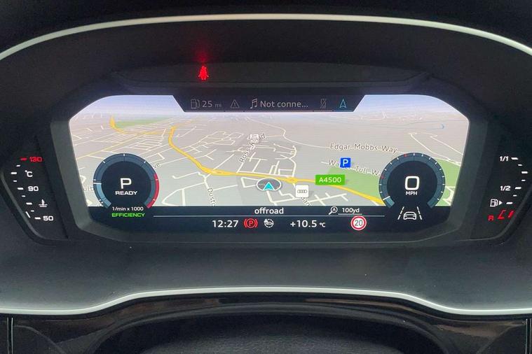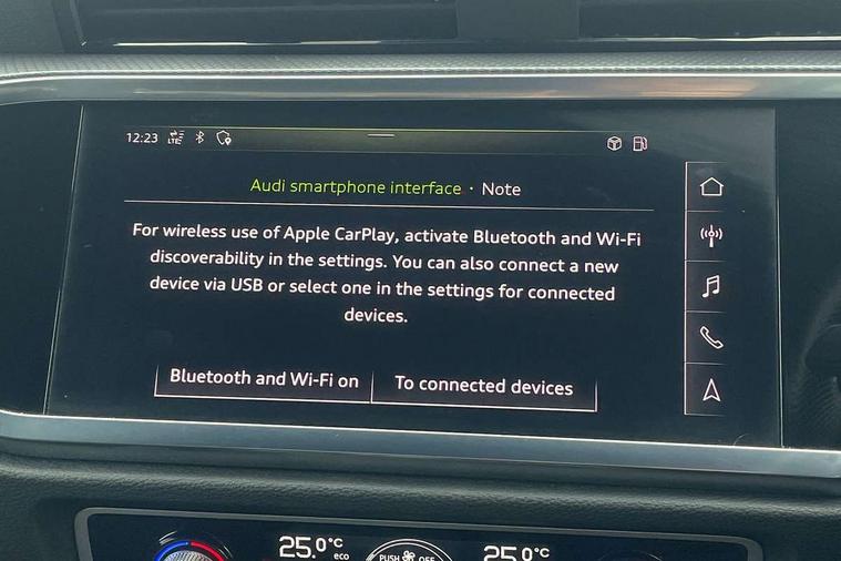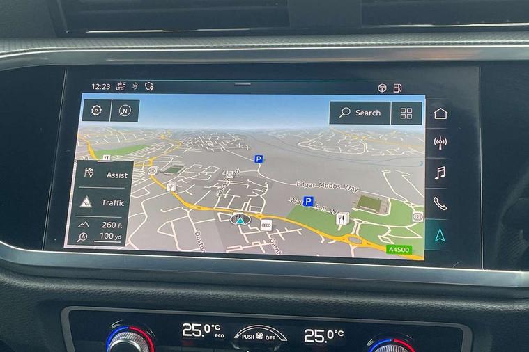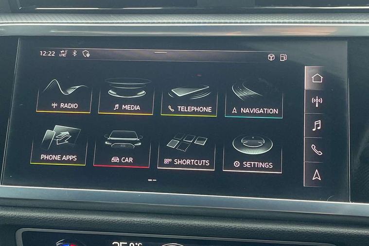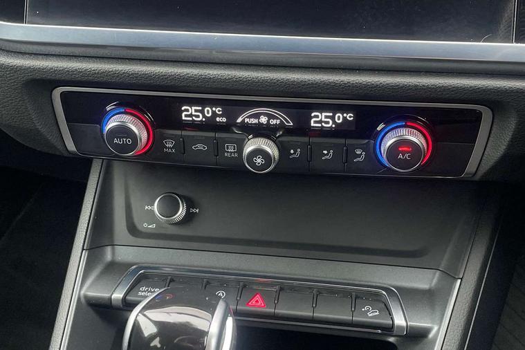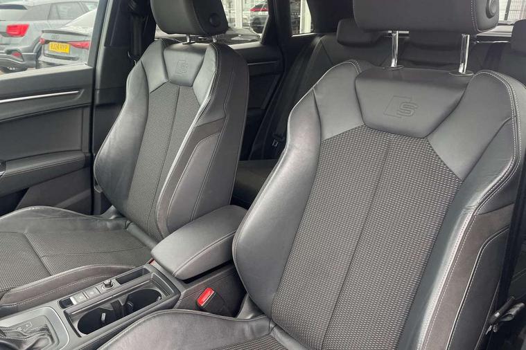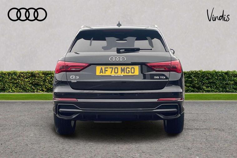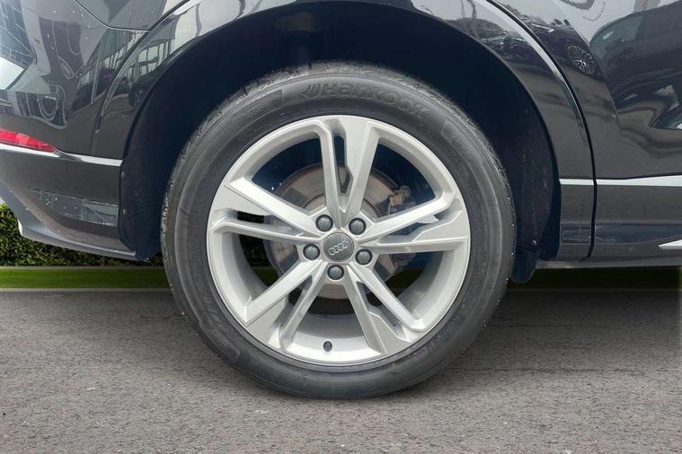 Audi connect safety and service (e-call), Audi drive select, Audi lane departure warning, Audi side assist, Audi smartphone interface includes wireless Apple carplay/Android Auto, Audi Virtual Cockpit - 10.25" display, Bluetooth interface, Camera based traffic sign recognition, MMI Navigation Plus with high resolution 10.1 inch touchscreen colour display, Power operated tailgate, Progressive steering, Service interval indicator, Start stop system with recuperation, Voice control system with natural language interaction, Diesel particulate filter, Sports suspension, 1 x USB type C and 1 USB type A charging points, 6 passive loudspeakers, DAB digital radio module, Acoustic windscreen, Aluminium roof rails, Aluminium window trim, Auto dimming frameless rear view mirror, Body coloured bumpers, Electrically folding, adjustable and heated door mirrors with integrated LED side indicators and kerb view function for passenger side, Front and rear electric windows, Front fog lights, Front side air inlets in matt platinum grey, Front spoiler blade in matt platinum grey, Grille vertical bars in aluminium silver/Matt, High gloss black finish B and C pillars, LED headlights with LED daytime running lights and dynamic rear indicator, LED rear lights, Privacy glass dark tinted rear and rear-side windows (from B-pillar backwards), Rain and light sensors, Rear diffuser strip in matt titanium black, S line badges on front wings, S Line front and rear bumpers, Side skirt insert in matt Platinium grey, Silver chrome grille surround, Titanium black radiator grille, 12V socket in rear centre console, 40:20:40 folding with manual adjustment for 60:40 forwards/backwards position and backrest angle, Adjustable rear seat bench/backrest with centre armrest and cupholder, Black cloth headlining, Dual zone electronic climate control, Front and rear black floor mats with contrast stitching in rock grey, Front and rear headrests, Front and rear roof module including reading lights, Front centre armrest, Glove compartment lighting, Height and reach adjustable steering wheel, Illuminated door sill trims with S logo, ISOFIX child seat mounting for front passenger with airbag deactivation and outer rear seat including top tether attachment point for outer rear seats, Luggage compartment light, Manual front seats with height adjustment, Perforated leather gearknob, Stainless steel luggage compartment sill finisher, Stainless steel pedals, Non smoking pack - Q3, 3x3 point rear seatbelts, 6 airbags - Driver, front passenger, curtain and side windows, Audi pre-sense front with pedestrain and cyclist recognition, Electrically operated child locks on rear doors, Electromechanical parking brake, Electronic stabilisation control including ABS, ASR and EDL, Hill descent control, Hill hold assist, Pre sense basic, Seatbelt monitoring, Tyre pressure warning, Warning triangle and first aid kit, Anti theft alarm, Anti theft wheel bolts, Remote central locking, Dark matt brushed aluminium inlay, Detail dashboard around MMI touch colour display in glass look, black with surround in aluminium look, Leatherette door armrest,